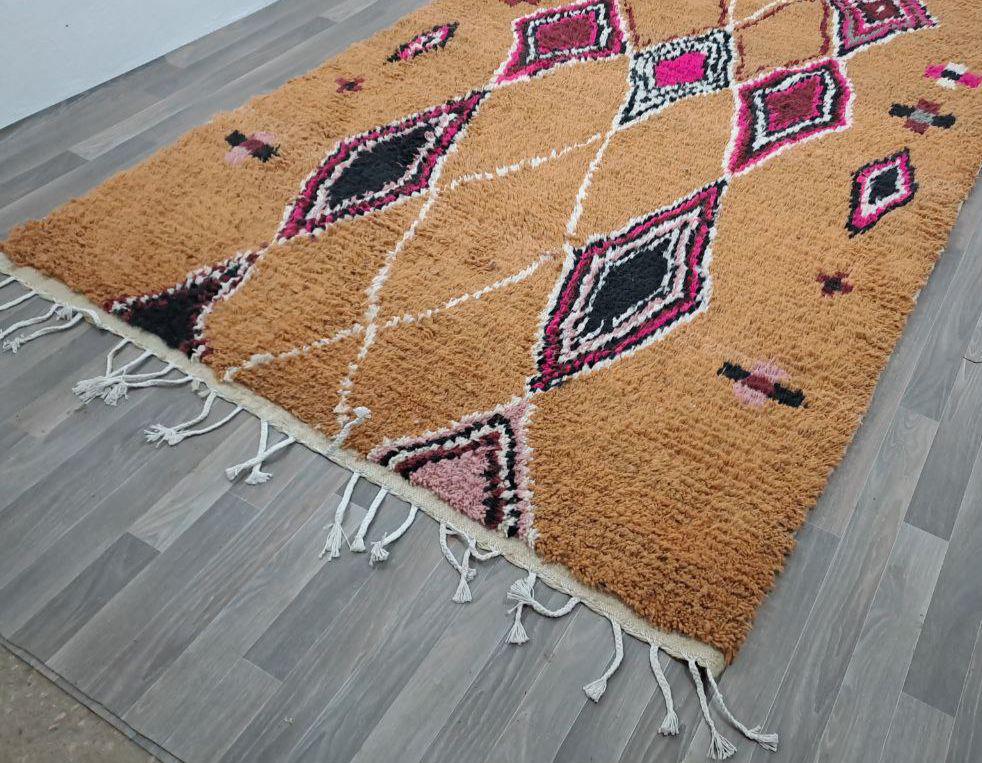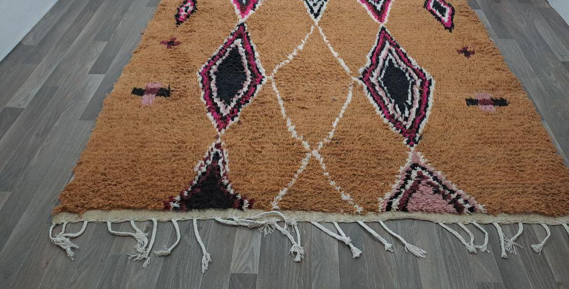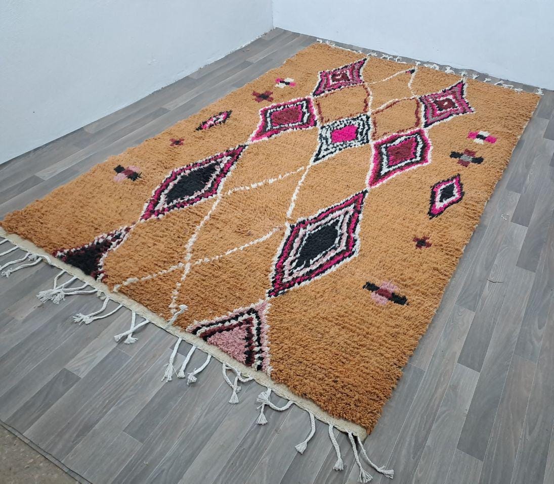 Handmade Orange Moroccan Rug: Berber Wool Azilal Carpet