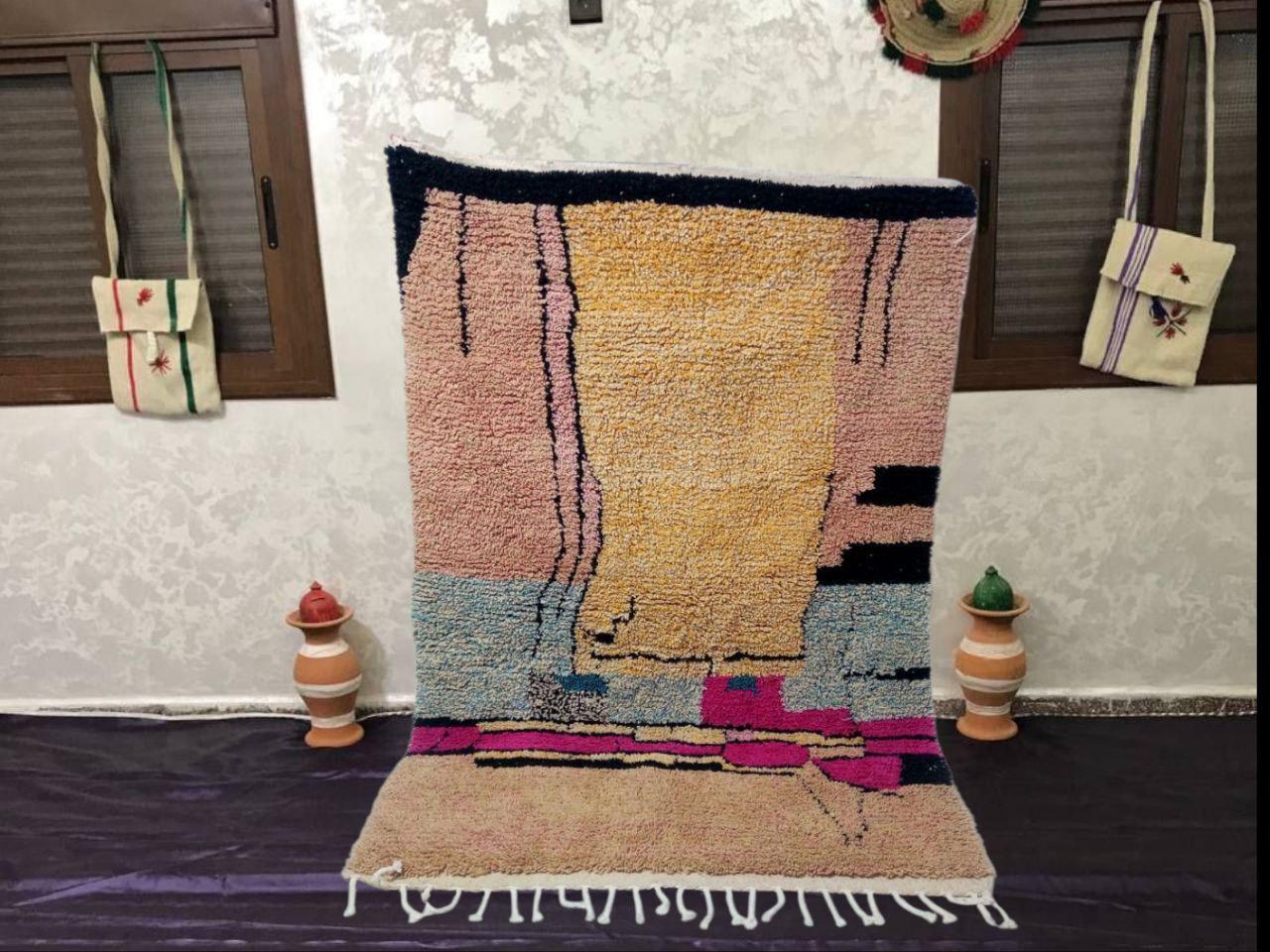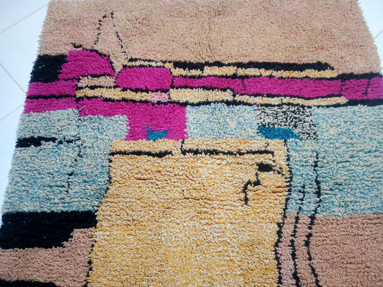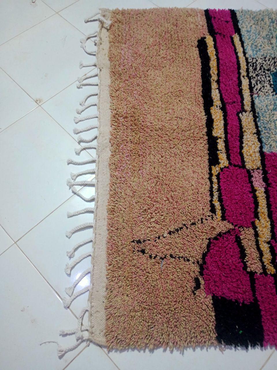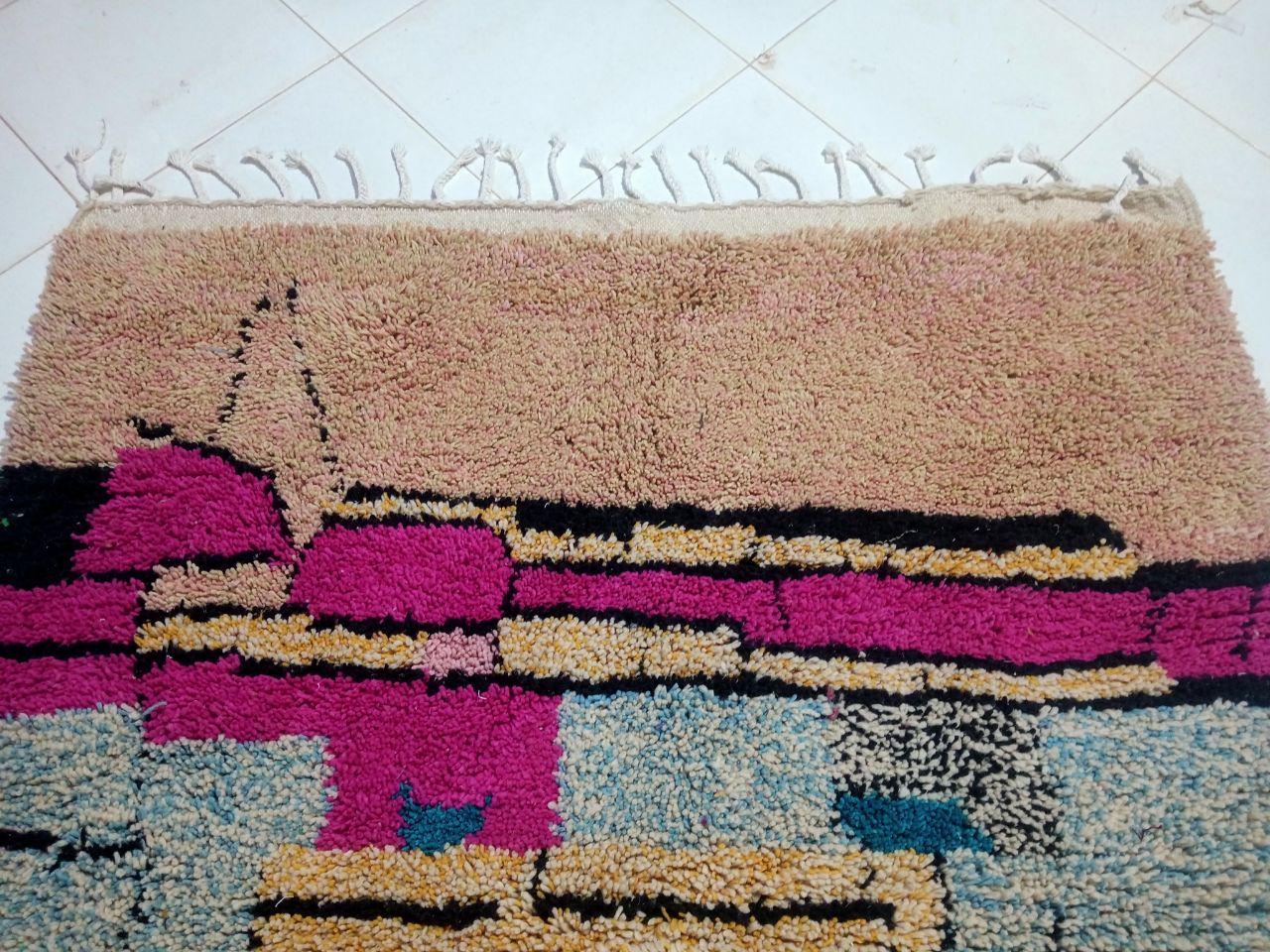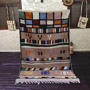 A Moroccan Berber Colorful rug is a traditional handwoven floor covering that originates from the indigenous Berber people of Morocco. These rugs are known for their intricate patterns and bold, geometric designs, which are created using a variety of natural dyes and High-quality Wool. Moroccan boujad rugs are versatile and can be used to add a touch of bohemian chic to any room, from a living room or bedroom to a home office or entryway. They are durable and easy to maintain, making them a practical choice for high-traffic areas. Whether you're looking to add a pop of color to your space or create a warm and welcoming atmosphere, a Moroccan Berber rug is a great choice.