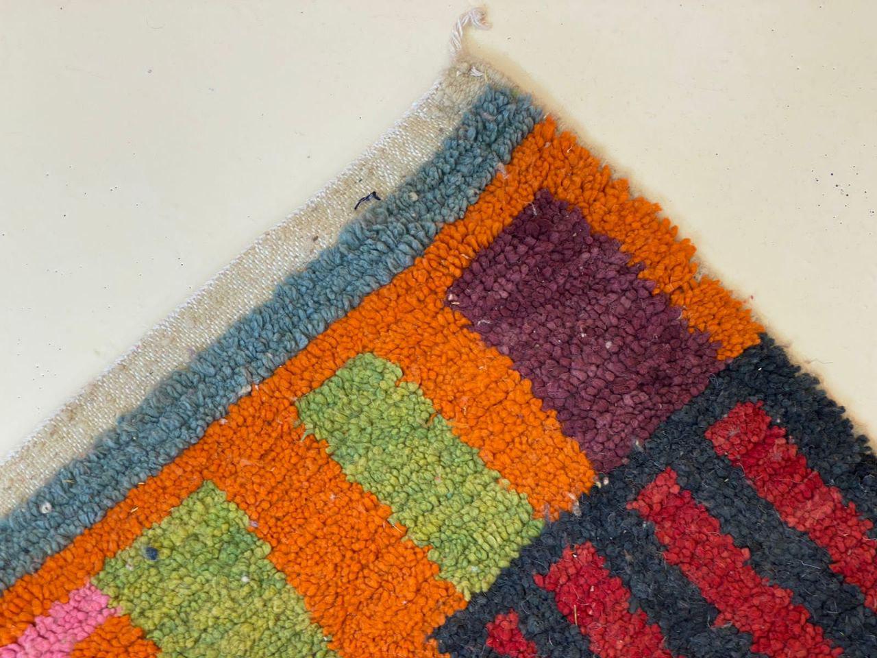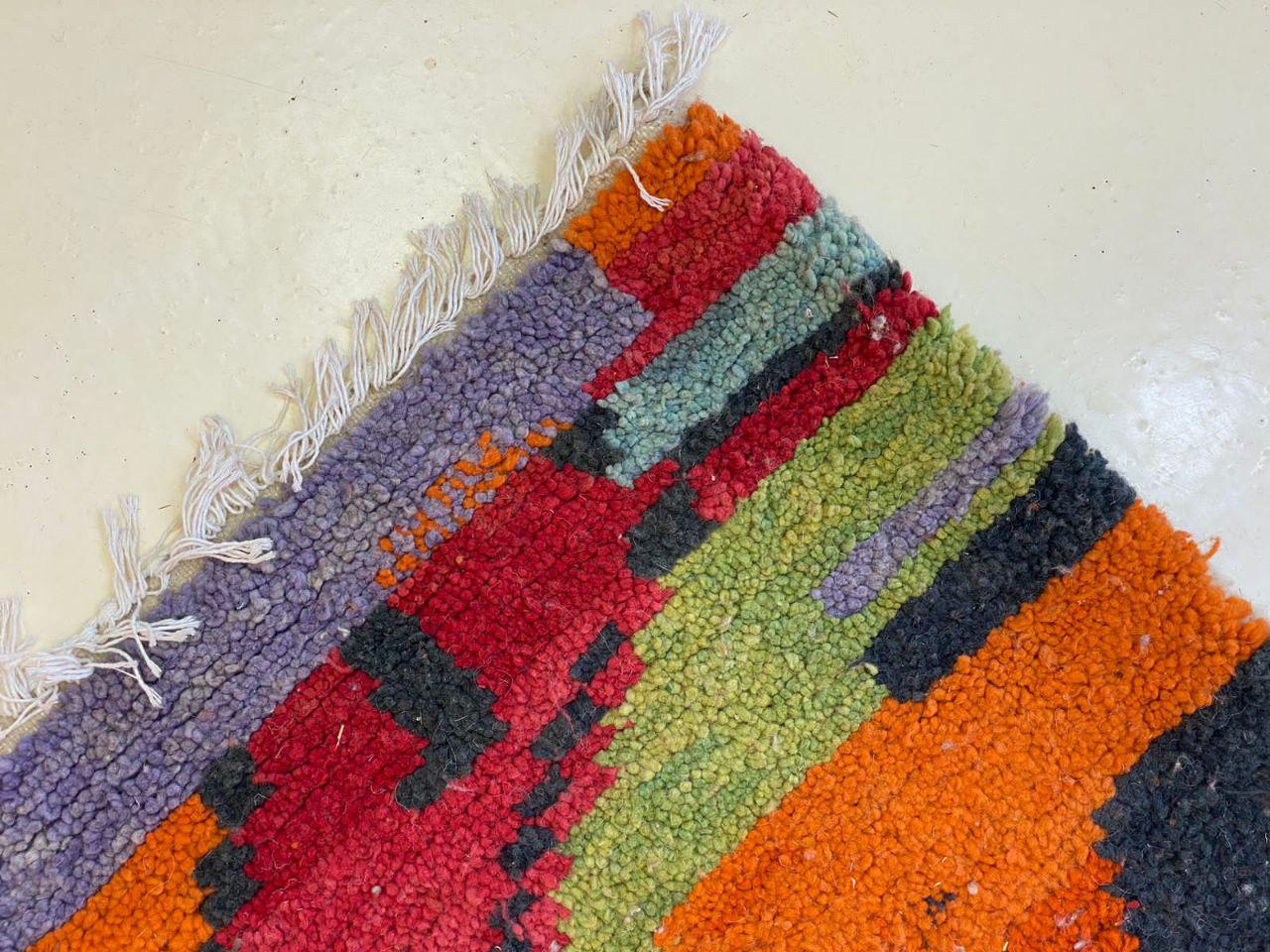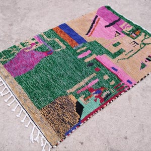 A Moroccan Berber Colorful rug is a traditional handwoven floor covering that originates from the indigenous Berber people of Morocco. These rugs are known for their intricate patterns and bold, geometric designs, which are created using a variety of natural dyes and High-quality Wool. Moroccan boujad rugs are versatile and can be used to add a touch of bohemian chic to any room, from a living room or bedroom to a home office or entryway. They are durable and easy to maintain, making them a practical choice for high-traffic areas. Whether you're looking to add a pop of color to your space or create a warm and welcoming atmosphere, a Moroccan Berber rug is a great choice. 📌 Shipping: insured, trackable, Fast, and FREE Worldwide by FedEx or DHL (2 to 5 days delivery). ❖ Cleaning: all rugs are carefully cleaned before shipping. ❖ Colors: Please take a look at the pictures. ❖ Texture: Moroccan / soft / Shag. ❖ Technique: Hand-Knotted ❖ Construction: Handmade ❖ Location: Indoor Use Only ❖ Material: Your order is made entirely by hand from natural wool, which means there will be natural (and beautiful) variations in pattern and color. Wool shrinks. ❖ Pattern: Because the product is handcrafted, the pattern and Colors may vary slightly from one piece to another. ❖ Size: While we try our best to ensure consistent sizing, it is possible for final sizes to vary by a few inches more or less. ❖ Tassels: One side is the Traditional way of making the rugs. 📌Ships tightly rolled in a protective bag. Any slight creasing will disappear within a few days. Shedding loose fibers is normal with new rugs. Shedding will diminish with regular vacuuming. If you have any questions or queries, please feel free to contact me via messages.