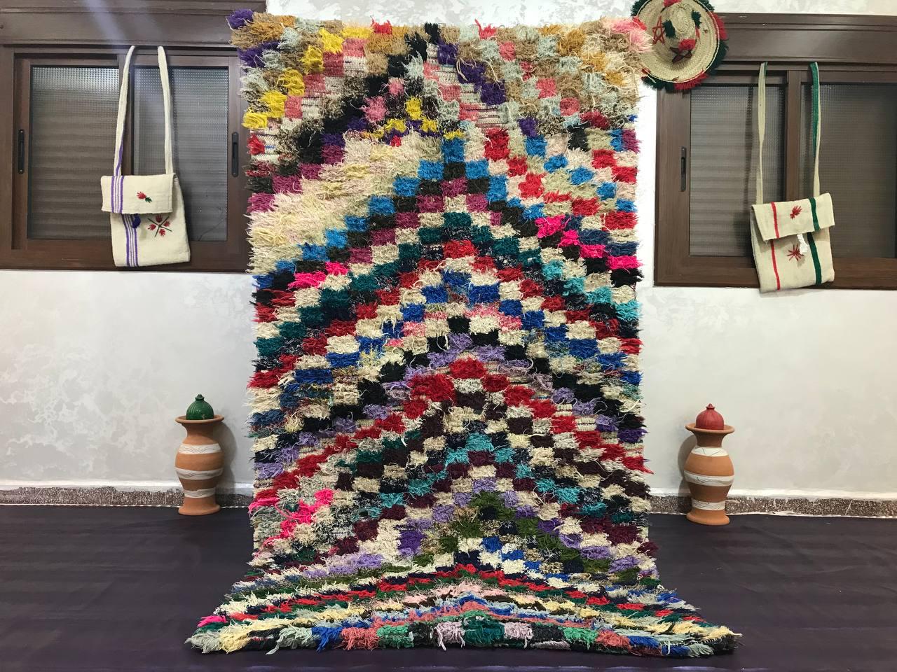 carpet checkred colour full rugs vintage, moroccan carpet old vintage authentic checkred, old vintage moroccan rug multicolored 7,6x4ft