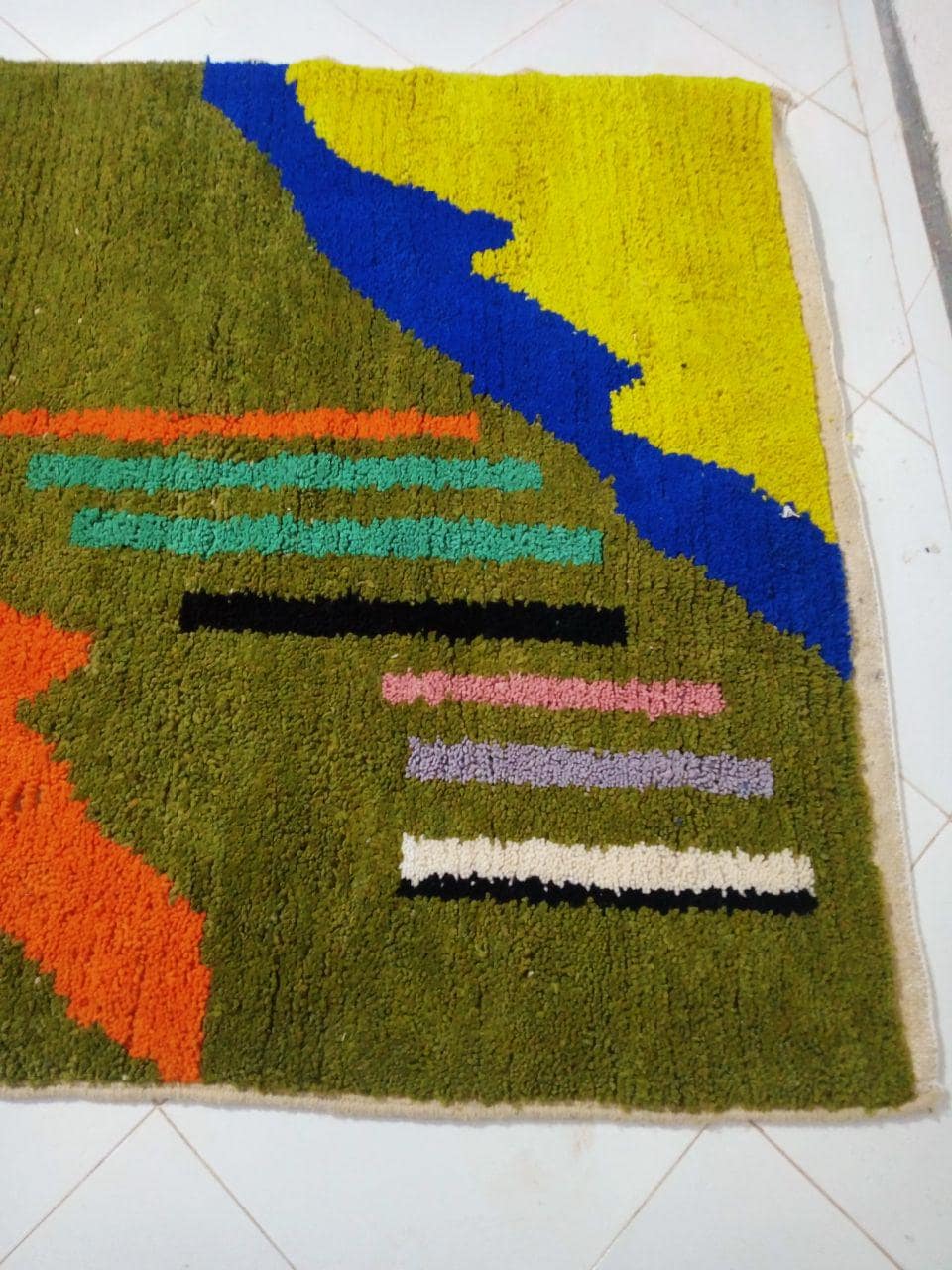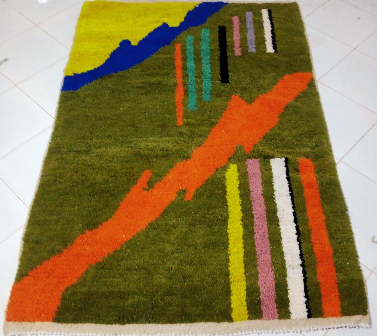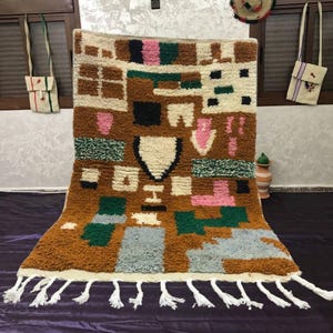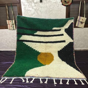 A Moroccan Berber Colorful rug is a traditional handwoven floor covering that originates from the indigenous Berber people of Morocco. These rugs are known for their intricate patterns and bold, geometric designs, which are created using a variety of natural dyes and High-quality Wool. Moroccan boujad rugs are versatile and can be used to add a touch of bohemian chic to any room, from a living room or bedroom to a home office or entryway. They are durable and easy to maintain, making them a practical choice for high-traffic areas. Whether you're looking to add a pop of color to your space or create a warm and welcoming atmosphere, a Moroccan Berber rug is a great choice. 📌 Shipping: insured, trackable, Fast, and FREE Worldwide by FedEx or DHL (2 to 5 days delivery). ❖ Cleaning: all rugs are carefully cleaned before shipping. ❖ Colors: Please take a look at the pictures. ❖ Texture: Moroccan / soft / Shag. ❖ Technique: Hand-Knotted ❖ Construction: Handmade ❖ Location: Indoor Use Only ❖ Material: Your order is made entirely by hand from natural wool, which means there will be natural (and beautiful) variations in pattern and color. Wool shrinks. ❖ Pattern: Because the product is handcrafted, the pattern and Colors may vary slightly from one piece to another. ❖ Size: While we try our best to ensure consistent sizing, it is possible for final sizes to vary by a few inches more or less. ❖ Tassels: One side is the Traditional way of making the rugs. 📌Ships tightly rolled in a protective bag. Any slight creasing will disappear within a few days. Shedding loose fibers is normal with new rugs. Shedding will diminish with regular vacuuming. If you have any questions or queries, please feel free to contact me via messages.