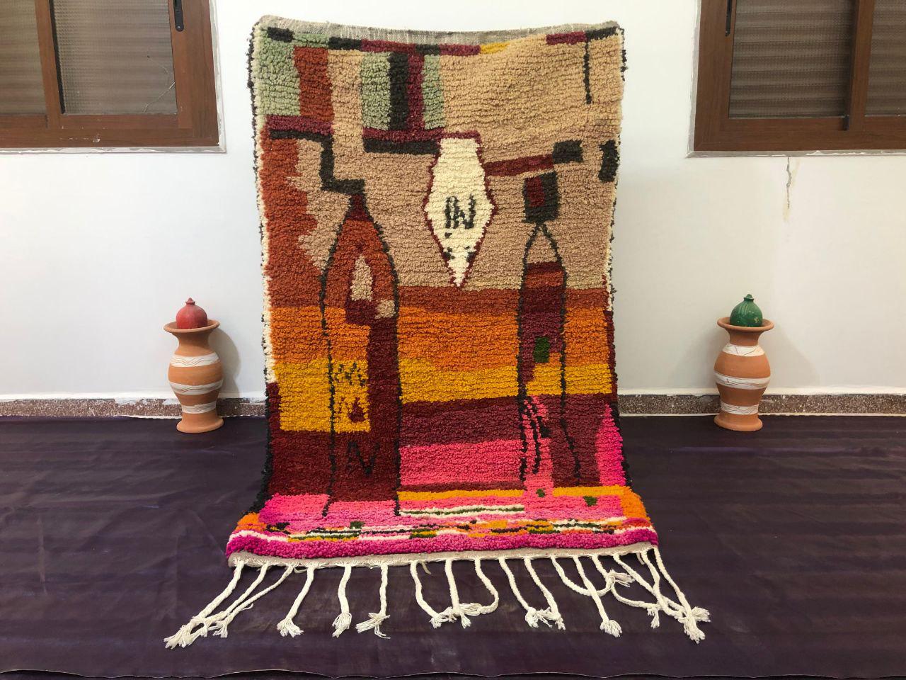 A Moroccan Berber Colorful rug is a traditional handwoven floor covering that originates from the indigenous Berber people of Morocco. These rugs are known for their intricate patterns and bold, geometric designs, which are created using a variety of natural dyes and High-quality Wool. Moroccan boujad rugs are versatile and can be used to add a touch of bohemian chic to any room, from a living room or bedroom to a home office or entryway. They are durable and easy to maintain, making them a practical choice for high-traffic areas. Whether you're looking to add a pop of color to your space or create a warm and welcoming atmosphere, a Moroccan Berber rug is a great choice.