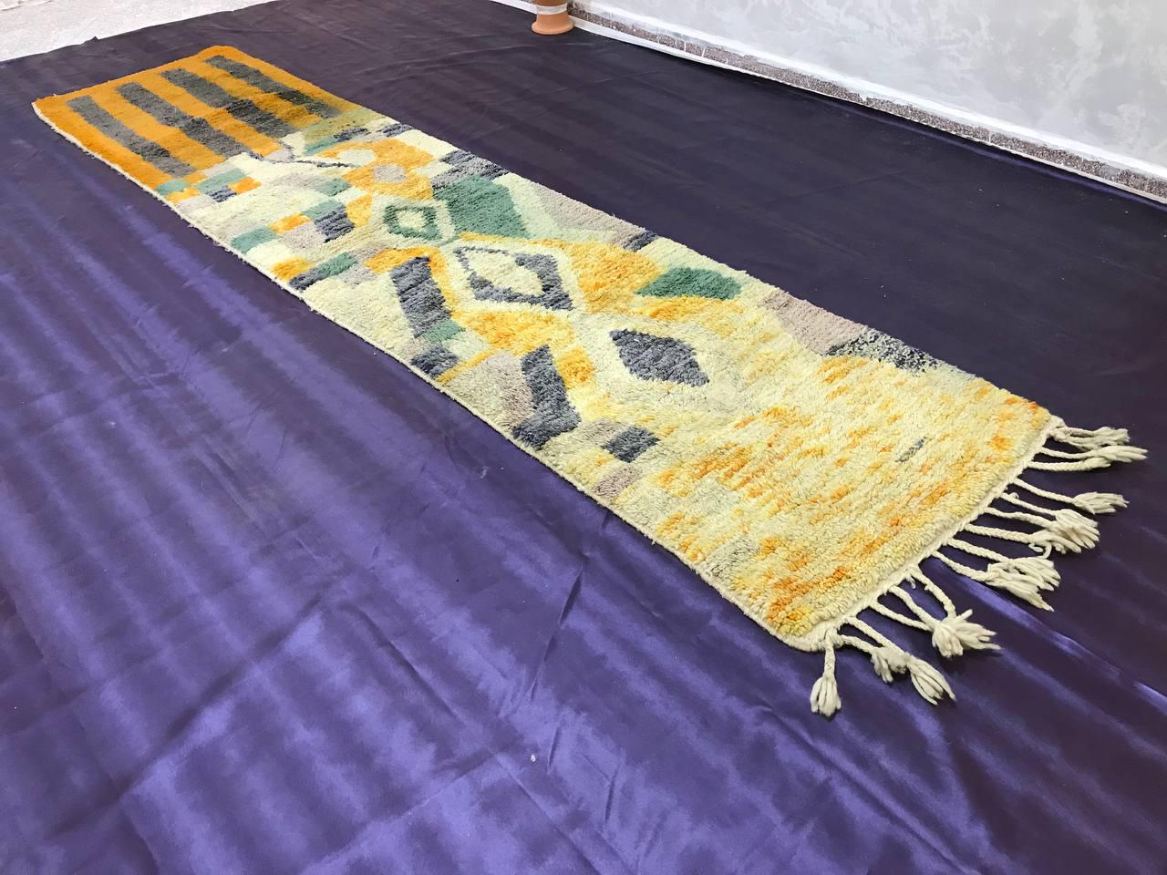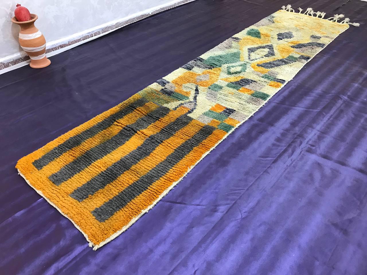 Custom Orange Berber Runner Rug: Hand-Knotted Wool Hallway Tapis ,tapis marocain for living room