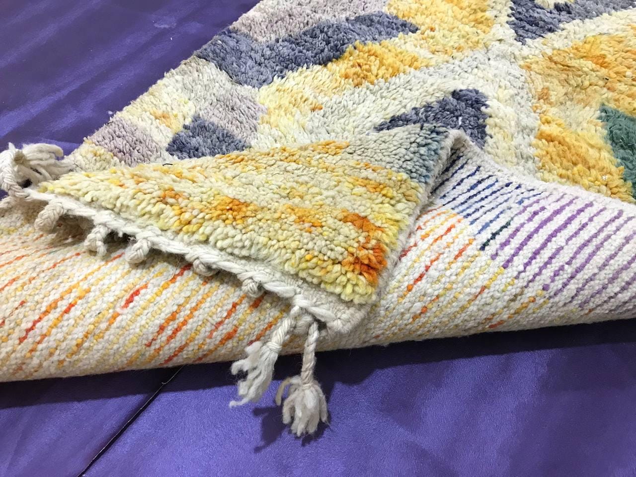 A Moroccan Berber Colorful rug is a traditional handwoven floor covering that originates from the indigenous Berber people of Morocco. These rugs are known for their intricate patterns and bold, geometric designs, which are created using a variety of natural dyes and High-quality Wool. Moroccan boujad rugs are versatile and can be used to add a touch of bohemian chic to any room, from a living room or bedroom to a home office or entryway. They are durable and easy to maintain, making them a practical choice for high-traffic areas. Whether you're looking to add a pop of color to your space or create a warm and welcoming atmosphere, a Moroccan Berber rug is a great choice. 📌 Shipping: insured, trackable, Fast, and FREE Worldwide by FedEx or DHL (2 to 5 days delivery). ❖ Cleaning: all rugs are carefully cleaned before shipping. ❖ Colors: Please take a look at the pictures. ❖ Texture: Moroccan / soft / Shag. ❖ Technique: Hand-Knotted ❖ Construction: Handmade ❖ Location: Indoor Use Only ❖ Material: Your order is made entirely by hand from natural wool, which means there will be natural (and beautiful) variations in pattern and color. Wool shrinks. ❖ Pattern: Because the product is handcrafted, the pattern and Colors may vary slightly from one piece to another. ❖ Size: While we try our best to ensure consistent sizing, it is possible for final sizes to vary by a few inches more or less. ❖ Tassels: One side is the Traditional way of making the rugs. 📌Ships tightly rolled in a protective bag. Any slight creasing will disappear within a few days. Shedding loose fibers is normal with new rugs. Shedding will diminish with regular vacuuming. If you have any questions or queries, please feel free to contact me via messages.