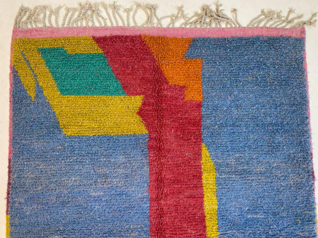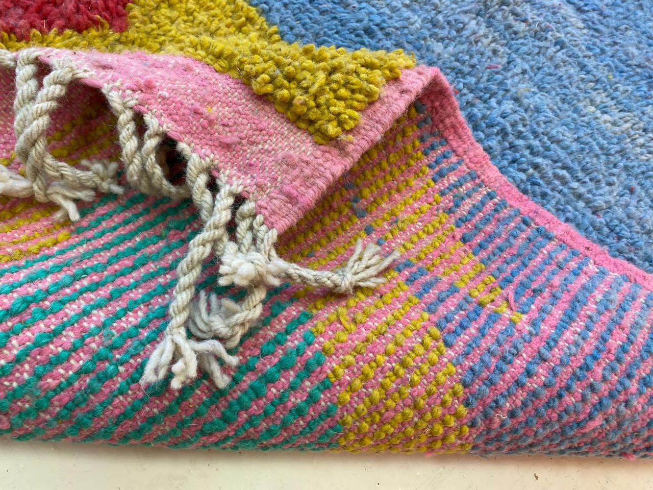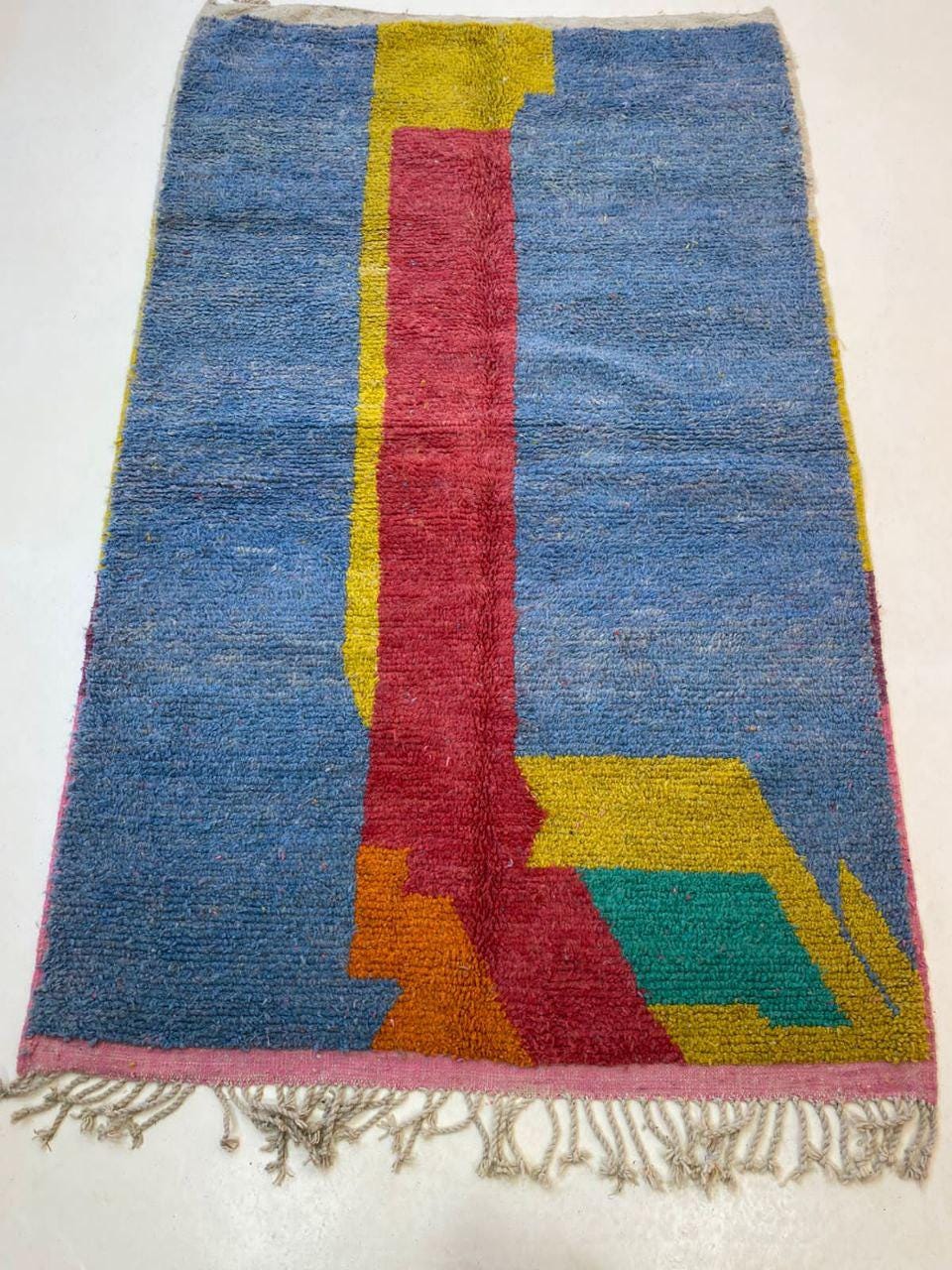 A Moroccan Berber Colorful rug is a traditional handwoven floor covering that originates from the indigenous Berber people of Morocco. These rugs are known for their intricate patterns and bold, geometric designs, which are created using a variety of natural dyes and High-quality Wool. Moroccan boujad rugs are versatile and can be used to add a touch of bohemian chic to any room, from a living room or bedroom to a home office or entryway. They are durable and easy to maintain, making them a practical choice for high-traffic areas. Whether you're looking to add a pop of color to your space or create a warm and welcoming atmosphere, a Moroccan Berber rug is a great choice. 📌 Shipping: insured, trackable, Fast, and FREE Worldwide by FedEx or DHL (2 to 5 days delivery). ❖ Cleaning: all rugs are carefully cleaned before shipping. ❖ Colors: Please take a look at the pictures. ❖ Texture: Moroccan / soft / Shag. ❖ Technique: Hand-Knotted ❖ Construction: Handmade ❖ Location: Indoor Use Only ❖ Material: Your order is made entirely by hand from natural wool, which means there will be natural (and beautiful) variations in pattern and color. Wool shrinks. ❖ Pattern: Because the product is handcrafted, the pattern and Colors may vary slightly from one piece to another. ❖ Size: While we try our best to ensure consistent sizing, it is possible for final sizes to vary by a few inches more or less. ❖ Tassels: One side is the Traditional way of making the rugs. 📌Ships tightly rolled in a protective bag. Any slight creasing will disappear within a few days. Shedding loose fibers is normal with new rugs. Shedding will diminish with regular vacuuming. If you have any questions or queries, please feel free to contact me via messages. hand-knoted rug blue moroccan,handmade moroccan rug ,hand-knoted rug for living room
