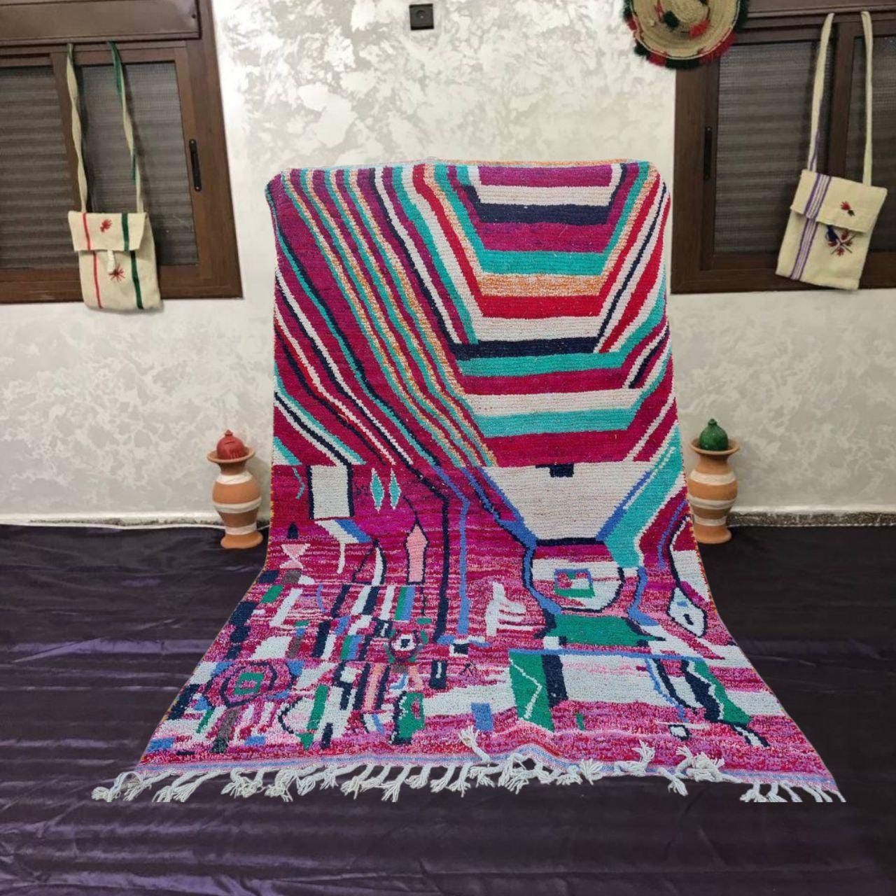 A Moroccan Berber Colorful rug is a traditional handwoven floor covering that originates from the indigenous Berber people of Morocco. These rugs are known for their intricate patterns and bold, geometric designs, which are created using a variety of natural dyes and High-quality Wool. Moroccan boujad rugs are versatile and can be used to add a touch of bohemian chic to any room, from a living room or bedroom to a home office or entryway. They are durable and easy to maintain, making them a practical choice for high-traffic areas. Whether you're looking to add a pop of color to your space or create a warm and welcoming atmosphere, a Moroccan Berber rug is a great choice. 📌 Shipping: insured, trackable, Fast, and FREE Worldwide by FedEx or DHL (2 to 5 days delivery). ❖ Cleaning: all rugs are carefully cleaned before shipping. ❖ Colors: Please take a look at the pictures. ❖ Texture: Moroccan / soft / Shag. ❖ Technique: Hand-Knotted ❖ Construction: Handmade ❖ Location: Indoor Use Only ❖ Material: Your order is made entirely by hand from natural wool, which means there will be natural (and beautiful) variations in pattern and color. Wool shrinks. ❖ Pattern: Because the product is handcrafted, the pattern and Colors may vary slightly from one piece to another. ❖ Size: While we try our best to ensure consistent sizing, it is possible for final sizes to vary by a few inches more or less. ❖ Tassels: One side is the Traditional way of making the rugs. 📌Ships tightly rolled in a protective bag. Any slight creasing will disappear within a few days. Shedding loose fibers is normal with new rugs. Shedding will diminish with regular vacuuming. If you have any questions or queries, please feel free to contact me via messages. rug hand-knoted colour full rugs ,moroccan rug hand-knoted carpet,handmade rug colour carpet
