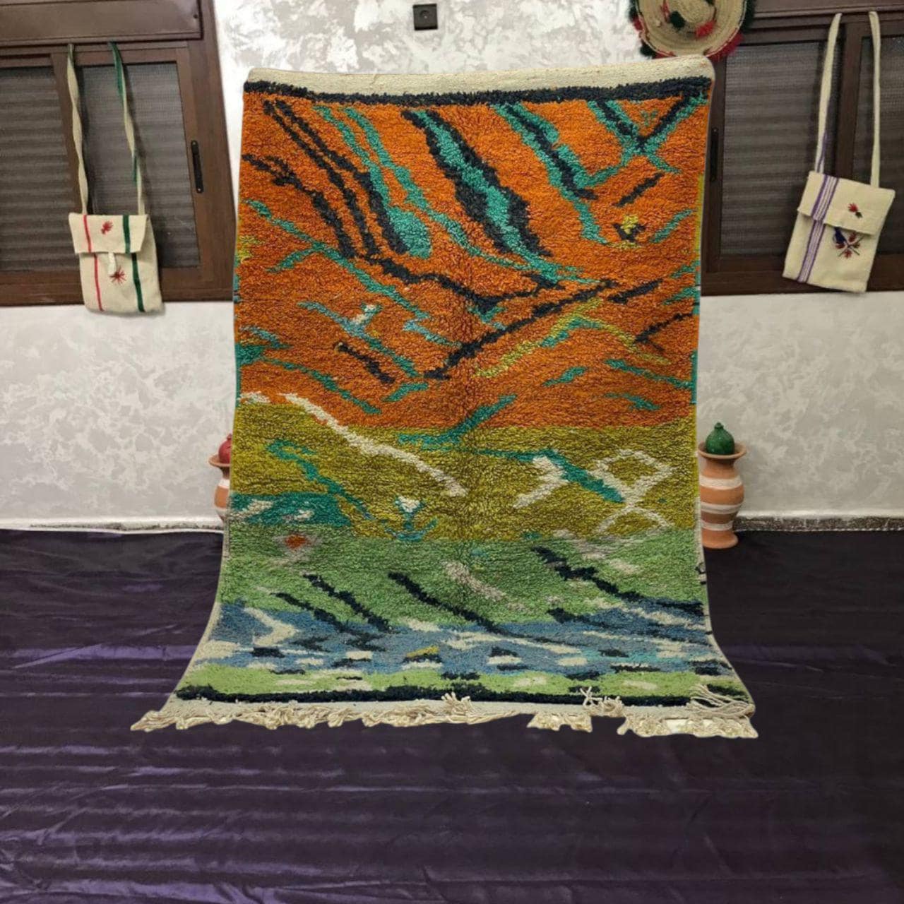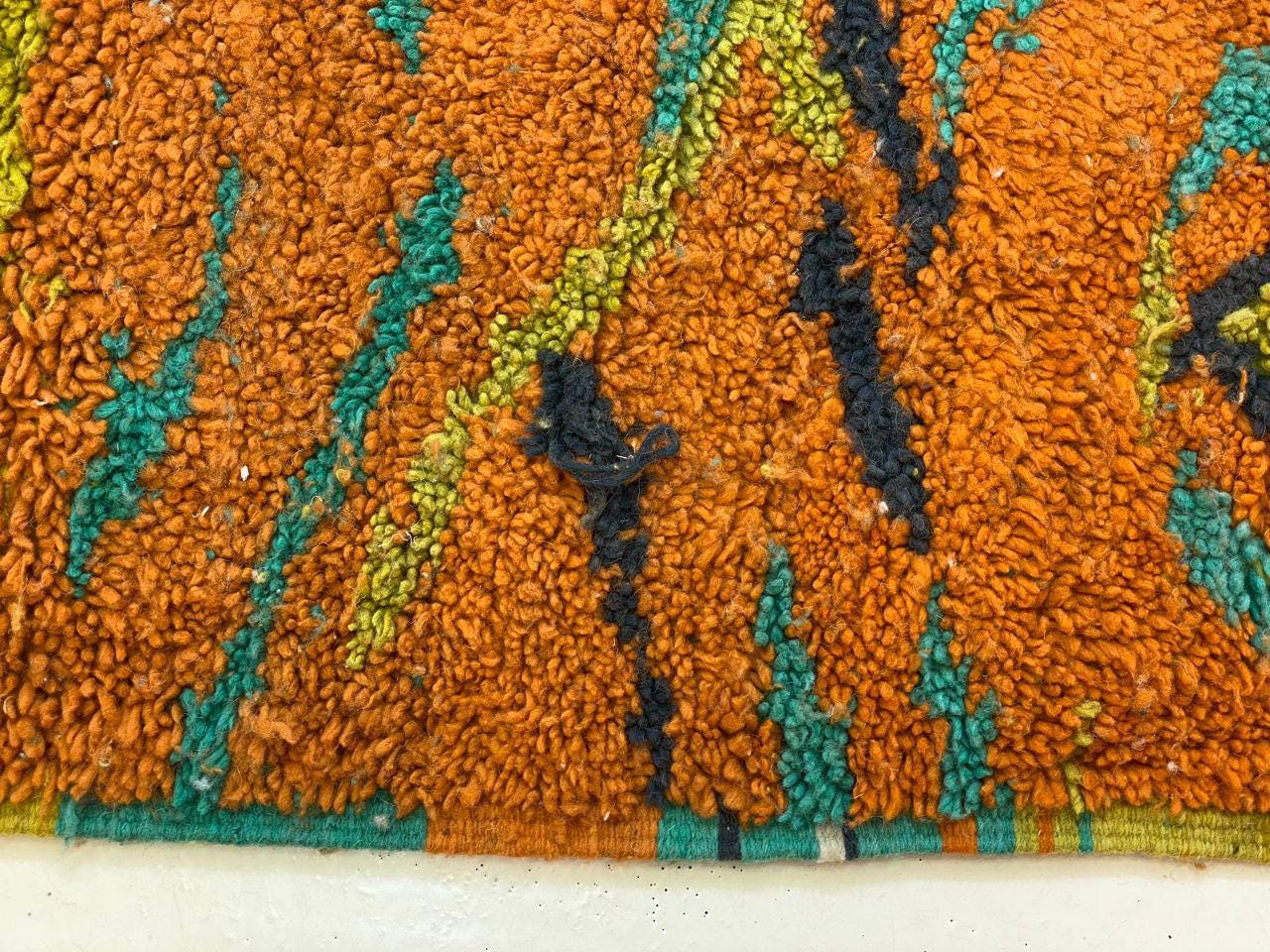 A Moroccan Berber Colorful rug is a traditional handwoven floor covering that originates from the indigenous Berber people of Morocco. These rugs are known for their intricate patterns and bold, geometric designs, which are created using a variety of natural dyes and High-quality Wool. Moroccan boujad rugs are versatile and can be used to add a touch of bohemian chic to any room, from a living room or bedroom to a home office or entryway. They are durable and easy to maintain, making them a practical choice for high-traffic areas. Whether you're looking to add a pop of color to your space or create a warm and welcoming atmosphere, a Moroccan Berber rug is a great choice. 📌 Shipping: insured, trackable, Fast, and FREE Worldwide by FedEx or DHL (2 to 5 days delivery). ❖ Cleaning: all rugs are carefully cleaned before shipping. ❖ Colors: Please take a look at the pictures. ❖ Texture: Moroccan / soft / Shag. ❖ Technique: Hand-Knotted ❖ Construction: Handmade ❖ Location: Indoor Use Only ❖ Material: Your order is made entirely by hand from natural wool, which means there will be natural (and beautiful) variations in pattern and color. Wool shrinks. ❖ Pattern: Because the product is handcrafted, the pattern and Colors may vary slightly from one piece to another. ❖ Size: While we try our best to ensure consistent sizing, it is possible for final sizes to vary by a few inches more or less. ❖ Tassels: One side is the Traditional way of making the rugs. 📌Ships tightly rolled in a protective bag. Any slight creasing will disappear within a few days. Shedding loose fibers is normal with new rugs. Shedding will diminish with regular vacuuming. If you have any questions or queries, please feel free to contact me via messages. rug orange for bedroom boujaad,moroccan hand-knoted rug,colour full rug boujaad