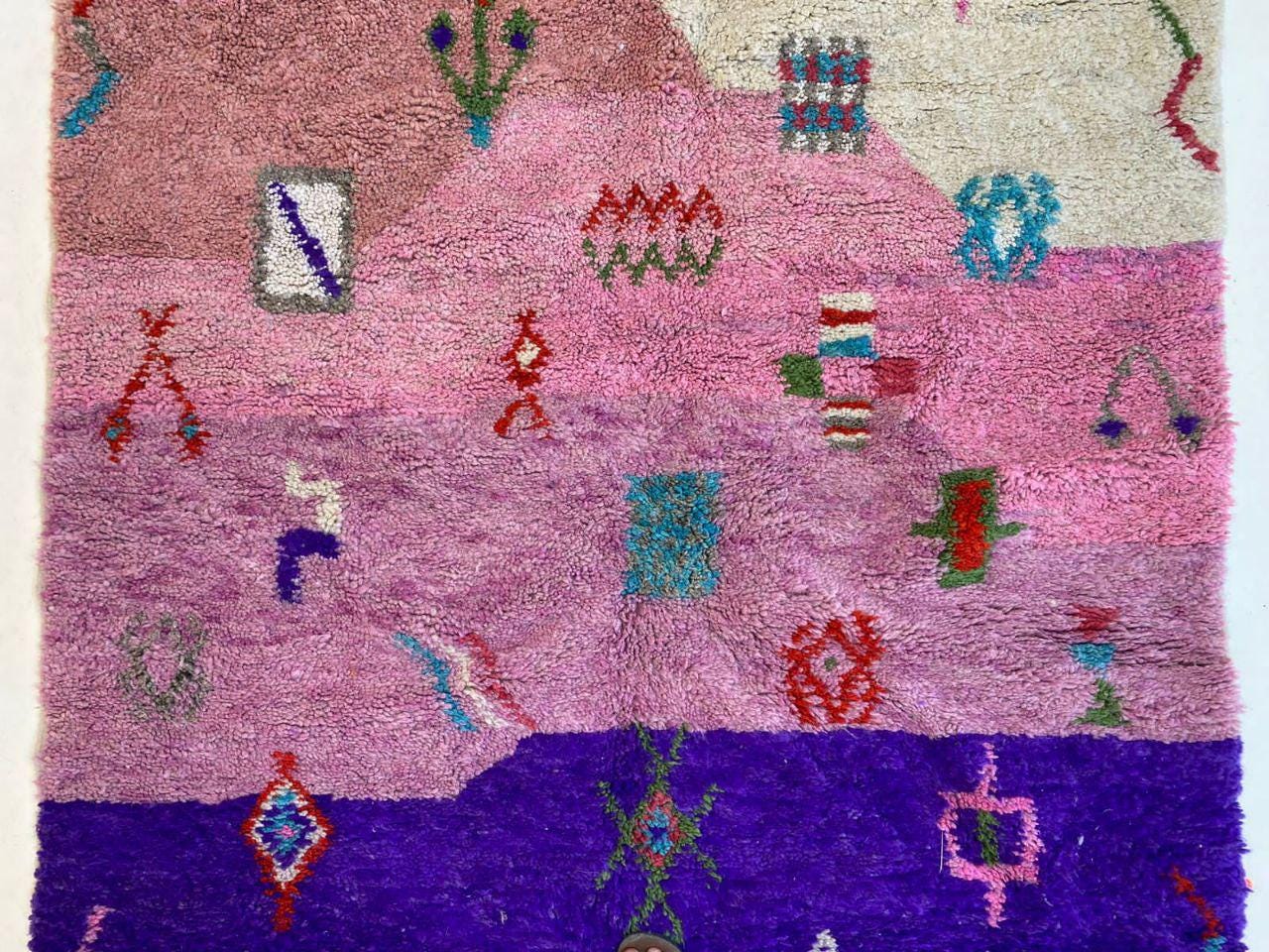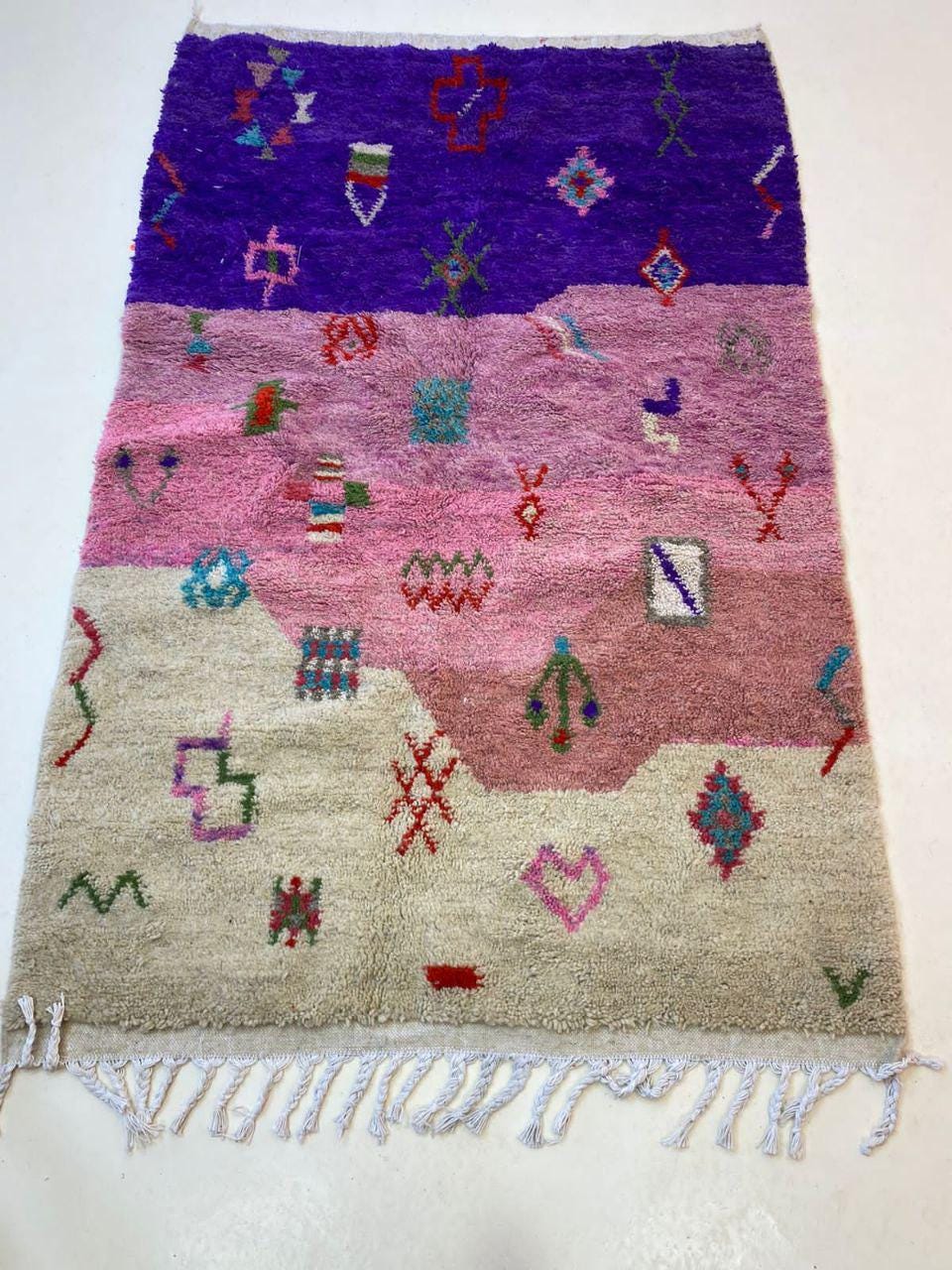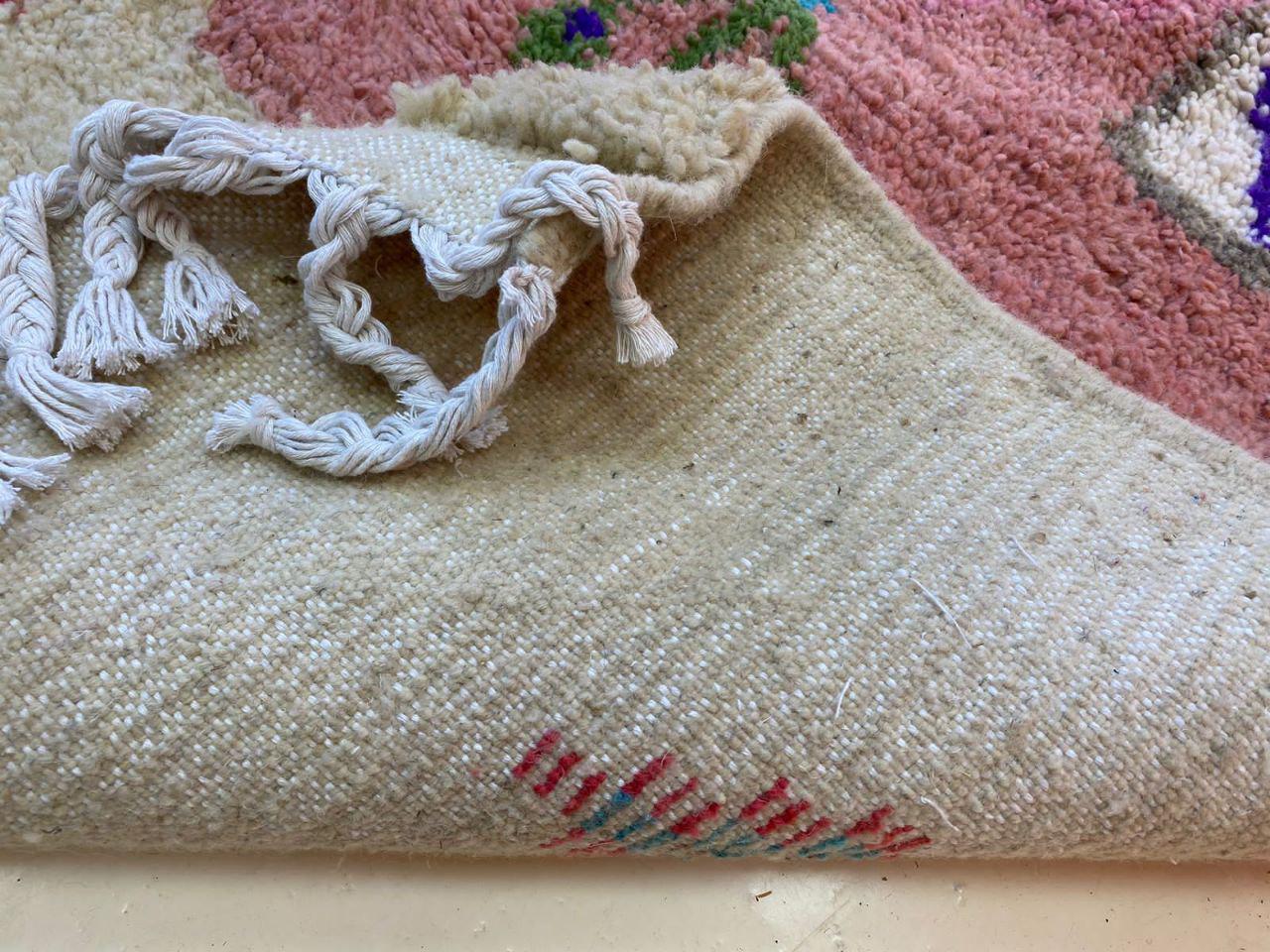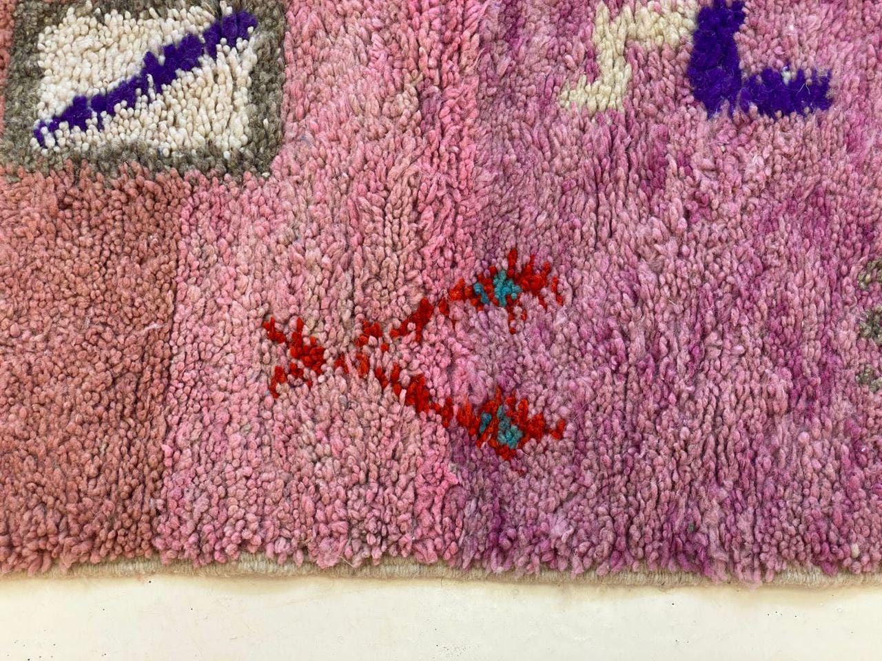 A Moroccan Berber Colorful rug is a traditional handwoven floor covering that originates from the indigenous Berber people of Morocco. These rugs are known for their intricate patterns and bold, geometric designs, which are created using a variety of natural dyes and High-quality Wool. Moroccan boujad rugs are versatile and can be used to add a touch of bohemian chic to any room, from a living room or bedroom to a home office or entryway. They are durable and easy to maintain, making them a practical choice for high-traffic areas. Whether you're looking to add a pop of color to your space or create a warm and welcoming atmosphere, a Moroccan Berber rug is a great choice. 📌 Shipping: insured, trackable, Fast, and FREE Worldwide by FedEx or DHL (2 to 5 days delivery). ❖ Cleaning: all rugs are carefully cleaned before shipping. ❖ Colors: Please take a look at the pictures. ❖ Texture: Moroccan / soft / Shag. ❖ Technique: Hand-Knotted ❖ Construction: Handmade ❖ Location: Indoor Use Only ❖ Material: Your order is made entirely by hand from natural wool, which means there will be natural (and beautiful) variations in pattern and color. Wool shrinks. ❖ Pattern: Because the product is handcrafted, the pattern and Colors may vary slightly from one piece to another. ❖ Size: While we try our best to ensure consistent sizing, it is possible for final sizes to vary by a few inches more or less. ❖ Tassels: One side is the Traditional way of making the rugs. 📌Ships tightly rolled in a protective bag. Any slight creasing will disappear within a few days. Shedding loose fibers is normal with new rugs. Shedding will diminish with regular vacuuming. If you have any questions or queries, please feel free to contact me via messages. moroccan hand-knoted rug azilal ,moroccan rug boujaad colour pink,moroccan rug pink and white