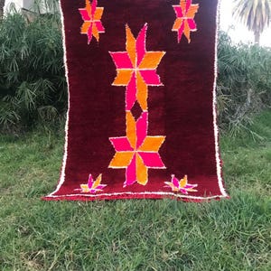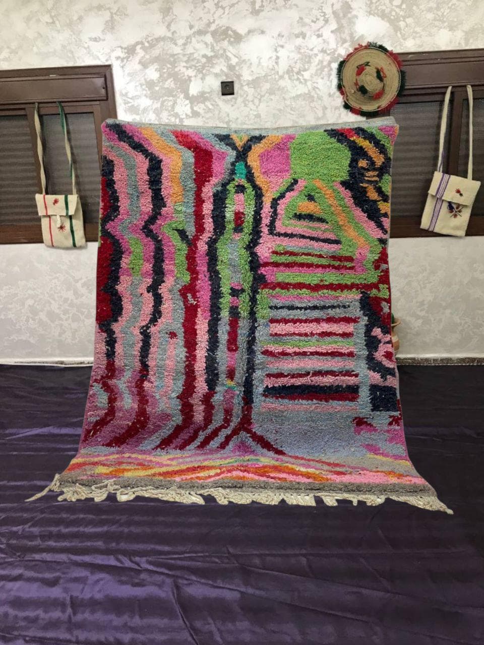 A Moroccan Berber Colorful rug is a traditional handwoven floor covering that originates from the indigenous Berber people of Morocco. These rugs are known for their intricate patterns and bold, geometric designs, which are created using a variety of natural dyes and High-quality Wool. Moroccan boujad rugs are versatile and can be used to add a touch of bohemian chic to any room, from a living room or bedroom to a home office or entryway. They are durable and easy to maintain, making them a practical choice for high-traffic areas. Whether you're looking to add a pop of color to your space or create a warm and welcoming atmosphere, a Moroccan Berber rug is a great choice. 📌 Shipping: insured, trackable, Fast, and FREE Worldwide by FedEx or DHL (2 to 5 days delivery). ❖ Cleaning: all rugs are carefully cleaned before shipping. ❖ Colors: Please take a look at the pictures. ❖ Texture: Moroccan / soft / Shag. ❖ Technique: Hand-Knotted ❖ Construction: Handmade ❖ Location: Indoor Use Only ❖ Material: Your order is made entirely by hand from natural wool, which means there will be natural (and beautiful) variations in pattern and color. Wool shrinks. ❖ Pattern: Because the product is handcrafted, the pattern and Colors may vary slightly from one piece to another. ❖ Size: While we try our best to ensure consistent sizing, it is possible for final sizes to vary by a few inches more or less. ❖ Tassels: One side is the Traditional way of making the rugs. 📌Ships tightly rolled in a protective bag. Any slight creasing will disappear within a few days. Shedding loose fibers is normal with new rugs. Shedding will diminish with regular vacuuming. If you have any questions or queries, please feel free to contact me via messages. rug,10x12 moroccan rug,colour rug boujaad,rug 8x4,3x7 rug living room