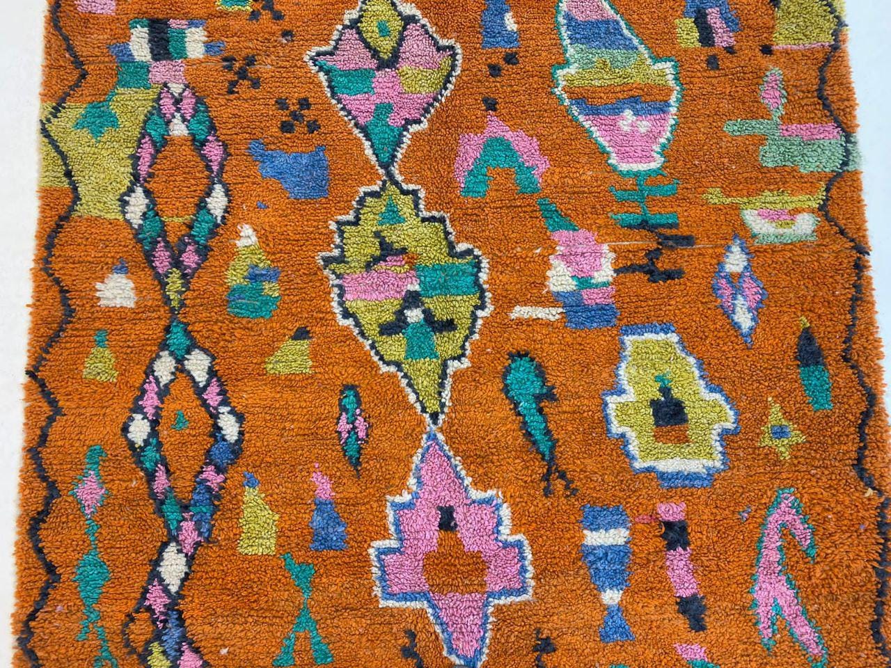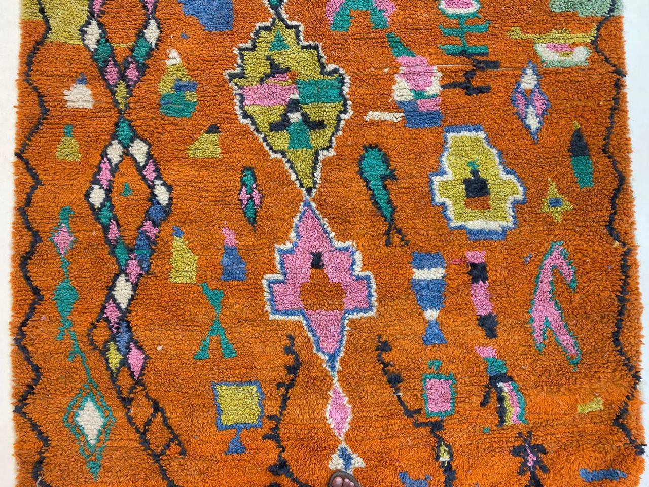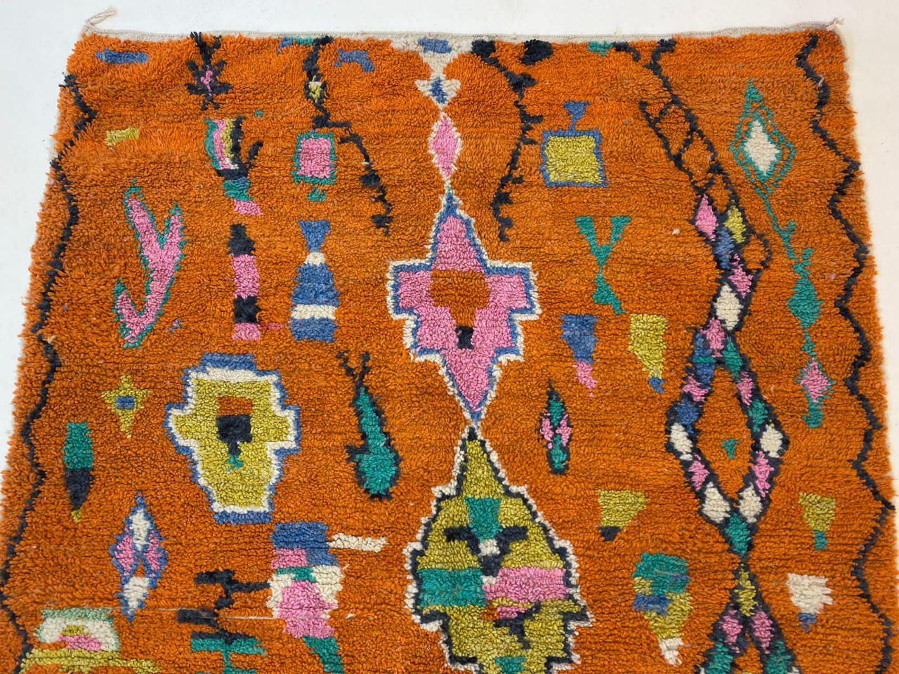 A Moroccan Berber Colorful rug is a traditional handwoven floor covering that originates from the indigenous Berber people of Morocco. These rugs are known for their intricate patterns and bold, geometric designs, which are created using a variety of natural dyes and High-quality Wool. Moroccan boujad rugs are versatile and can be used to add a touch of bohemian chic to any room, from a living room or bedroom to a home office or entryway. They are durable and easy to maintain, making them a practical choice for high-traffic areas. Whether you're looking to add a pop of color to your space or create a warm and welcoming atmosphere, a Moroccan Berber rug is a great choice. 📌 Shipping: insured, trackable, Fast, and FREE Worldwide by FedEx or DHL (2 to 5 days delivery). ❖ Cleaning: all rugs are carefully cleaned before shipping. ❖ Colors: Please take a look at the pictures. ❖ Texture: Moroccan / soft / Shag. ❖ Technique: Hand-Knotted ❖ Construction: Handmade ❖ Location: Indoor Use Only ❖ Material: Your order is made entirely by hand from natural wool, which means there will be natural (and beautiful) variations in pattern and color. Wool shrinks. ❖ Pattern: Because the product is handcrafted, the pattern and Colors may vary slightly from one piece to another. ❖ Size: While we try our best to ensure consistent sizing, it is possible for final sizes to vary by a few inches more or less. ❖ Tassels: One side is the Traditional way of making the rugs. 📌Ships tightly rolled in a protective bag. Any slight creasing will disappear within a few days. Shedding loose fibers is normal with new rugs. Shedding will diminish with regular vacuuming. If you have any questions or queries, please feel free to contact me via messages. orange rug moroccan,rug orange,authentik rug ,carpet orange 12x14