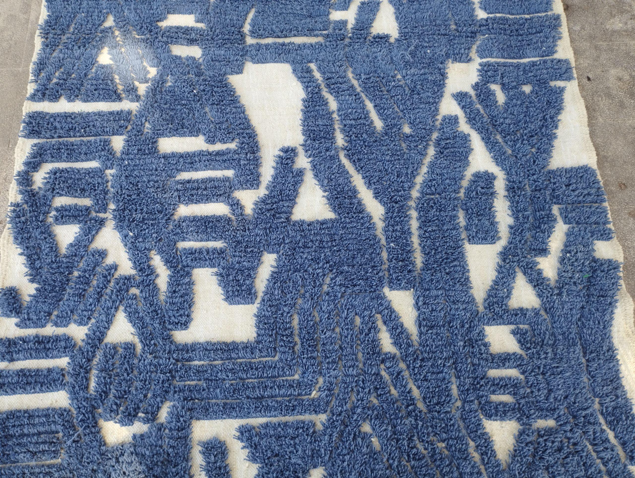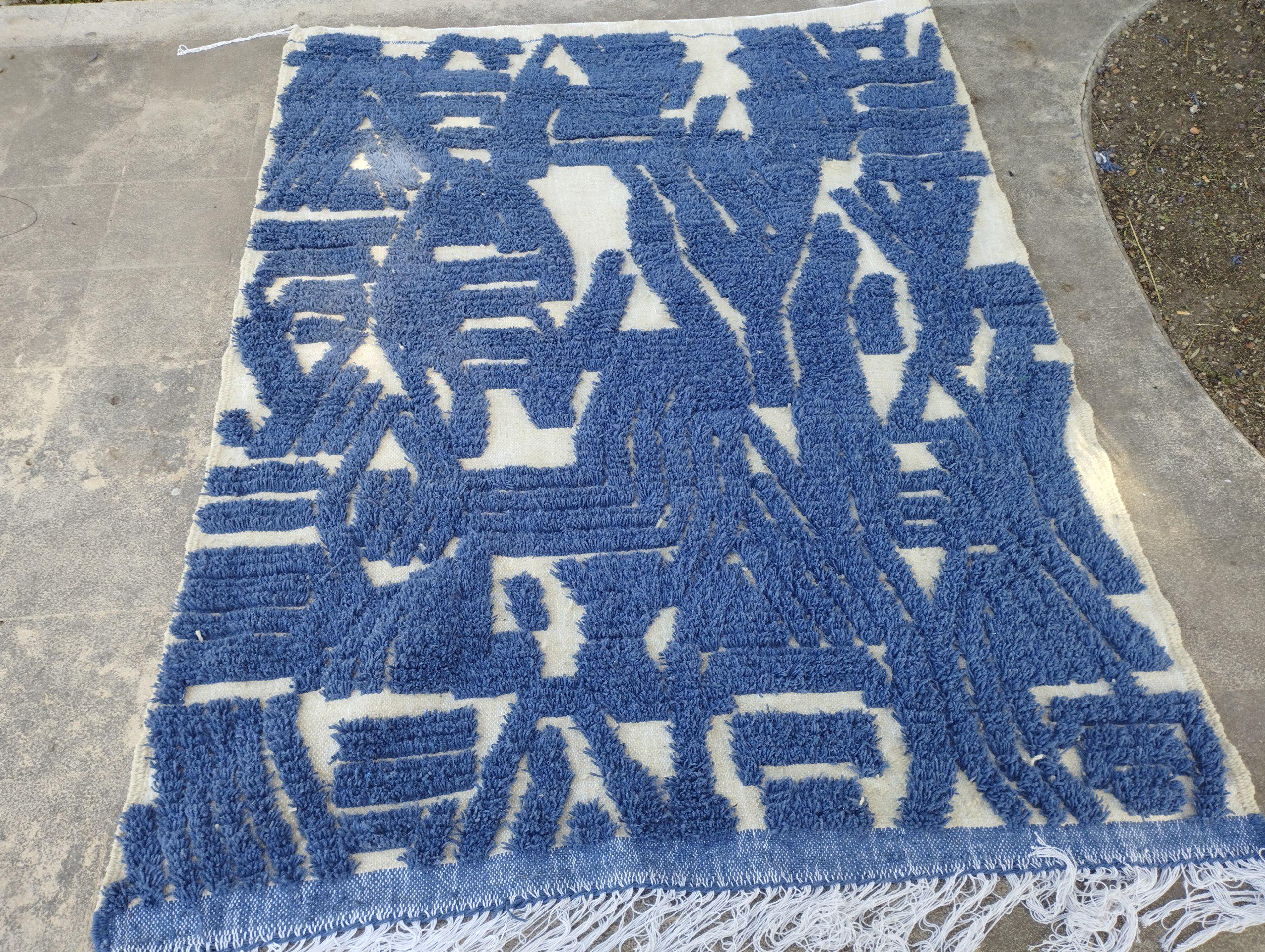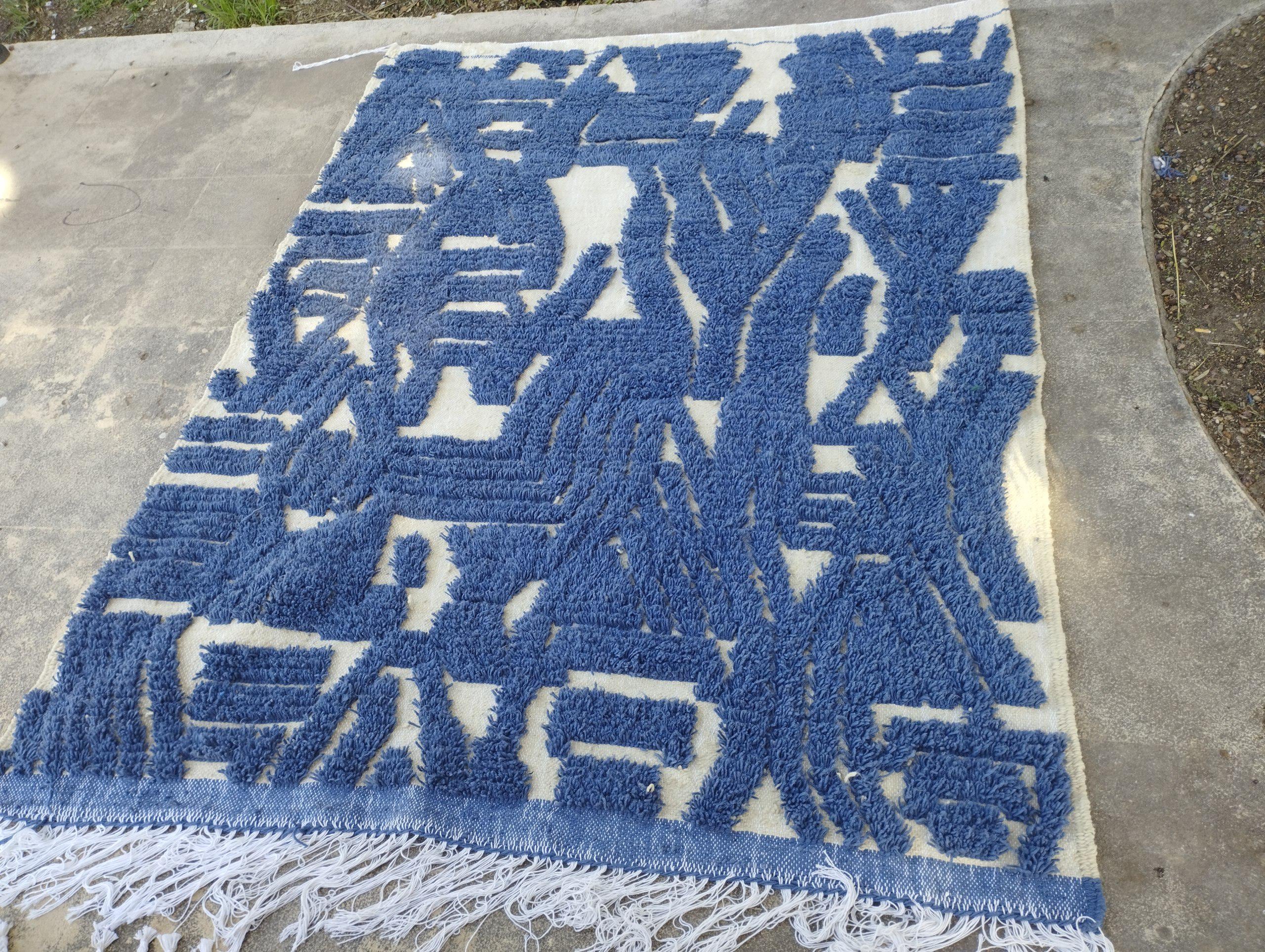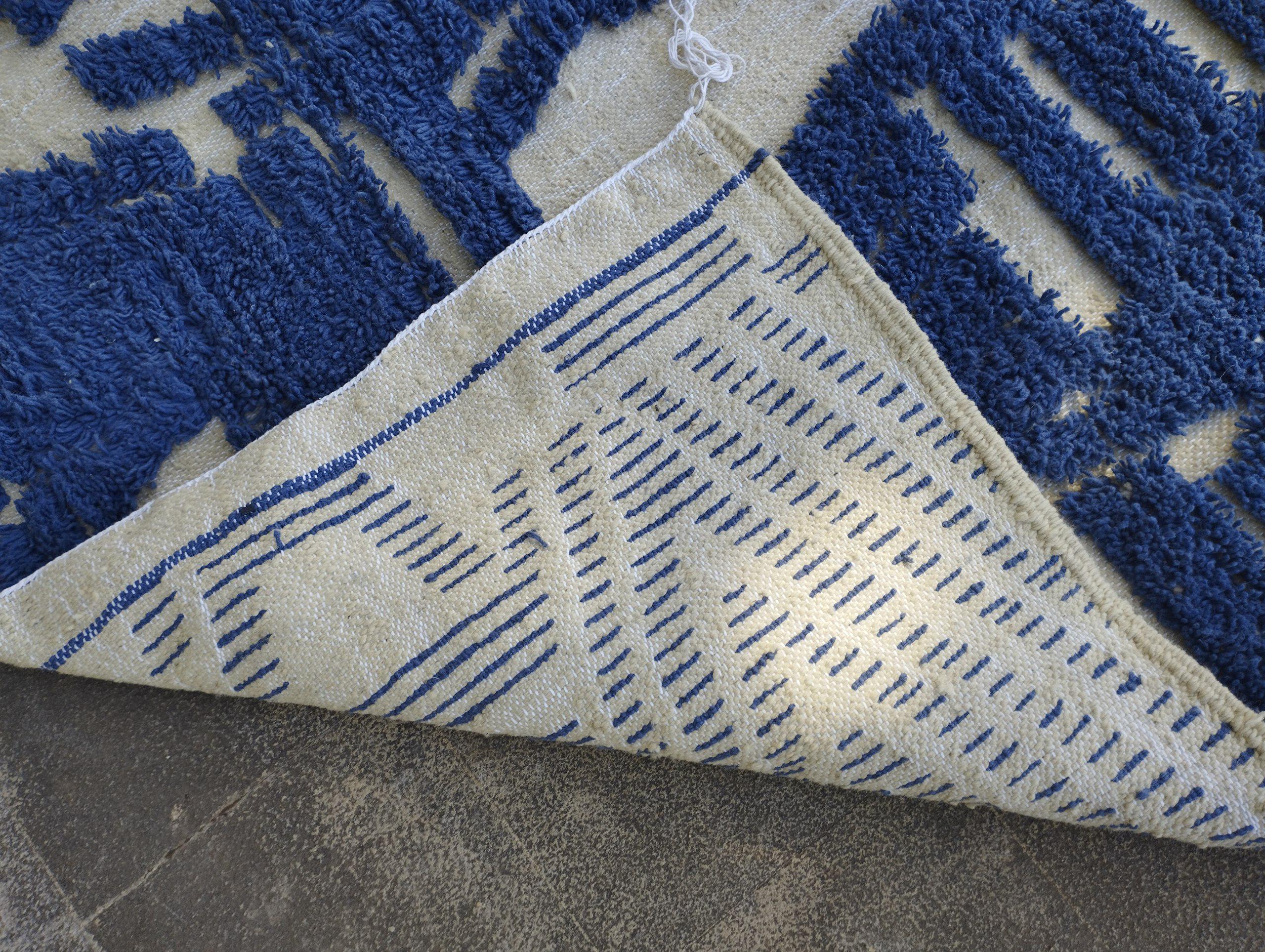A Moroccan Berber Colorful rug is a traditional handwoven floor covering that originates from the indigenous Berber people of Morocco. These rugs are known for their intricate patterns and bold, geometric designs, which are created using a variety of natural dyes and High-quality Wool. Moroccan boujad rugs are versatile and can be used to add a touch of bohemian chic to any room, from a living room or bedroom to a home office or entryway. They are durable and easy to maintain, making them a practical choice for high-traffic areas. Whether you're looking to add a pop of color to your space or create a warm and welcoming atmosphere, a Moroccan Berber rug is a great choice. 📌 Shipping: insured, trackable, Fast, and FREE Worldwide by FedEx or DHL (2 to 5 days delivery). ❖ Cleaning: all rugs are carefully cleaned before shipping. ❖ Colors: Please take a look at the pictures. ❖ Texture: Moroccan / soft / Shag. ❖ Technique: Hand-Knotted ❖ Construction: Handmade ❖ Location: Indoor Use Only ❖ Material: Your order is made entirely by hand from natural wool, which means there will be natural (and beautiful) variations in pattern and color. Wool shrinks. ❖ Pattern: Because the product is handcrafted, the pattern and Colors may vary slightly from one piece to another. ❖ Size: While we try our best to ensure consistent sizing, it is possible for final sizes to vary by a few inches more or less. ❖ Tassels: One side is the Traditional way of making the rugs. 📌Ships tightly rolled in a protective bag. Any slight creasing will disappear within a few days. Shedding loose fibers is normal with new rugs. Shedding will diminish with regular vacuuming. If you have any questions or queries, please feel free to contact me via messages. handtufted beni ourain rug blue,gorgeous indigo blue rug,luxurious handwoven wool rug blue