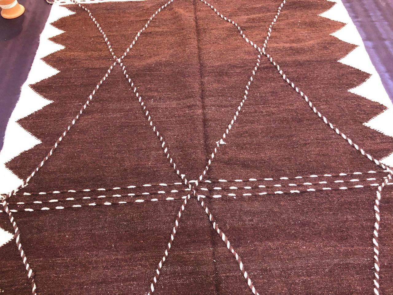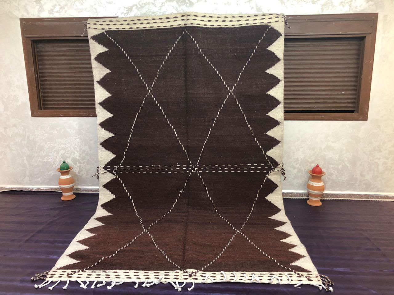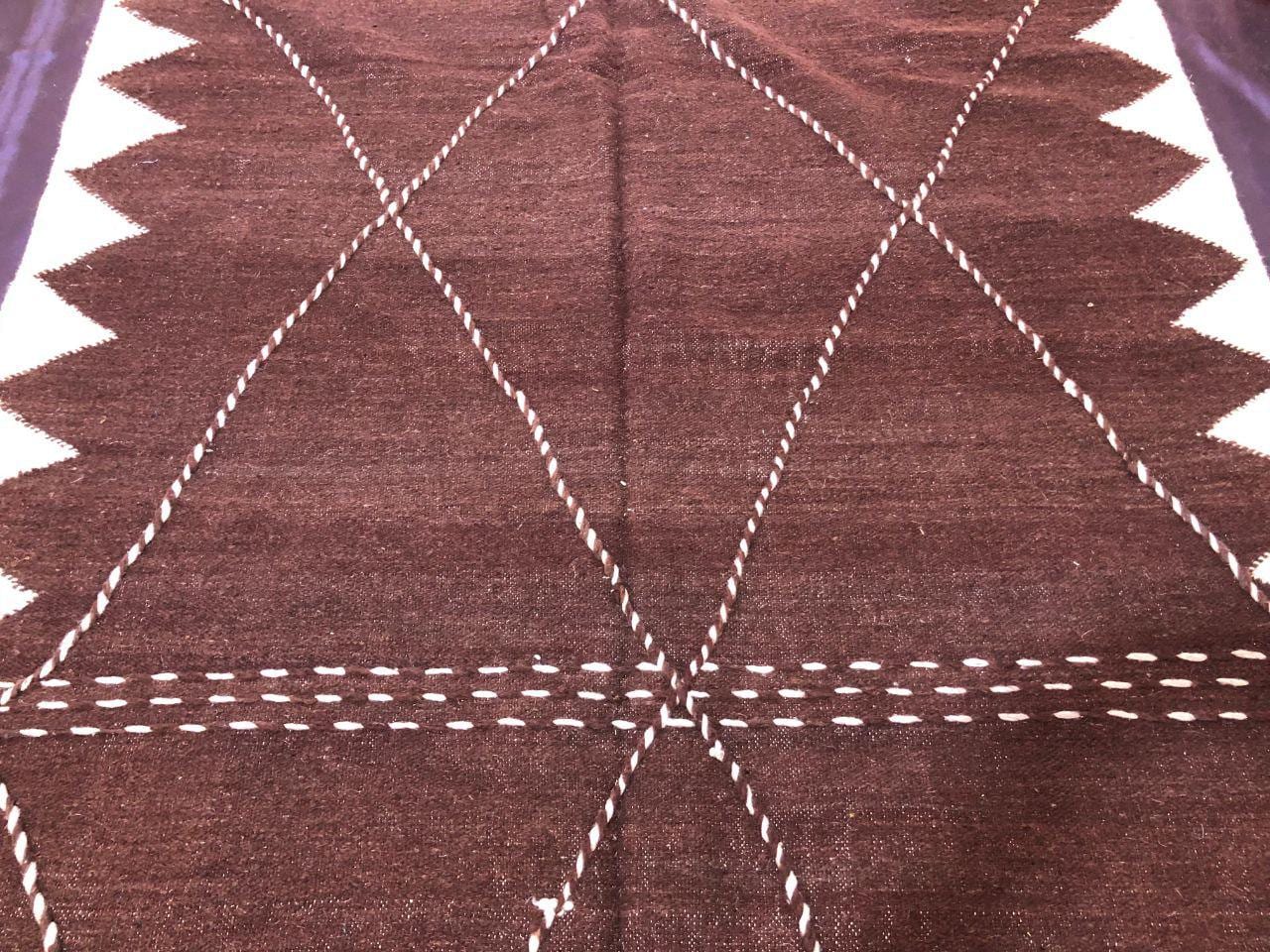 Handmade Moroccan Kilim Rug: Embroidered Wool Runner with Initials