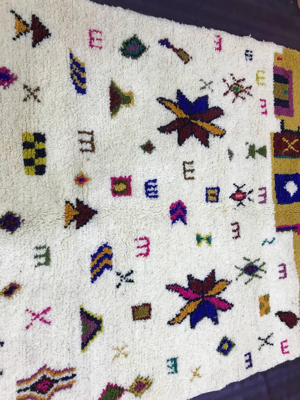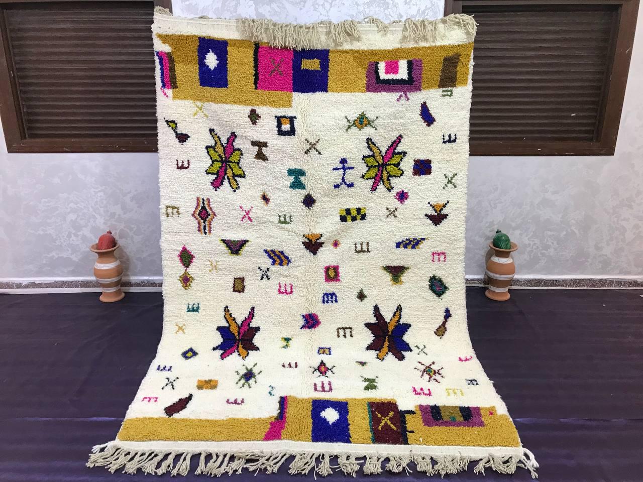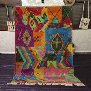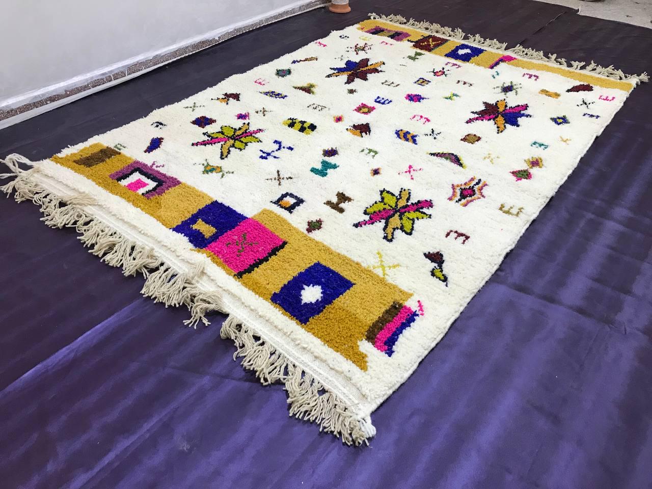 A Moroccan Berber Colorful rug is a traditional handwoven floor covering that originates from the indigenous Berber people of Morocco. These rugs are known for their intricate patterns and bold, geometric designs, which are created using a variety of natural dyes and High-quality Wool. Moroccan boujad rugs are versatile and can be used to add a touch of bohemian chic to any room, from a living room or bedroom to a home office or entryway. They are durable and easy to maintain, making them a practical choice for high-traffic areas. Whether you're looking to add a pop of color to your space or create a warm and welcoming atmosphere, a Moroccan Berber rug is a great choice.