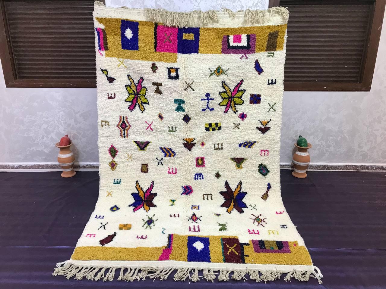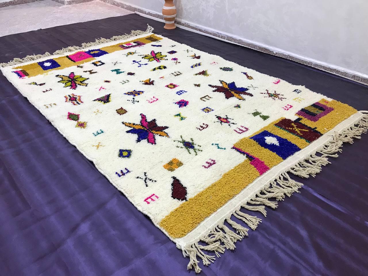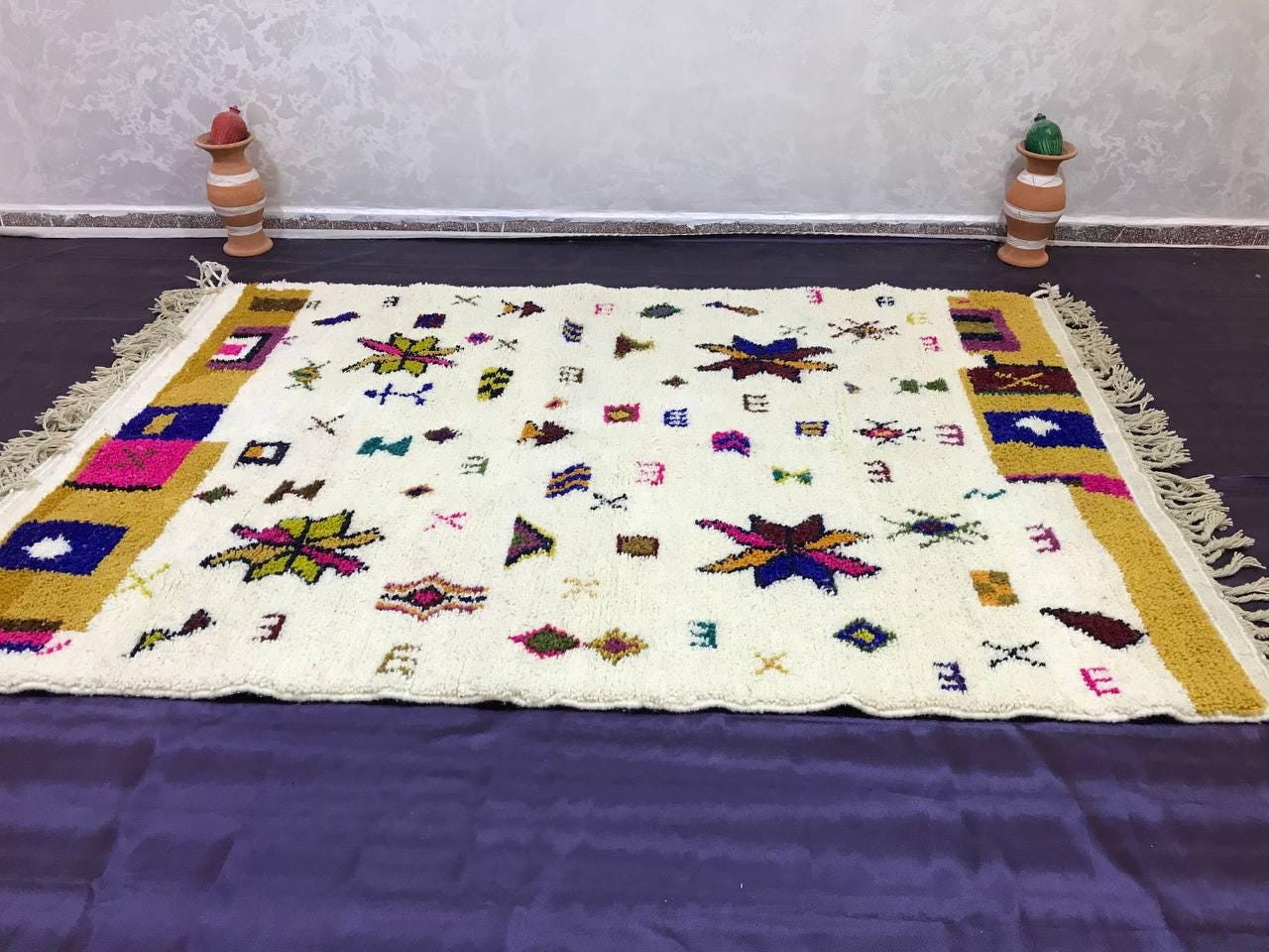 A Moroccan Berber Colorful rug is a traditional handwoven floor covering that originates from the indigenous Berber people of Morocco. These rugs are known for their intricate patterns and bold, geometric designs, which are created using a variety of natural dyes and High-quality Wool. Moroccan boujad rugs are versatile and can be used to add a touch of bohemian chic to any room, from a living room or bedroom to a home office or entryway. They are durable and easy to maintain, making them a practical choice for high-traffic areas. Whether you're looking to add a pop of color to your space or create a warm and welcoming atmosphere, a Moroccan Berber rug is a great choice.