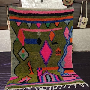 A Moroccan Berber Colorful rug is a traditional handwoven floor covering that originates from the indigenous Berber people of Morocco. These rugs are known for their intricate patterns and bold, geometric designs, which are created using a variety of natural dyes and High-quality Wool. Moroccan boujad rugs are versatile and can be used to add a touch of bohemian chic to any room, from a living room or bedroom to a home office or entryway. They are durable and easy to maintain, making them a practical choice for high-traffic areas. Whether you're looking to add a pop of color to your space or create a warm and welcoming atmosphere, a Moroccan Berber rug is a great choice. 📌 Shipping: insured, trackable, Fast, and FREE Worldwide by FedEx or DHL (2 to 5 days delivery). ❖ Cleaning: all rugs are carefully cleaned before shipping. ❖ Colors: Please take a look at the pictures. ❖ Texture: Moroccan / soft / Shag. ❖ Technique: Hand-Knotted ❖ Construction: Handmade ❖ Location: Indoor Use Only ❖ Material: Your order is made entirely by hand from natural wool, which means there will be natural (and beautiful) variations in pattern and color. Wool shrinks. ❖ Pattern: Because the product is handcrafted, the pattern and Colors may vary slightly from one piece to another. ❖ Size: While we try our best to ensure consistent sizing, it is possible for final sizes to vary by a few inches more or less. ❖ Tassels: One side is the Traditional way of making the rugs. 📌Ships tightly rolled in a protective bag. Any slight creasing will disappear within a few days. Shedding loose fibers is normal with new rugs. Shedding will diminish with regular vacuuming. If you have any questions or queries, please feel free to contact me via messages.
