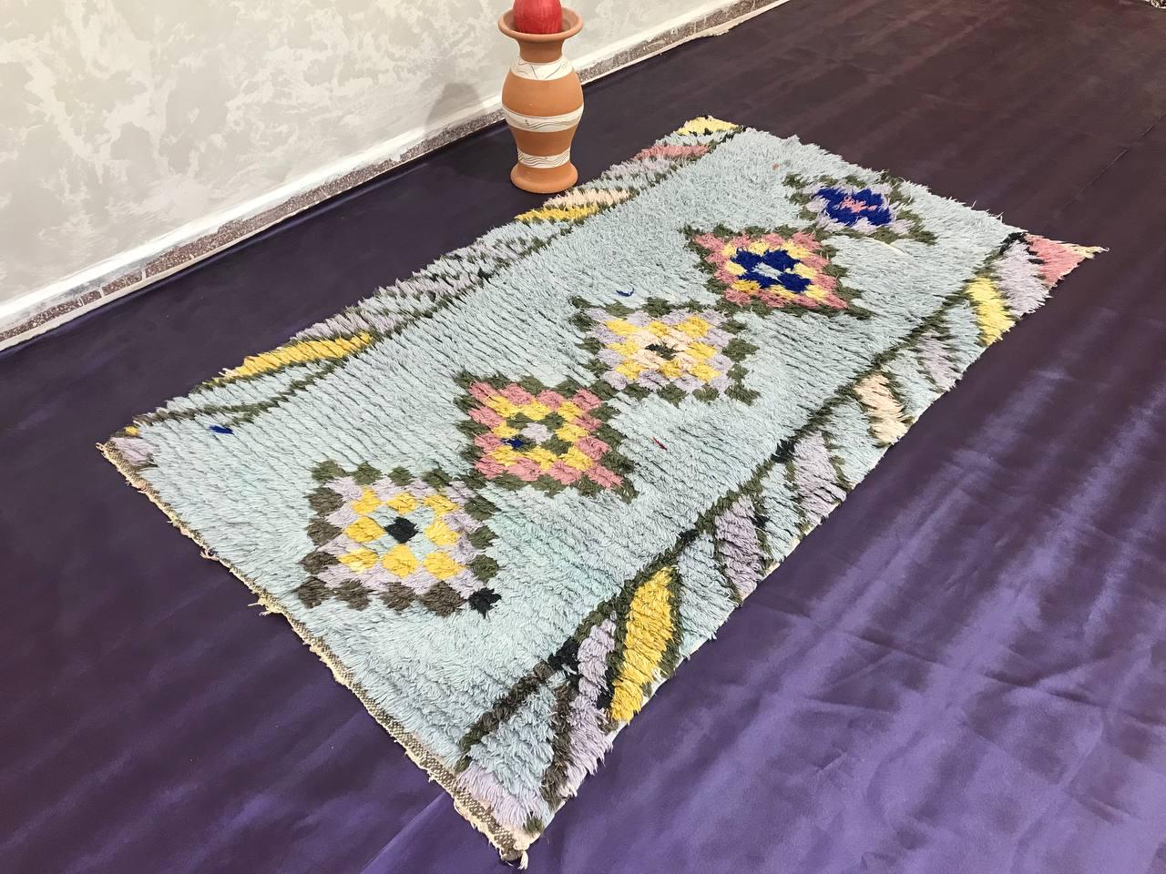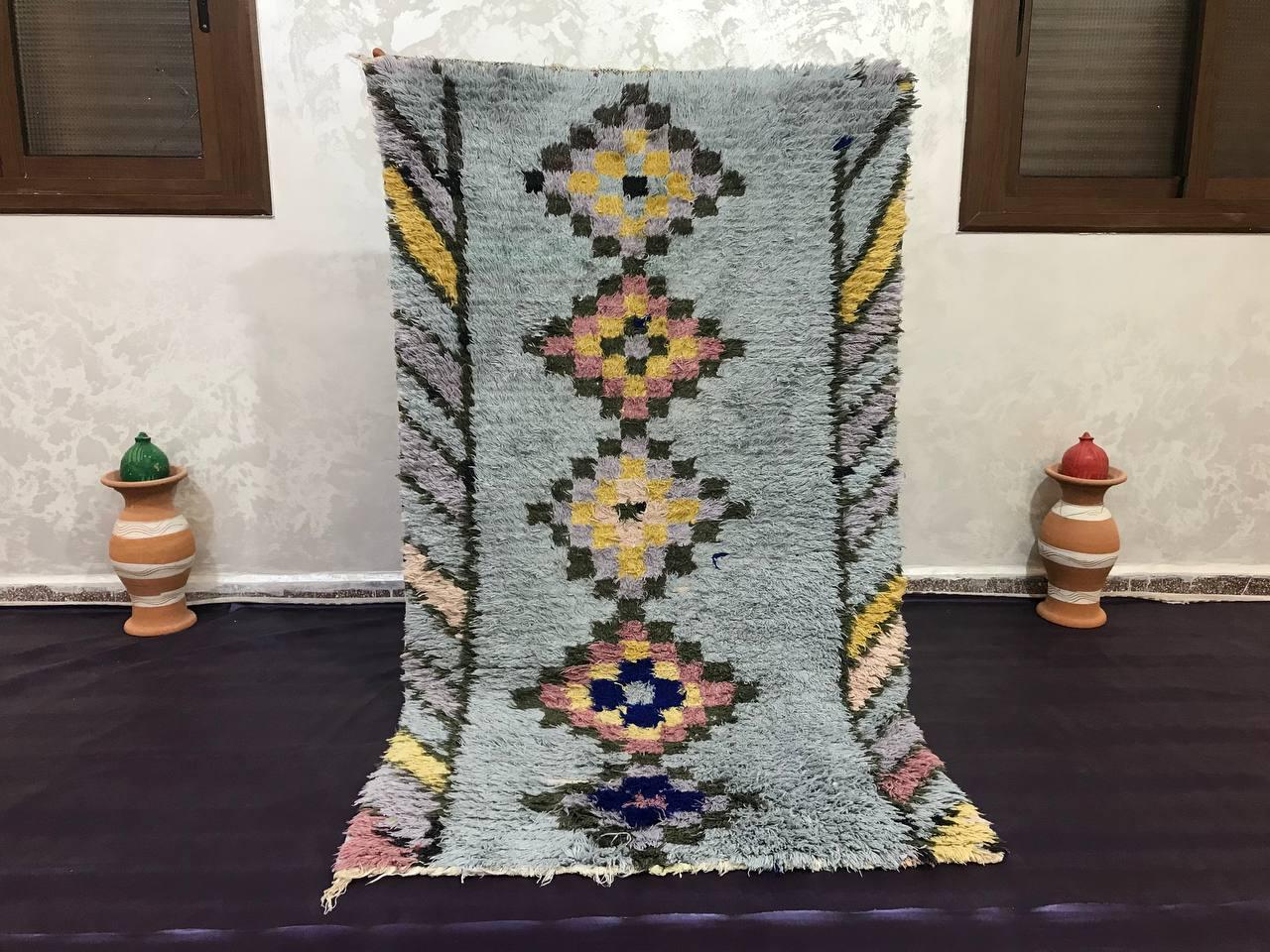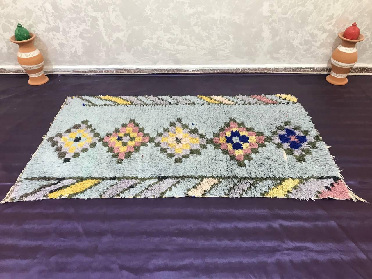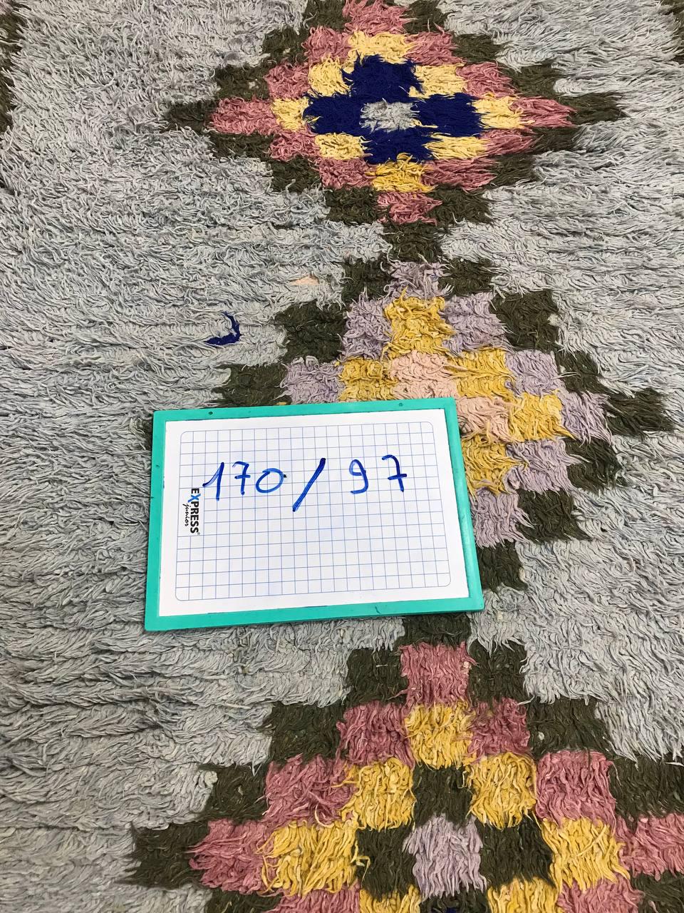 Handwoven boucherouite Moroccan Runner Rug:5,7x 3.2 ft Vintage Boujaad Boucherouite