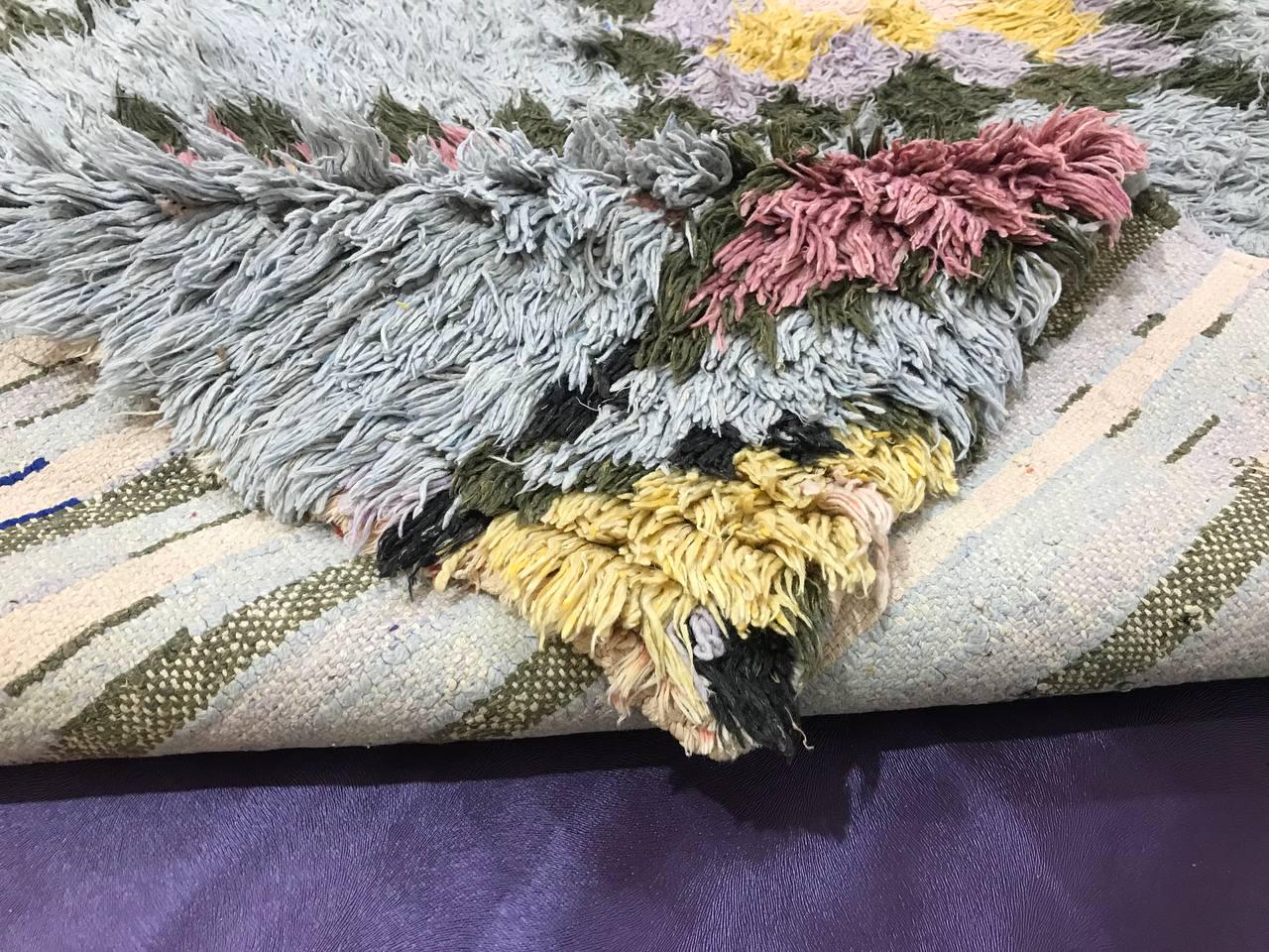 Consider adding a touch of ethnic presence to your home décor. This gorgeous hand-woven rug can be the ideal addition to your casual seating area. it is made out of 100% cotton. If you are looking for rugs to your home or showroom, nothing can be better than a Boujad Rug. Boujad rugs are traditionally hand-woven by women with natural and soft wool, featuring bright red, pinks, mauve, red, or orange backgrounds, along with irregular geometric patterns reflecting the artistic blend of Arabic and Berber cultures in Morocco. The colors are made from the natural dyes of flowers, henna, leaves, and berries. These rugs go perfectly well with all interior styles, including Traditional, Bohemian, Minimalist, Modern, and Scandinavian, which makes it the best choice for your needs. This unique, rare artistic handmade rug has also been featured on the cover of the world's leading home decoration magazines. Due to its handmade nature, every rug is different and unique.