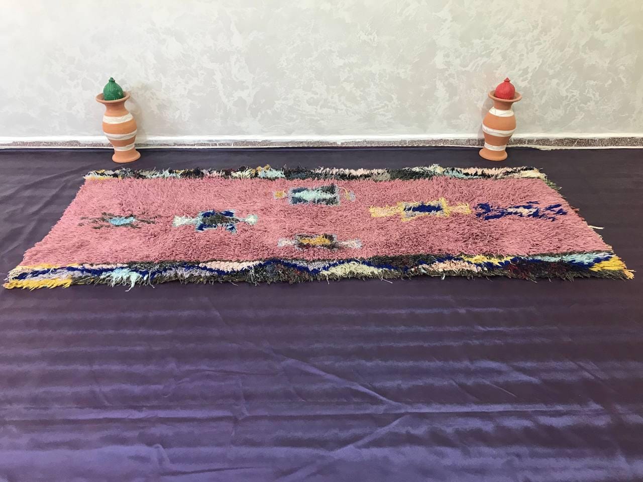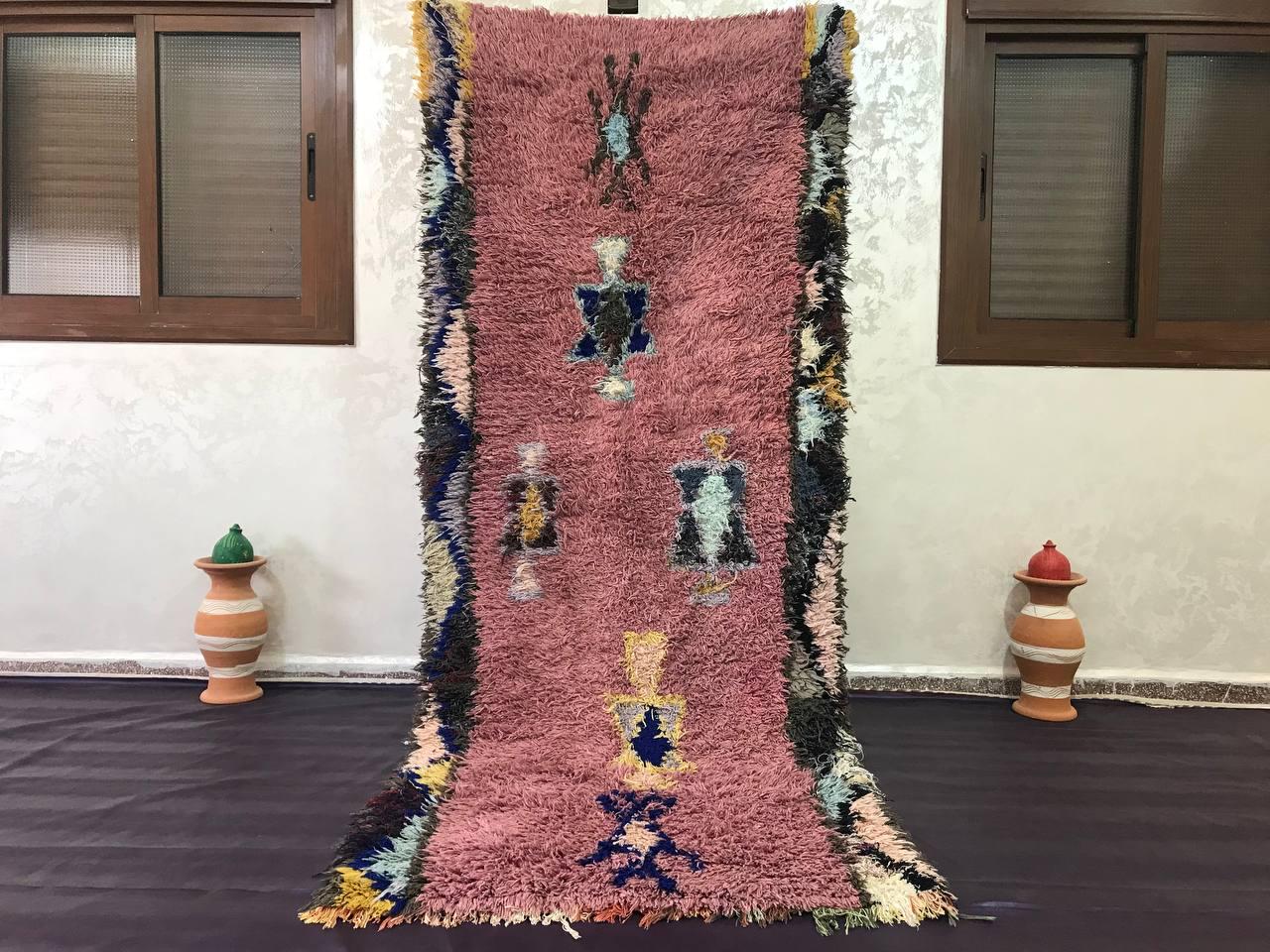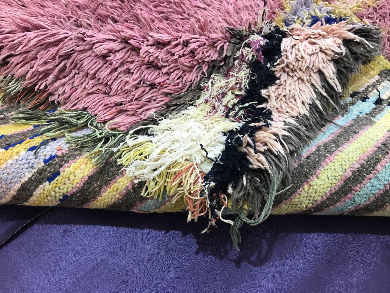 Consider adding a touch of ethnic presence to your home décor. This gorgeous hand-woven rug can be the ideal addition to your casual seating area. it is made out of 100% cotton. If you are looking for rugs to your home or showroom, nothing can be better than a Boujad Rug. Boujad rugs are traditionally hand-woven by women with natural and soft wool, featuring bright red, pinks, mauve, red, or orange backgrounds, along with irregular geometric patterns reflecting the artistic blend of Arabic and Berber cultures in Morocco. The colors are made from the natural dyes of flowers, henna, leaves, and berries. These rugs go perfectly well with all interior styles, including Traditional, Bohemian, Minimalist, Modern, and Scandinavian, which makes it the best choice for your needs. This unique, rare artistic handmade rug has also been featured on the cover of the world's leading home decoration magazines. Due to its handmade nature, every rug is different and unique.