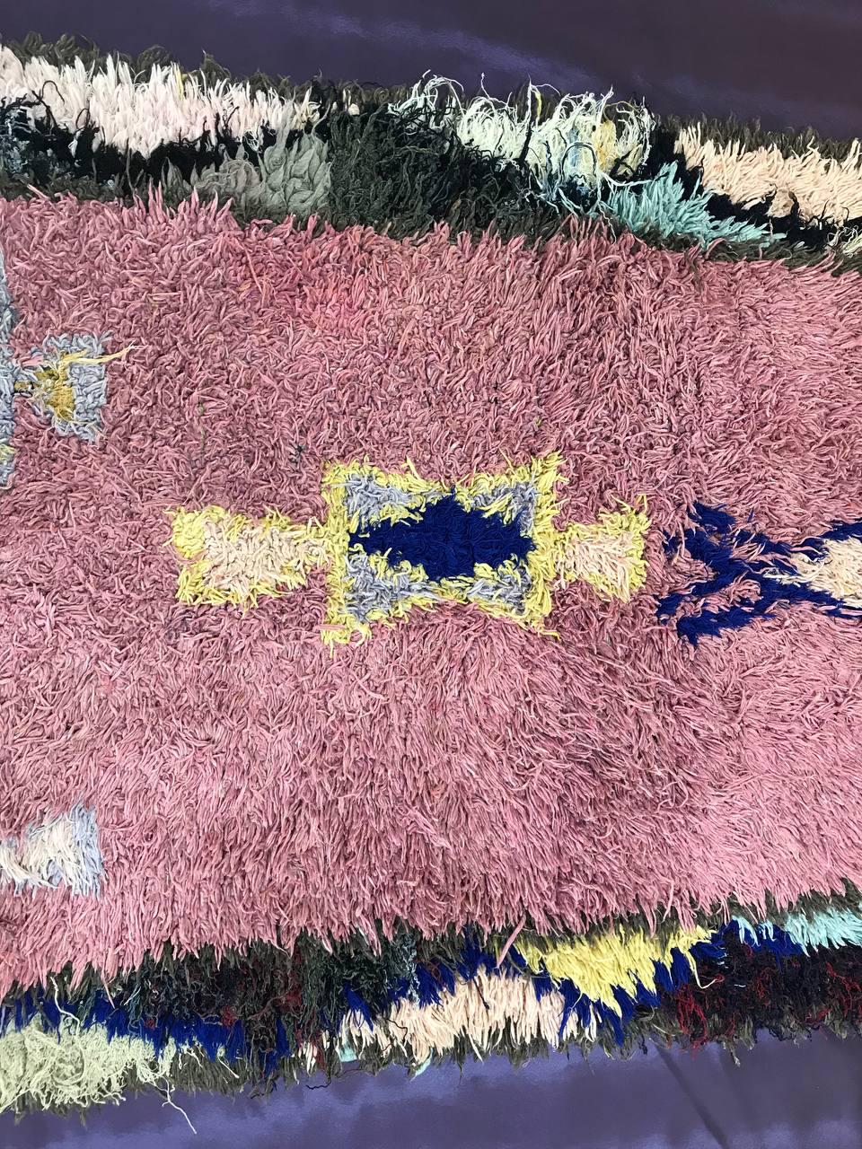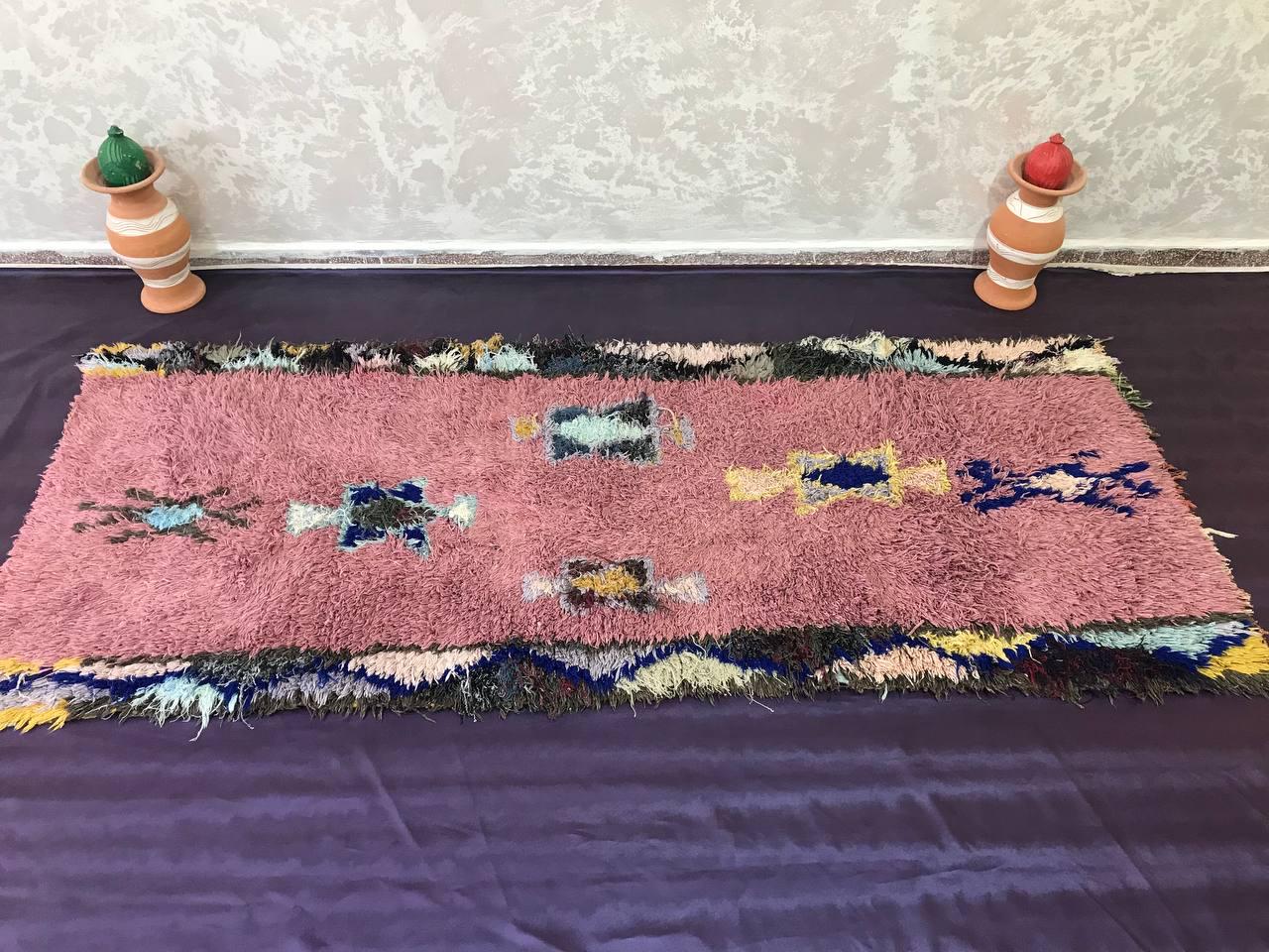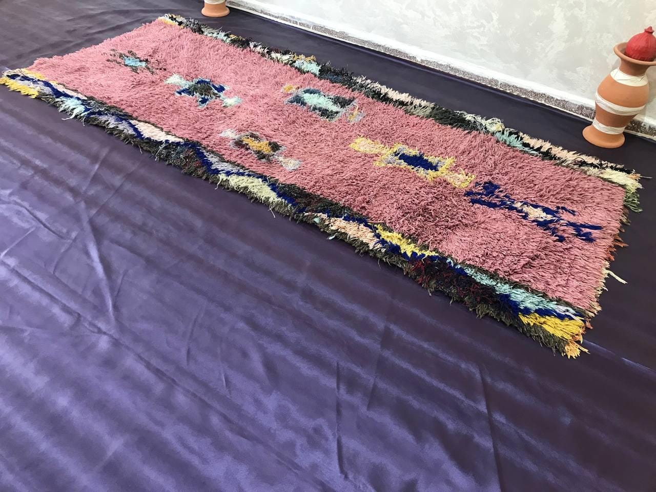 Handwoven boucherouite Moroccan Rug Runner: Pink Boujaad Style 8,2x3,3 ft