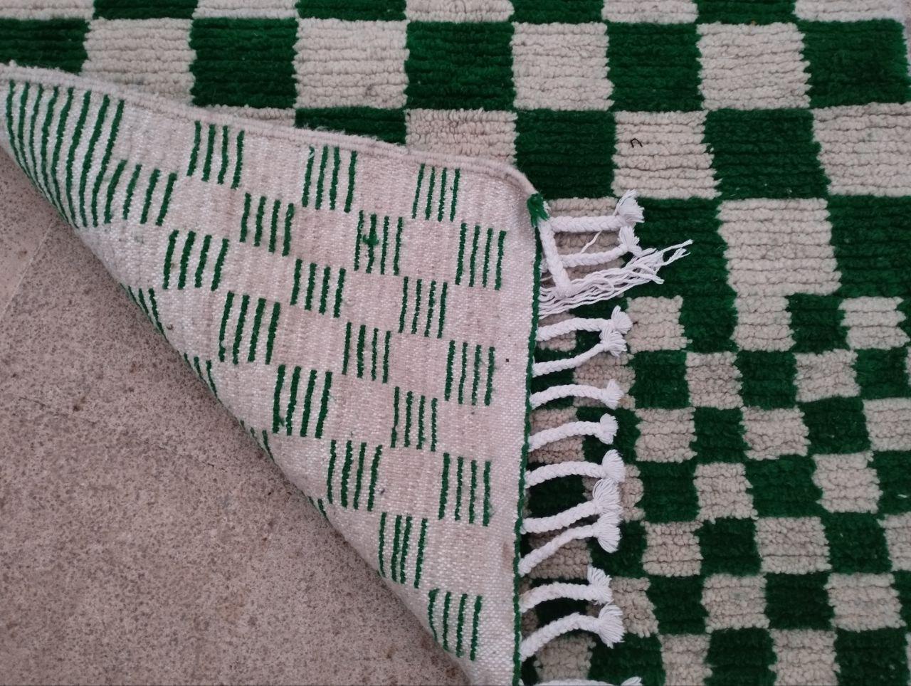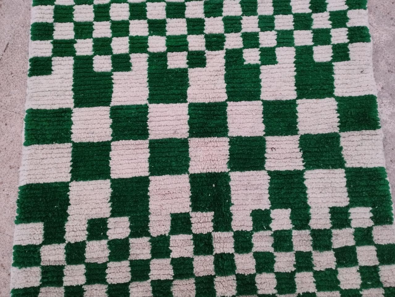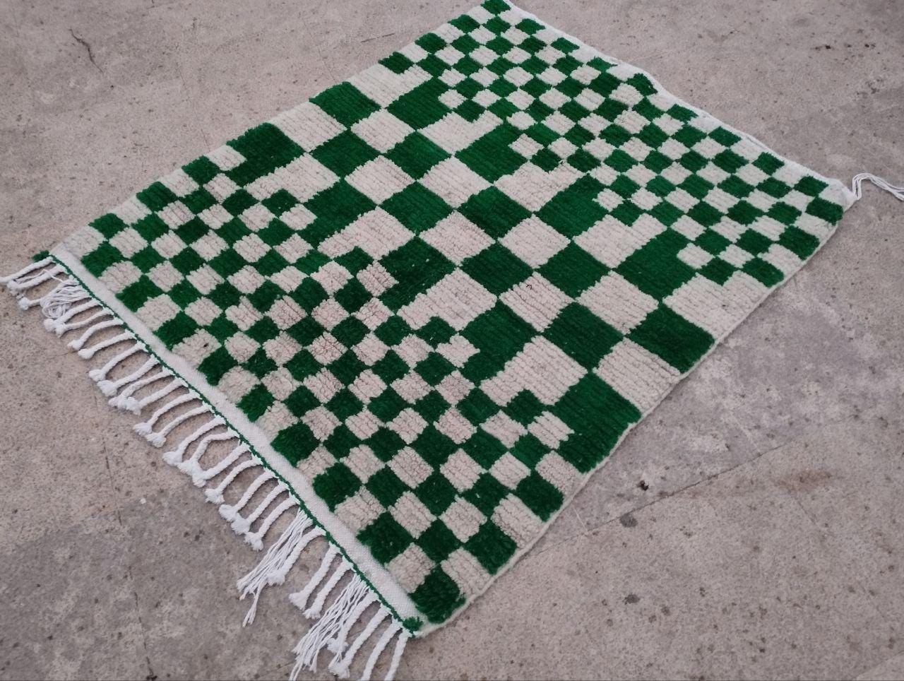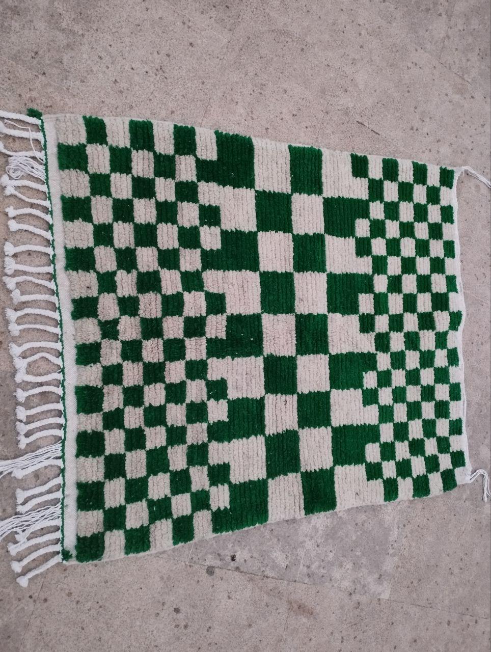 Handmade checkred Wool green Rug: Bohemian green Abstract Design checkred