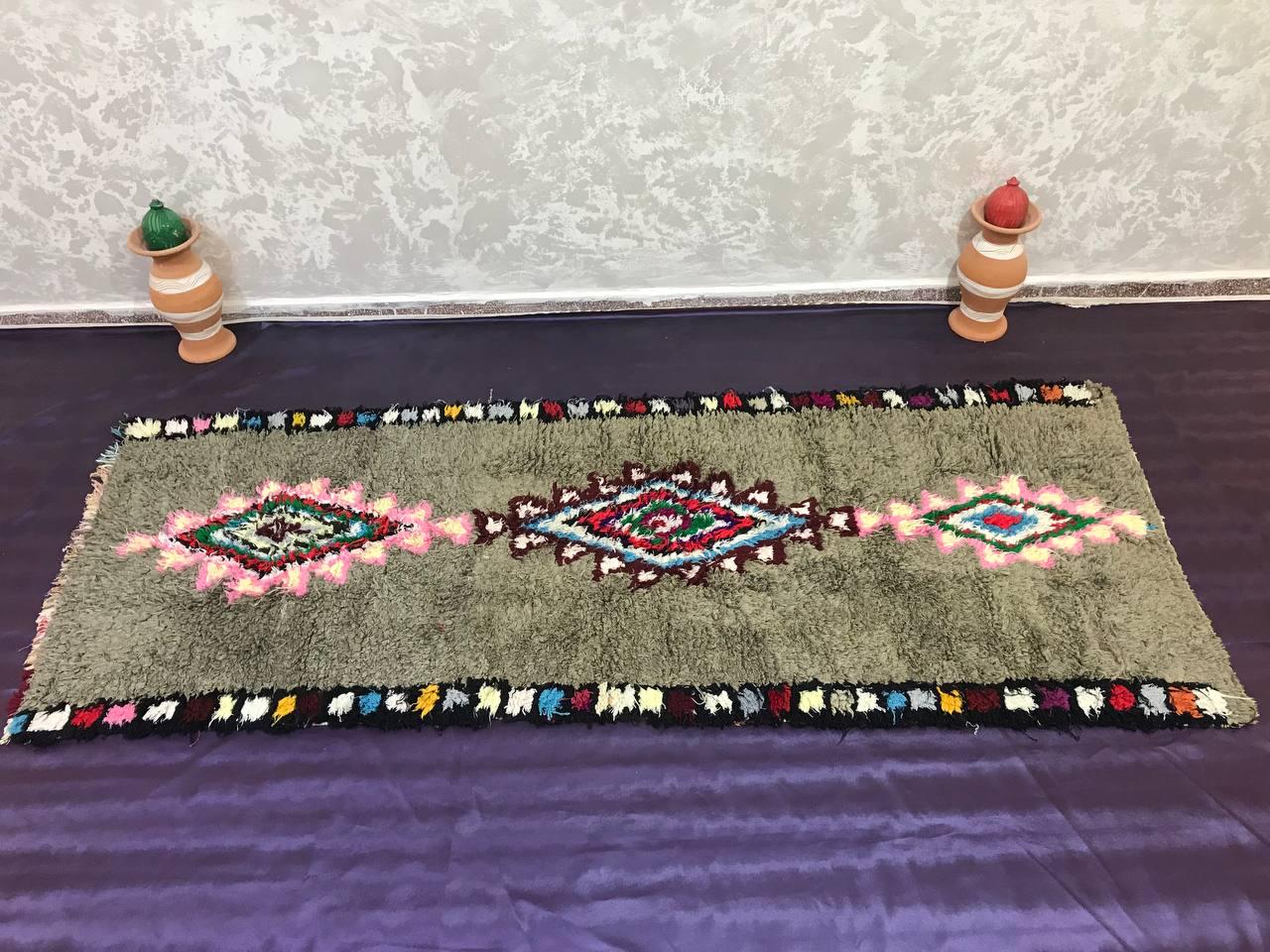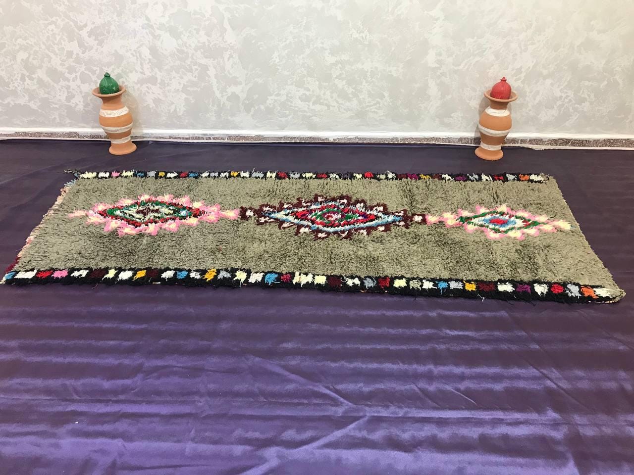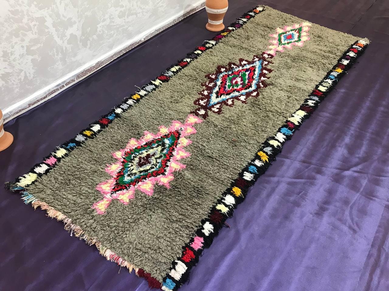 💜💜💜 ** If you have any questions please do not hesitate to contact us. We will be happy to respond within minutes. Handmade Cotton Boucherouite Runner Rug: Moroccan Berber Style (8,2x3 Ft / 247x 94cm)