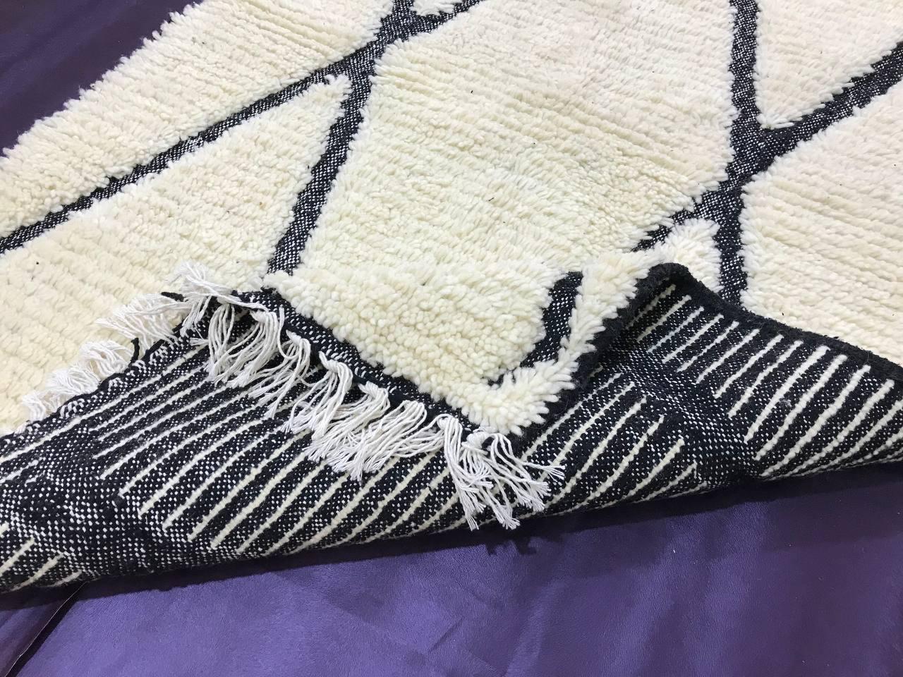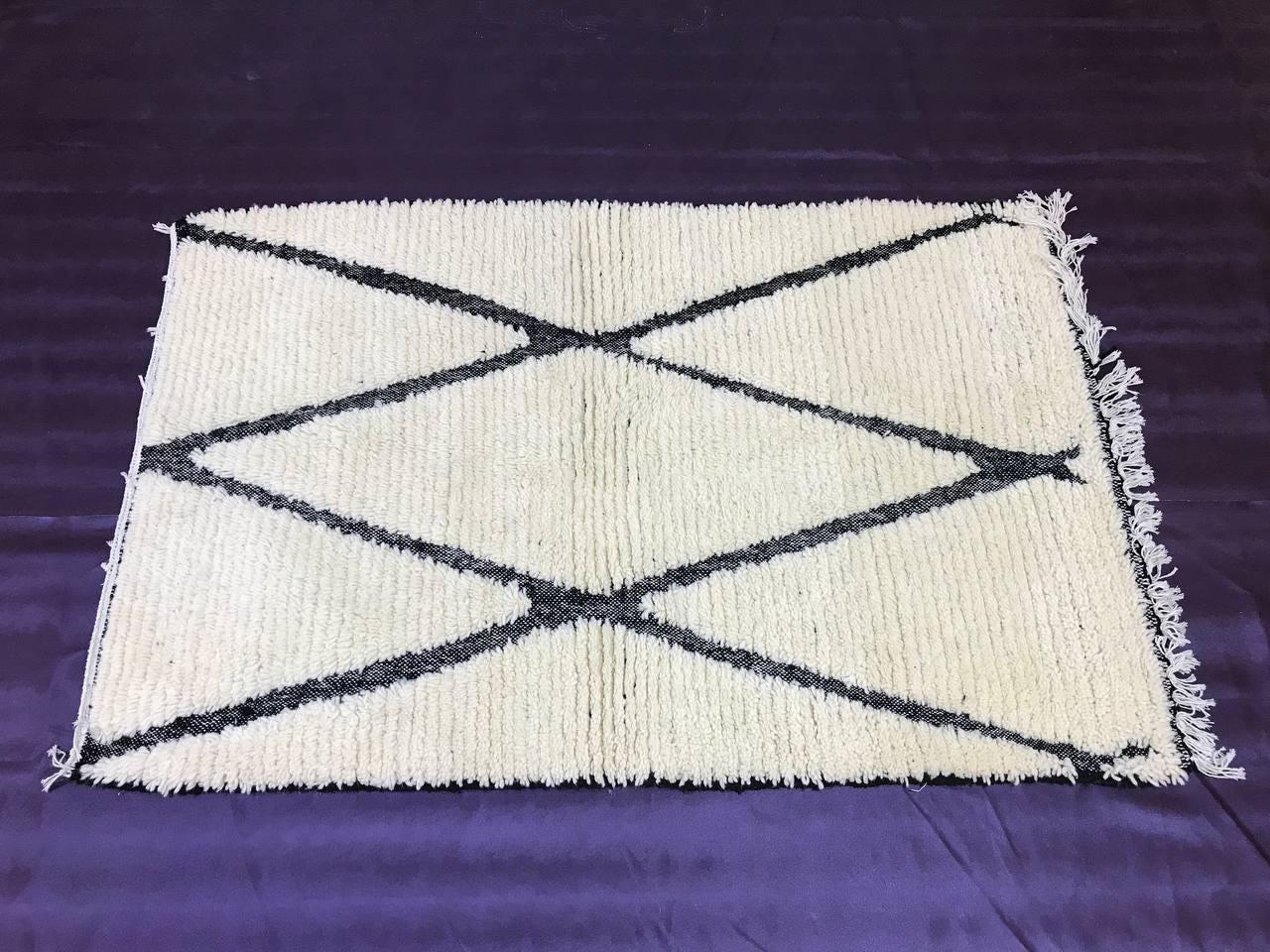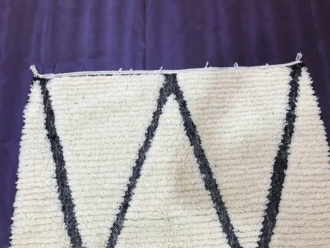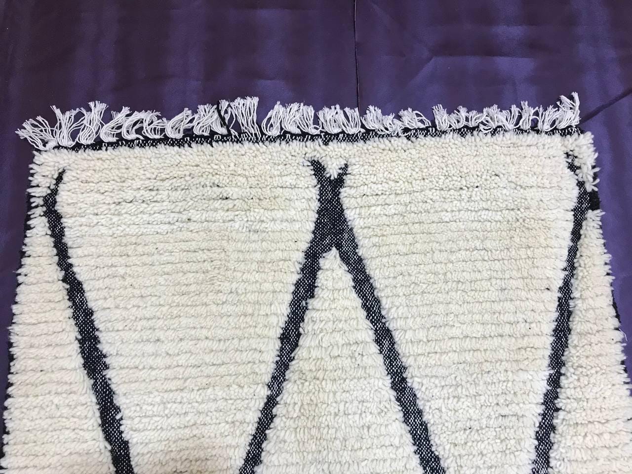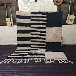 A Moroccan Berber Colorful rug is a traditional handwoven floor covering that originates from the indigenous Berber people of Morocco. These rugs are known for their intricate patterns and bold, geometric designs, which are created using a variety of natural dyes and High-quality Wool. Moroccan boujad rugs are versatile and can be used to add a touch of bohemian chic to any room, from a living room or bedroom to a home office or entryway. They are durable and easy to maintain, making them a practical choice for high-traffic areas. Whether you're looking to add a pop of color to your space or create a warm and welcoming atmosphere, a Moroccan Berber rug is a great choice. 📌 Shipping: insured, trackable, Fast, and FREE Worldwide by FedEx or DHL (2 to 5 days delivery). ❖ Cleaning: all rugs are carefully cleaned before shipping. ❖ Colors: Please take a look at the pictures. ❖ Texture: Moroccan / soft / Shag. ❖ Technique: Hand-Knotted ❖ Construction: Handmade ❖ Location: Indoor Use Only ❖ Material: Your order is made entirely by hand from natural wool, which means there will be natural (and beautiful) variations in pattern and color. Wool shrinks. ❖ Pattern: Because the product is handcrafted, the pattern and Colors may vary slightly from one piece to another. ❖ Size: While we try our best to ensure consistent sizing, it is possible for final sizes to vary by a few inches more or less. ❖ Tassels: One side is the Traditional way of making the rugs. 📌Ships tightly rolled in a protective bag. Any slight creasing will disappear within a few days. Shedding loose fibers is normal with new rugs. Shedding will diminish with regular vacuuming. If you have any questions or queries, please feel free to contact me via messages. Hand-Knotted Moroccan Azilal Rug: Berber Wool, Black & White rug