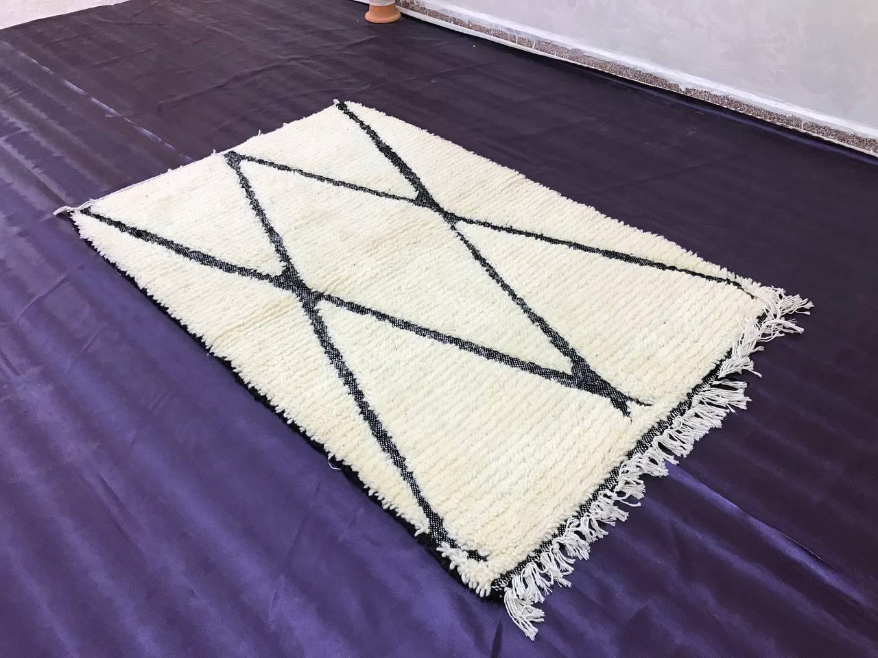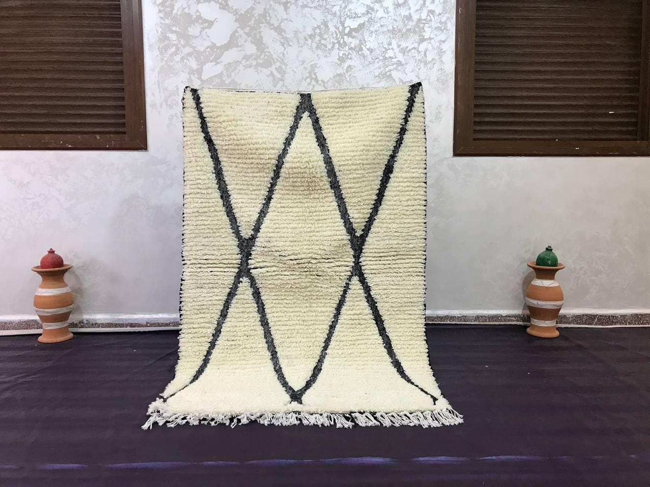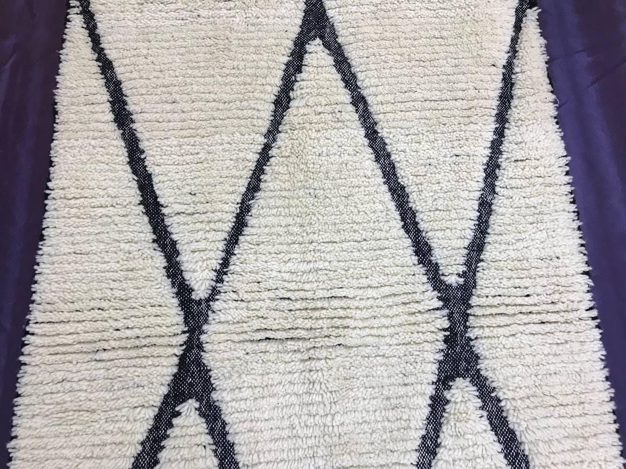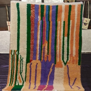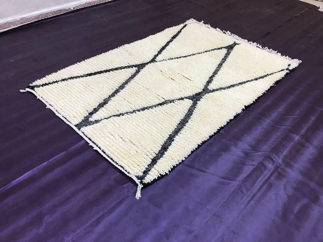 A Moroccan Berber Colorful rug is a traditional handwoven floor covering that originates from the indigenous Berber people of Morocco. These rugs are known for their intricate patterns and bold, geometric designs, which are created using a variety of natural dyes and High-quality Wool. Moroccan boujad rugs are versatile and can be used to add a touch of bohemian chic to any room, from a living room or bedroom to a home office or entryway. They are durable and easy to maintain, making them a practical choice for high-traffic areas. Whether you're looking to add a pop of color to your space or create a warm and welcoming atmosphere, a Moroccan Berber rug is a great choice. 📌 Shipping: insured, trackable, Fast, and FREE Worldwide by FedEx or DHL (2 to 5 days delivery). ❖ Cleaning: all rugs are carefully cleaned before shipping. ❖ Colors: Please take a look at the pictures. ❖ Texture: Moroccan / soft / Shag. ❖ Technique: Hand-Knotted ❖ Construction: Handmade ❖ Location: Indoor Use Only ❖ Material: Your order is made entirely by hand from natural wool, which means there will be natural (and beautiful) variations in pattern and color. Wool shrinks. ❖ Pattern: Because the product is handcrafted, the pattern and Colors may vary slightly from one piece to another. ❖ Size: While we try our best to ensure consistent sizing, it is possible for final sizes to vary by a few inches more or less. ❖ Tassels: One side is the Traditional way of making the rugs. 📌Ships tightly rolled in a protective bag. Any slight creasing will disappear within a few days. Shedding loose fibers is normal with new rugs. Shedding will diminish with regular vacuuming. If you have any questions or queries, please feel free to contact me via messages. Hand-Knotted Moroccan Azilal Rug: Berber Wool, Black & White rug