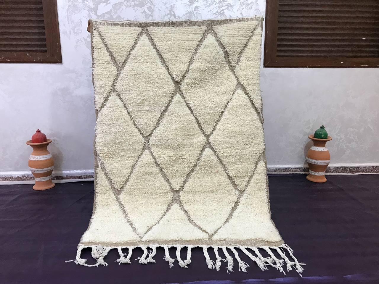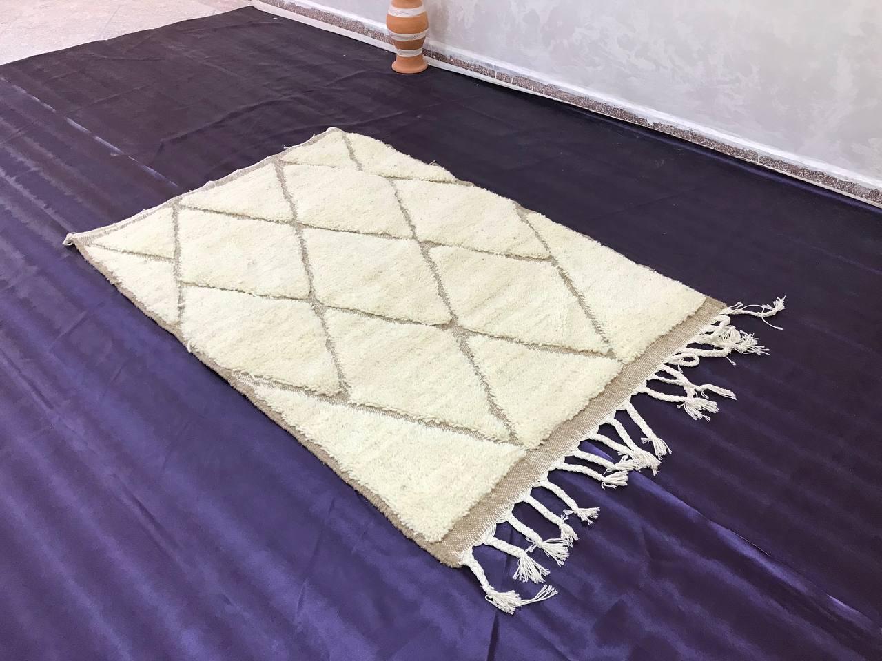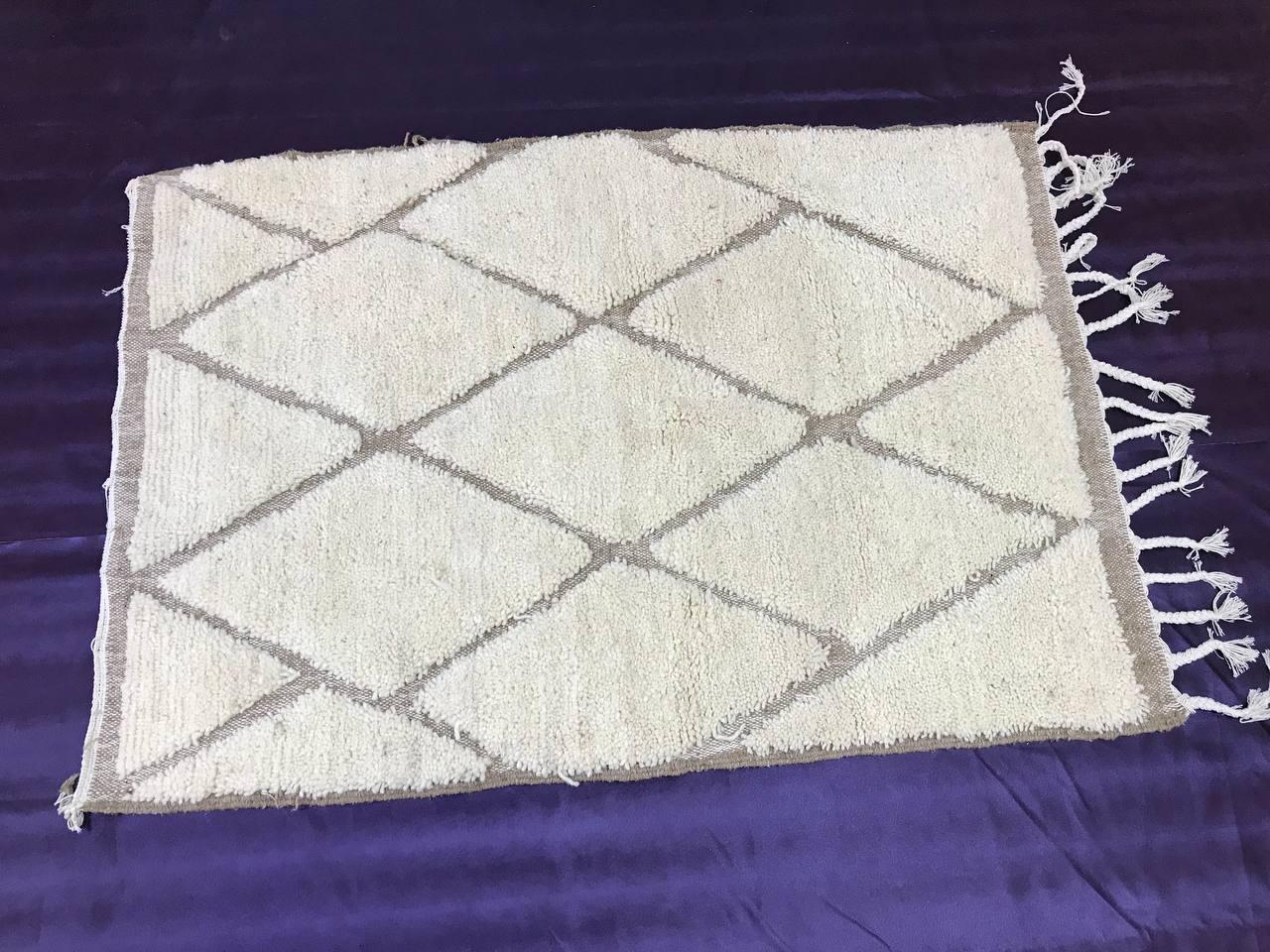 A Moroccan Berber Colorful rug is a traditional handwoven floor covering that originates from the indigenous Berber people of Morocco. These rugs are known for their intricate patterns and bold, geometric designs, which are created using a variety of natural dyes and High-quality Wool. Moroccan boujad rugs are versatile and can be used to add a touch of bohemian chic to any room, from a living room or bedroom to a home office or entryway. They are durable and easy to maintain, making them a practical choice for high-traffic areas. Whether you're looking to add a pop of color to your space or create a warm and welcoming atmosphere, a Moroccan Berber rug is a great choice. 📌 Shipping: insured, trackable, Fast, and FREE Worldwide by FedEx or DHL (2 to 5 days delivery). ❖ Cleaning: all rugs are carefully cleaned before shipping. ❖ Colors: Please take a look at the pictures. ❖ Texture: Moroccan / soft / Shag. ❖ Technique: Hand-Knotted ❖ Construction: Handmade ❖ Location: Indoor Use Only ❖ Material: Your order is made entirely by hand from natural wool, which means there will be natural (and beautiful) variations in pattern and color. Wool shrinks. ❖ Pattern: Because the product is handcrafted, the pattern and Colors may vary slightly from one piece to another. ❖ Size: While we try our best to ensure consistent sizing, it is possible for final sizes to vary by a few inches more or less. ❖ Tassels: One side is the Traditional way of making the rugs. 📌Ships tightly rolled in a protective bag. Any slight creasing will disappear within a few days. Shedding loose fibers is normal with new rugs. Shedding will diminish with regular vacuuming. If you have any questions or queries, please feel free to contact me via messages. Handmade White Wool Moroccan Rug: Diamond Azilal Carpet;Diamond color tapis