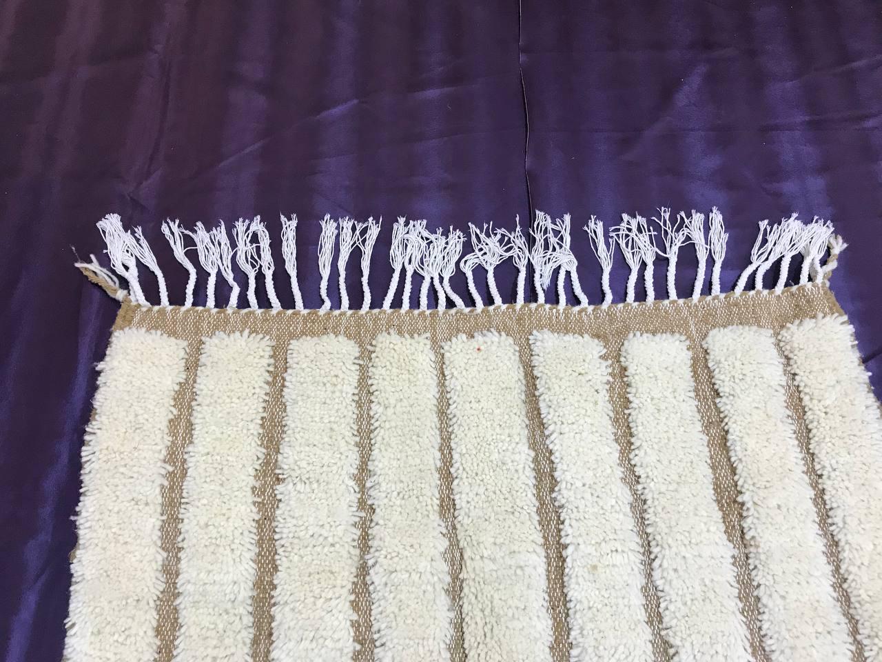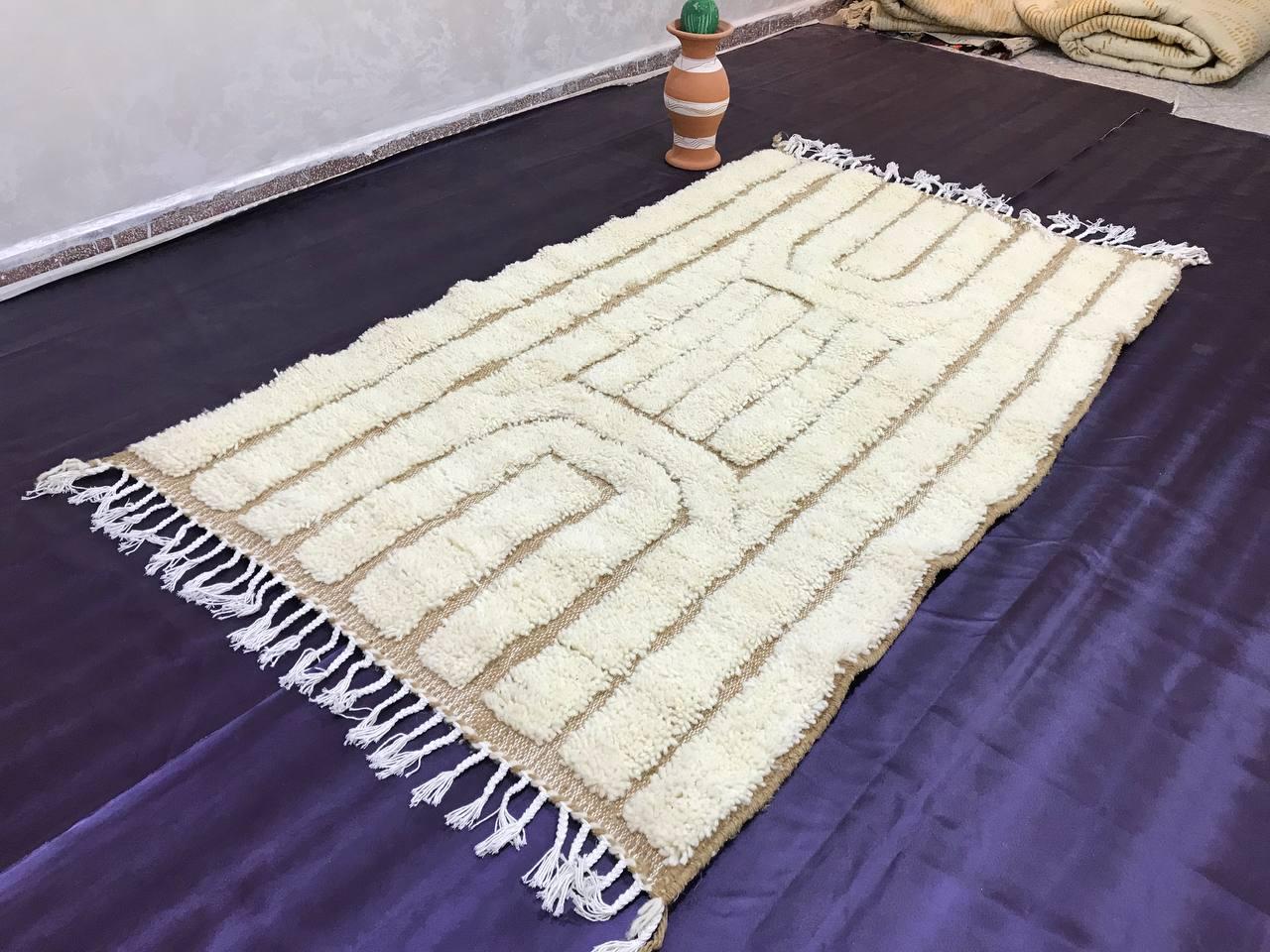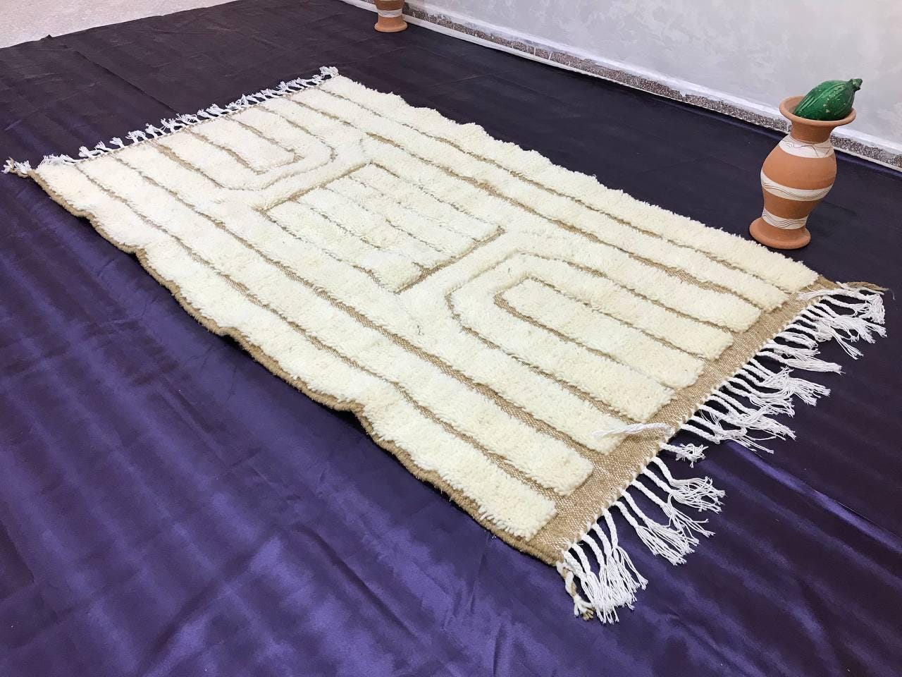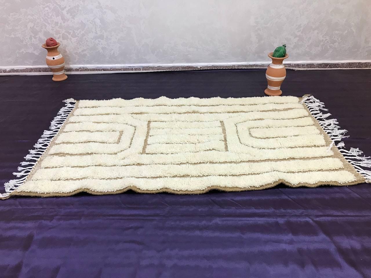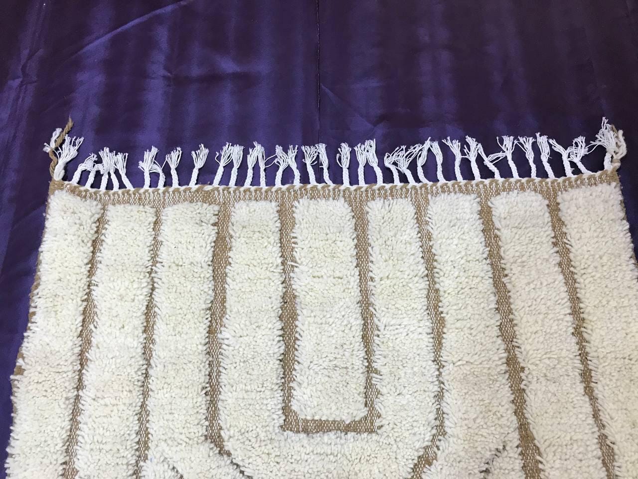 A Moroccan Berber Colorful rug is a traditional handwoven floor covering that originates from the indigenous Berber people of Morocco. These rugs are known for their intricate patterns and bold, geometric designs, which are created using a variety of natural dyes and High-quality Wool. Moroccan boujad rugs are versatile and can be used to add a touch of bohemian chic to any room, from a living room or bedroom to a home office or entryway. They are durable and easy to maintain, making them a practical choice for high-traffic areas. Whether you're looking to add a pop of color to your space or create a warm and welcoming atmosphere, a Moroccan Berber rug is a great choice. 📌 Shipping: insured, trackable, Fast, and FREE Worldwide by FedEx or DHL (2 to 5 days delivery). ❖ Cleaning: all rugs are carefully cleaned before shipping. ❖ Colors: Please take a look at the pictures. ❖ Texture: Moroccan / soft / Shag. ❖ Technique: Hand-Knotted ❖ Construction: Handmade ❖ Location: Indoor Use Only ❖ Material: Your order is made entirely by hand from natural wool, which means there will be natural (and beautiful) variations in pattern and color. Wool shrinks. ❖ Pattern: Because the product is handcrafted, the pattern and Colors may vary slightly from one piece to another. ❖ Size: While we try our best to ensure consistent sizing, it is possible for final sizes to vary by a few inches more or less. ❖ Tassels: One side is the Traditional way of making the rugs. 📌Ships tightly rolled in a protective bag. Any slight creasing will disappear within a few days. Shedding loose fibers is normal with new rugs. Shedding will diminish with regular vacuuming. If you have any questions or queries, please feel free to contact me via messages. Hand-Knotted White Wool Moroccan Rug: Berber Design