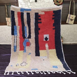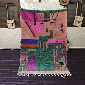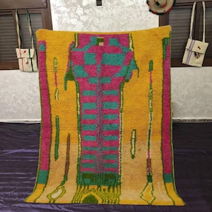 A Moroccan Berber Colorful rug is a traditional handwoven floor covering that originates from the indigenous Berber people of Morocco. These rugs are known for their intricate patterns and bold, geometric designs, which are created using a variety of natural dyes and High-quality Wool. Moroccan boujad rugs are versatile and can be used to add a touch of bohemian chic to any room, from a living room or bedroom to a home office or entryway. They are durable and easy to maintain, making them a practical choice for high-traffic areas. Whether you're looking to add a pop of color to your space or create a warm and welcoming atmosphere, a Moroccan Berber rug is a great choice. 📌 Shipping: insured, trackable, Fast, and FREE Worldwide by FedEx or DHL (2 to 5 days delivery). ❖ Cleaning: all rugs are carefully cleaned before shipping. ❖ Colors: Please take a look at the pictures. ❖ Texture: Moroccan / soft / Shag. ❖ Technique: Hand-Knotted ❖ Construction: Handmade ❖ Location: Indoor Use Only ❖ Material: Your order is made entirely by hand from natural wool, which means there will be natural (and beautiful) variations in pattern and color. Wool shrinks. ❖ Pattern: Because the product is handcrafted, the pattern and Colors may vary slightly from one piece to another. ❖ Size: While we try our best to ensure consistent sizing, it is possible for final sizes to vary by a few inches more or less. ❖ Tassels: One side is the Traditional way of making the rugs. 📌Ships tightly rolled in a protective bag. Any slight creasing will disappear within a few days. Shedding loose fibers is normal with new rugs. Shedding will diminish with regular vacuuming. If you have any questions or queries, please feel free to contact me via messages.