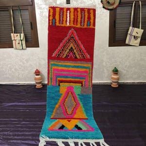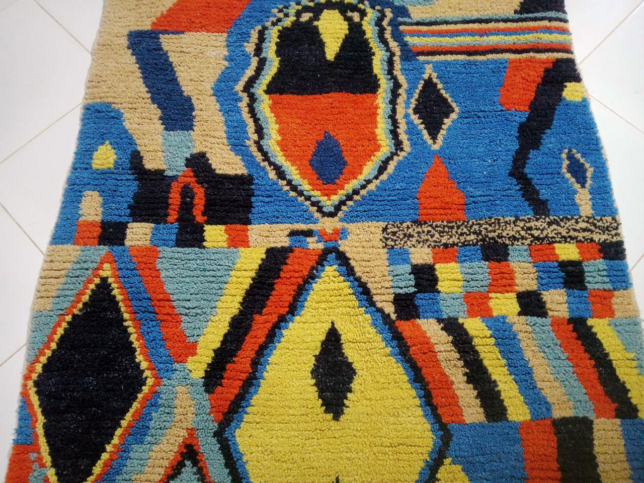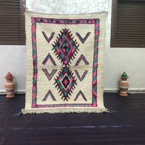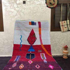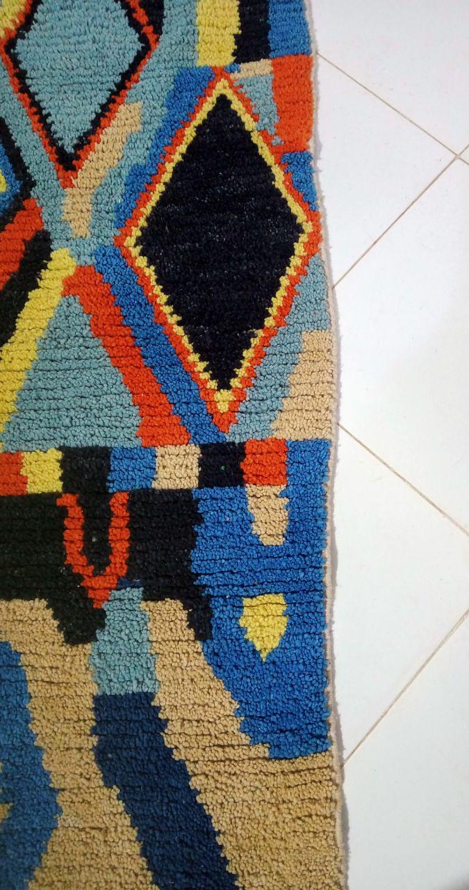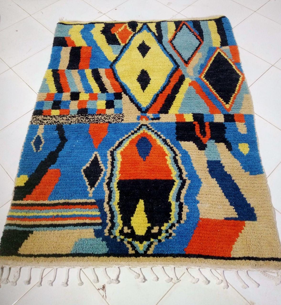 A Moroccan Berber Colorful rug is a traditional handwoven floor covering that originates from the indigenous Berber people of Morocco. These rugs are known for their intricate patterns and bold, geometric designs, which are created using a variety of natural dyes and High-quality Wool. Moroccan boujad rugs are versatile and can be used to add a touch of bohemian chic to any room, from a living room or bedroom to a home office or entryway. They are durable and easy to maintain, making them a practical choice for high-traffic areas. Whether you're looking to add a pop of color to your space or create a warm and welcoming atmosphere, a Moroccan Berber rug is a great choice.