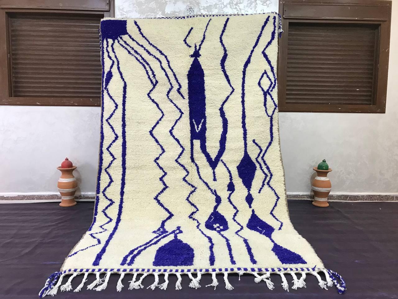 Hand-Knotted boujaad Moroccan Wool Rug: Royal Blue & White High Pile rug boujaad,rugs 4m x 5m