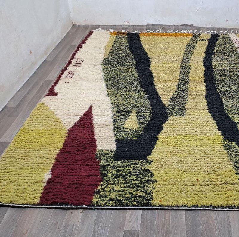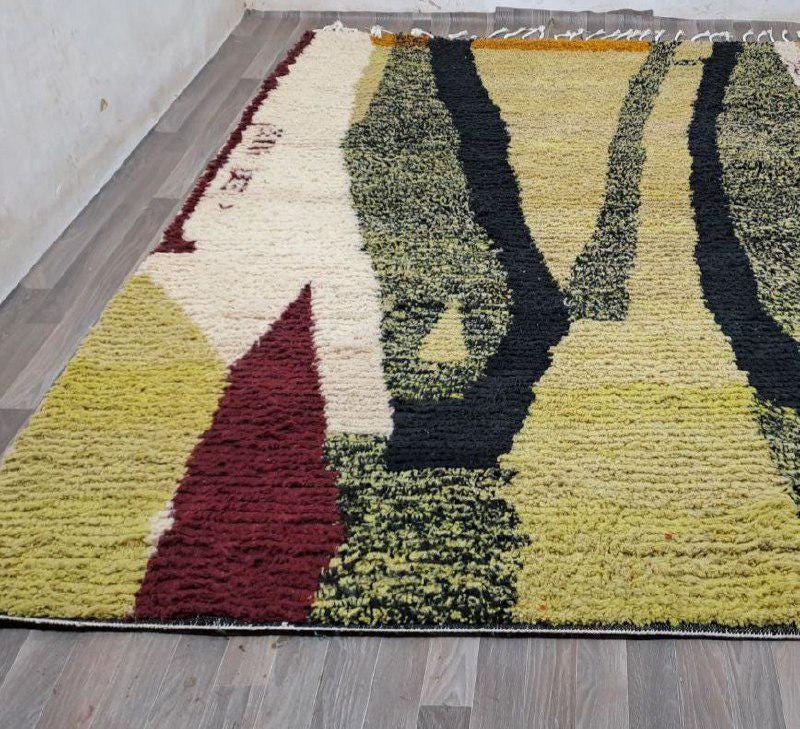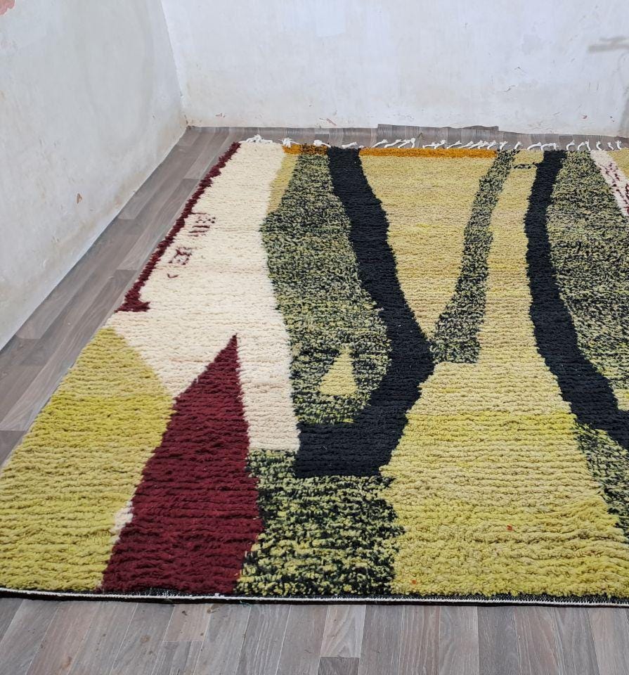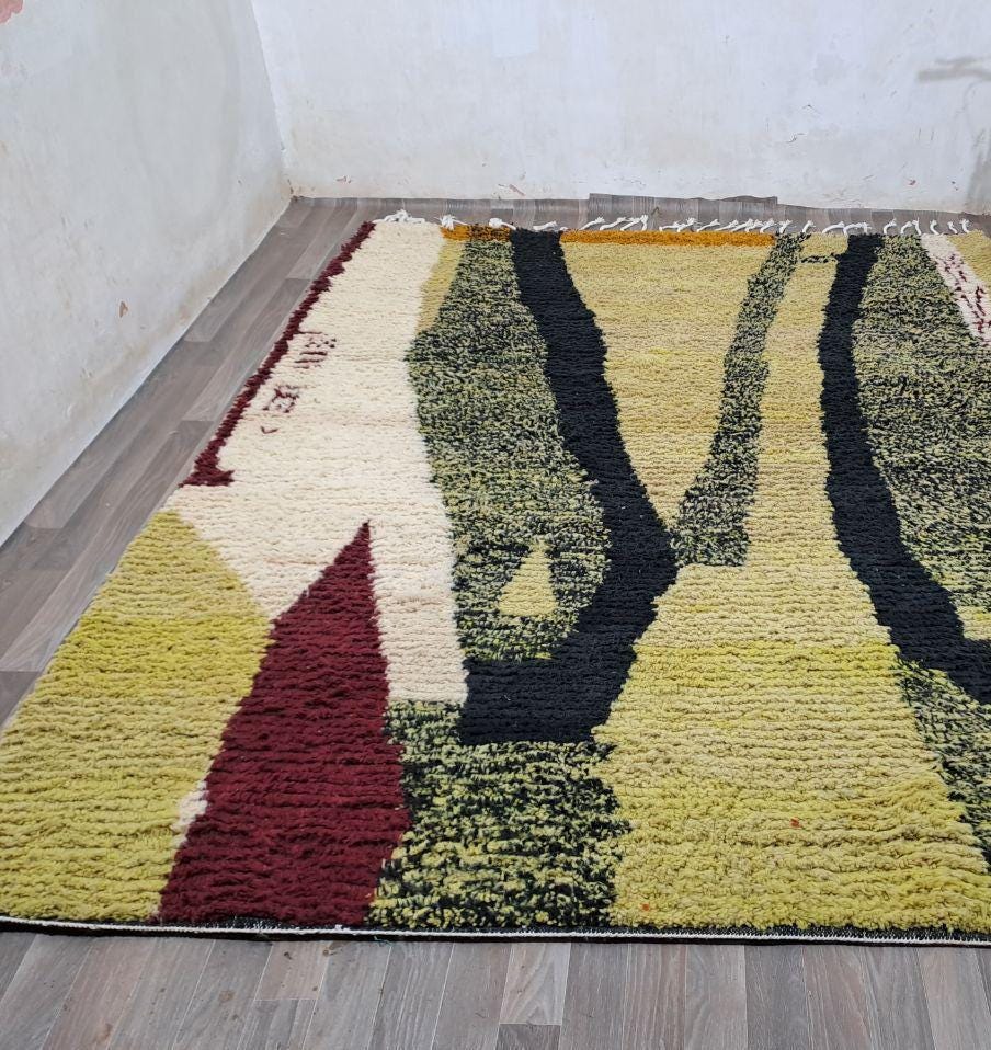 A Moroccan Berber Colorful rug is a traditional handwoven floor covering that originates from the indigenous Berber people of Morocco. These rugs are known for their intricate patterns and bold, geometric designs, which are created using a variety of natural dyes and High-quality Wool. Moroccan boujad rugs are versatile and can be used to add a touch of bohemian chic to any room, from a living room or bedroom to a home office or entryway. They are durable and easy to maintain, making them a practical choice for high-traffic areas. Whether you're looking to add a pop of color to your space or create a warm and welcoming atmosphere, a Moroccan Berber rug is a great choice.