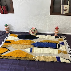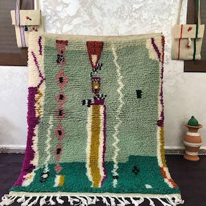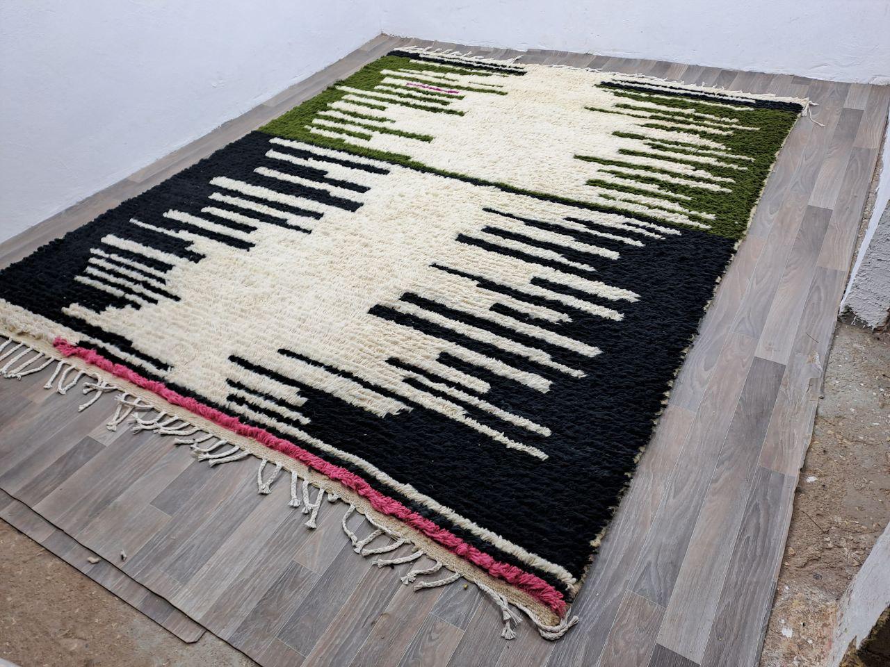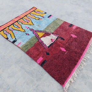 A Moroccan Berber Colorful rug is a traditional handwoven floor covering that originates from the indigenous Berber people of Morocco. These rugs are known for their intricate patterns and bold, geometric designs, which are created using a variety of natural dyes and High-quality Wool. Moroccan boujad rugs are versatile and can be used to add a touch of bohemian chic to any room, from a living room or bedroom to a home office or entryway. They are durable and easy to maintain, making them a practical choice for high-traffic areas. Whether you're looking to add a pop of color to your space or create a warm and welcoming atmosphere, a Moroccan Berber rug is a great choice.