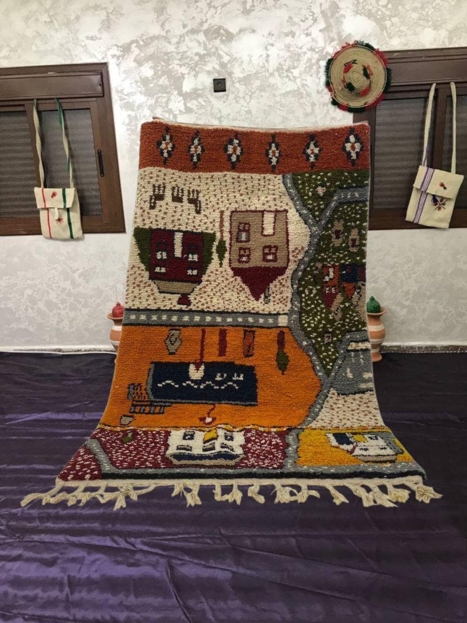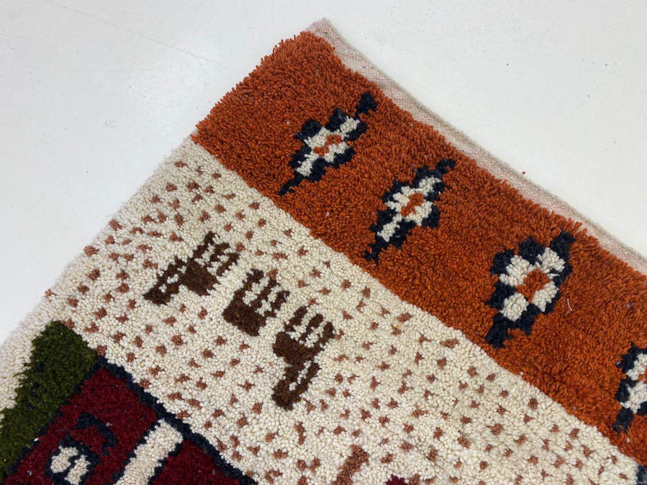 A Moroccan Berber Colorful rug is a traditional handwoven floor covering that originates from the indigenous Berber people of Morocco. These rugs are known for their intricate patterns and bold, geometric designs, which are created using a variety of natural dyes and High-quality Wool. Moroccan boujad rugs are versatile and can be used to add a touch of bohemian chic to any room, from a living room or bedroom to a home office or entryway. They are durable and easy to maintain, making them a practical choice for high-traffic areas. Whether you're looking to add a pop of color to your space or create a warm and welcoming atmosphere, a Moroccan Berber rug is a great choice. 📌 Shipping: insured, trackable, Fast, and FREE Worldwide by FedEx or DHL (2 to 5 days delivery). ❖ Cleaning: all rugs are carefully cleaned before shipping. ❖ Colors: Please take a look at the pictures. ❖ Texture: Moroccan / soft / Shag. ❖ Technique: Hand-Knotted ❖ Construction: Handmade ❖ Location: Indoor Use Only ❖ Material: Your order is made entirely by hand from natural wool, which means there will be natural (and beautiful) variations in pattern and color. Wool shrinks. ❖ Pattern: Because the product is handcrafted, the pattern and Colors may vary slightly from one piece to another. ❖ Size: While we try our best to ensure consistent sizing, it is possible for final sizes to vary by a few inches more or less. ❖ Tassels: One side is the Traditional way of making the rugs. 📌Ships tightly rolled in a protective bag. Any slight creasing will disappear within a few days. Shedding loose fibers is normal with new rugs. Shedding will diminish with regular vacuuming. If you have any questions or queries, please feel free to contact me via messages. bouhemian decor Large Bright Rug,Amazing Berber Rug Multicolored Carpet,artisana Original Multicolor Rug