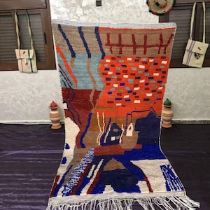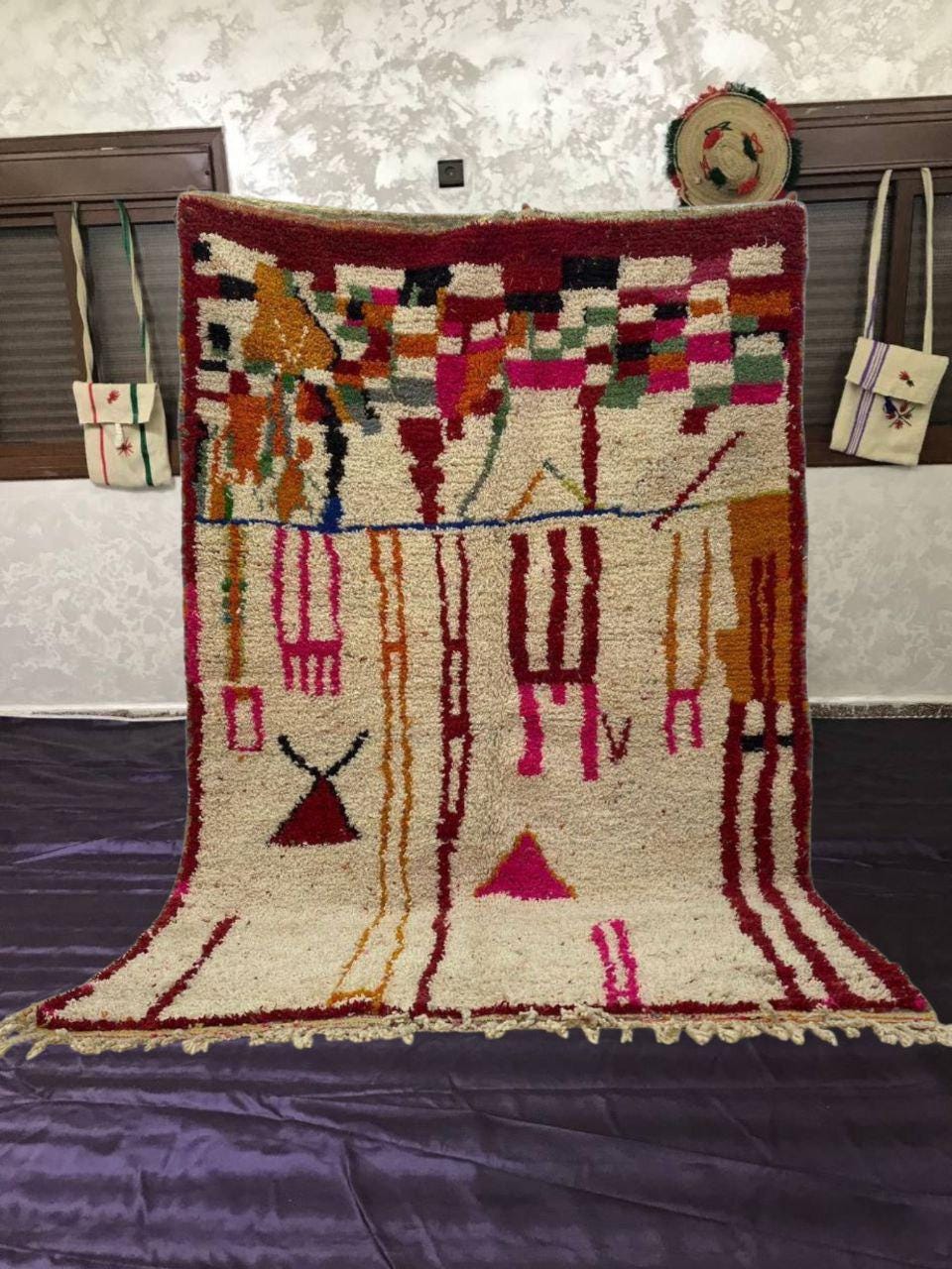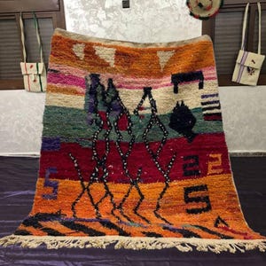 A Moroccan Berber Colorful rug is a traditional handwoven floor covering that originates from the indigenous Berber people of Morocco. These rugs are known for their intricate patterns and bold, geometric designs, which are created using a variety of natural dyes and High-quality Wool. Moroccan boujad rugs are versatile and can be used to add a touch of bohemian chic to any room, from a living room or bedroom to a home office or entryway. They are durable and easy to maintain, making them a practical choice for high-traffic areas. Whether you're looking to add a pop of color to your space or create a warm and welcoming atmosphere, a Moroccan Berber rug is a great choice. 📌 Shipping: insured, trackable, Fast, and FREE Worldwide by FedEx or DHL (2 to 5 days delivery). ❖ Cleaning: all rugs are carefully cleaned before shipping. ❖ Colors: Please take a look at the pictures. ❖ Texture: Moroccan / soft / Shag. ❖ Technique: Hand-Knotted ❖ Construction: Handmade ❖ Location: Indoor Use Only ❖ Material: Your order is made entirely by hand from natural wool, which means there will be natural (and beautiful) variations in pattern and color. Wool shrinks. ❖ Pattern: Because the product is handcrafted, the pattern and Colors may vary slightly from one piece to another. ❖ Size: While we try our best to ensure consistent sizing, it is possible for final sizes to vary by a few inches more or less. ❖ Tassels: One side is the Traditional way of making the rugs. 📌Ships tightly rolled in a protective bag. Any slight creasing will disappear within a few days. Shedding loose fibers is normal with new rugs. Shedding will diminish with regular vacuuming. If you have any questions or queries, please feel free to contact me via messages. Original Multicolor Rug boujaad moccan,carpet handmade wool for living room,rug boujaad colourful rugaziz