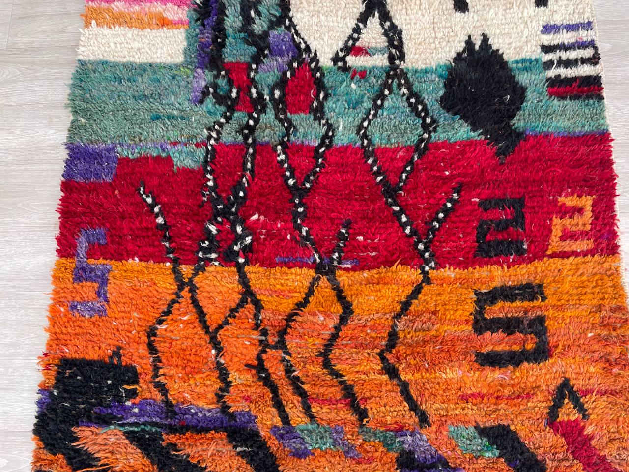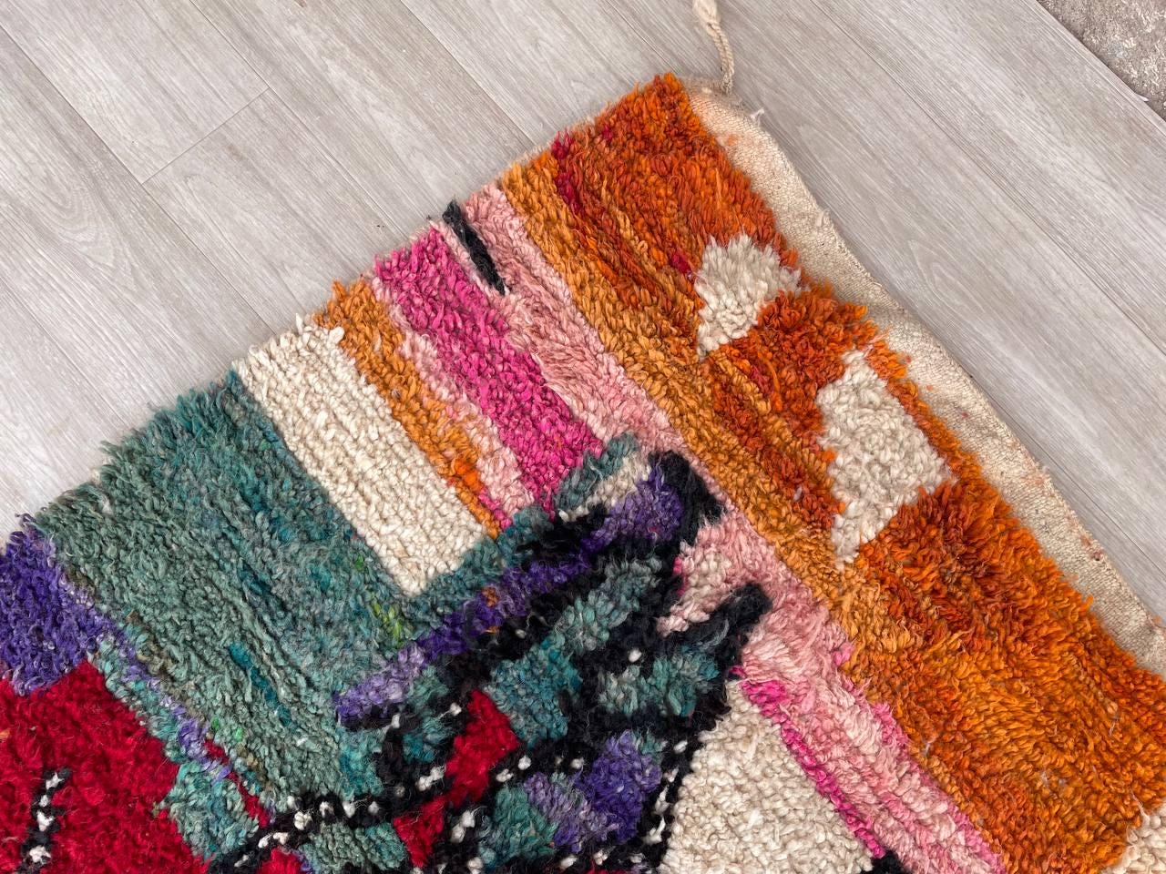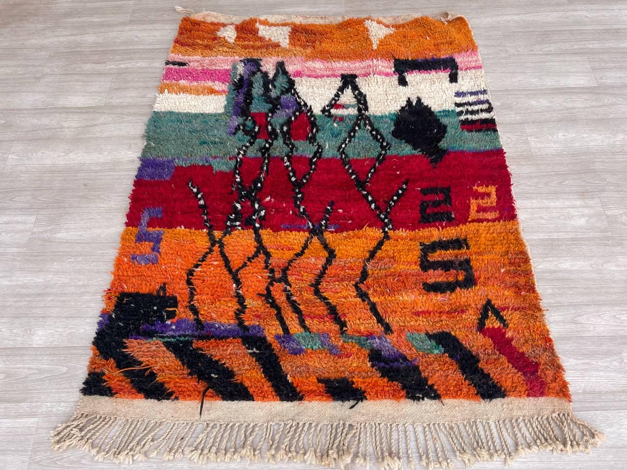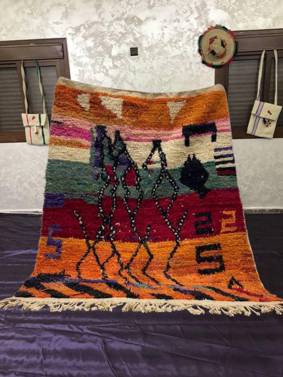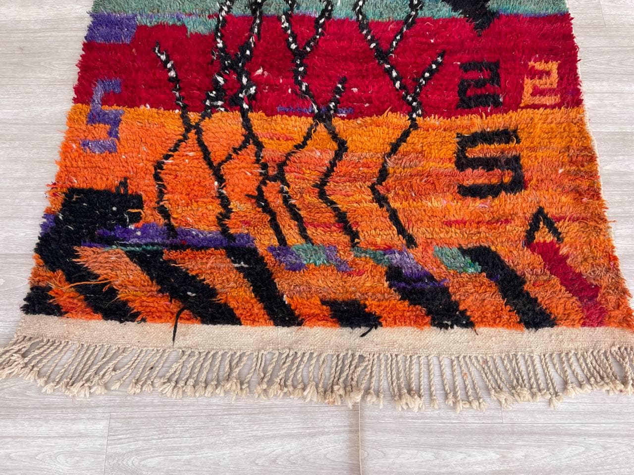 A Moroccan Berber Colorful rug is a traditional handwoven floor covering that originates from the indigenous Berber people of Morocco. These rugs are known for their intricate patterns and bold, geometric designs, which are created using a variety of natural dyes and High-quality Wool. Moroccan boujad rugs are versatile and can be used to add a touch of bohemian chic to any room, from a living room or bedroom to a home office or entryway. They are durable and easy to maintain, making them a practical choice for high-traffic areas. Whether you're looking to add a pop of color to your space or create a warm and welcoming atmosphere, a Moroccan Berber rug is a great choice. 📌 Shipping: insured, trackable, Fast, and FREE Worldwide by FedEx or DHL (2 to 5 days delivery). ❖ Cleaning: all rugs are carefully cleaned before shipping. ❖ Colors: Please take a look at the pictures. ❖ Texture: Moroccan / soft / Shag. ❖ Technique: Hand-Knotted ❖ Construction: Handmade ❖ Location: Indoor Use Only ❖ Material: Your order is made entirely by hand from natural wool, which means there will be natural (and beautiful) variations in pattern and color. Wool shrinks. ❖ Pattern: Because the product is handcrafted, the pattern and Colors may vary slightly from one piece to another. ❖ Size: While we try our best to ensure consistent sizing, it is possible for final sizes to vary by a few inches more or less. ❖ Tassels: One side is the Traditional way of making the rugs. 📌Ships tightly rolled in a protective bag. Any slight creasing will disappear within a few days. Shedding loose fibers is normal with new rugs. Shedding will diminish with regular vacuuming. If you have any questions or queries, please feel free to contact me via messages. Beni Ouarain rug moroccan orange,moroccan rug 2x4 wool berber Shag rug,azilal teppich Custom Morrocan Rug
