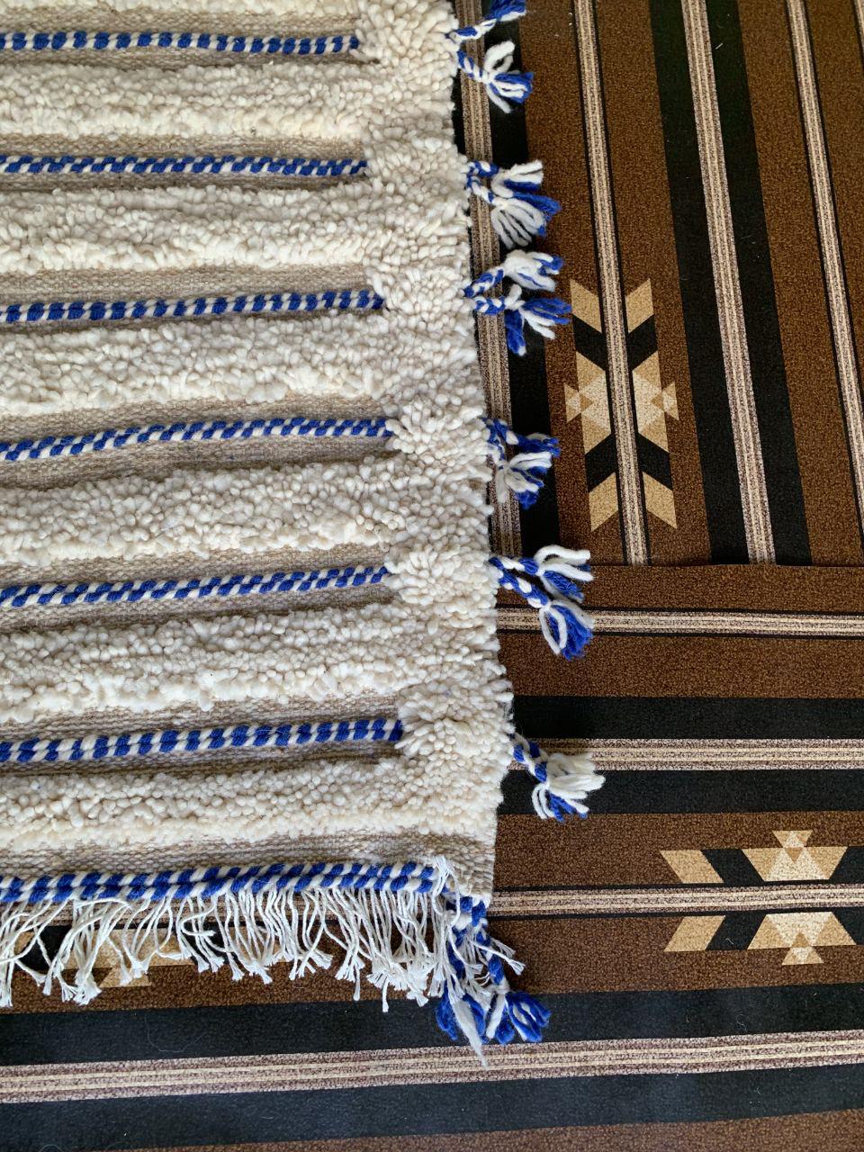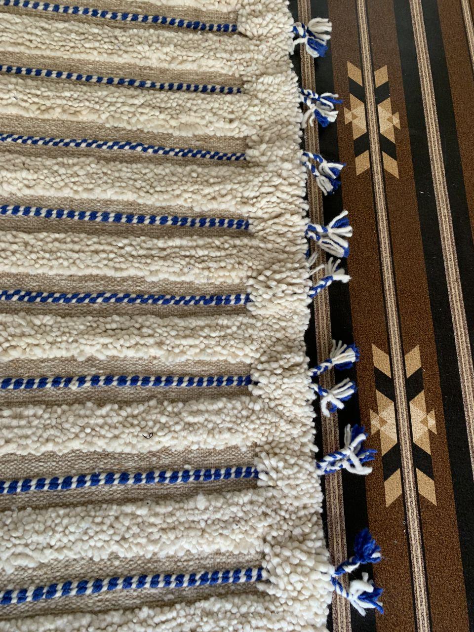A Moroccan Berber Colorful rug is a traditional handwoven floor covering that originates from the indigenous Berber people of Morocco. These rugs are known for their intricate patterns and bold, geometric designs, which are created using a variety of natural dyes and High-quality Wool. Moroccan boujad rugs are versatile and can be used to add a touch of bohemian chic to any room, from a living room or bedroom to a home office or entryway. They are durable and easy to maintain, making them a practical choice for high-traffic areas. Whether you're looking to add a pop of color to your space or create a warm and welcoming atmosphere, a Moroccan Berber rug is a great choice. 📌 Shipping: insured, trackable, Fast, and FREE Worldwide by FedEx or DHL (2 to 5 days delivery). ❖ Cleaning: all rugs are carefully cleaned before shipping. ❖ Colors: Please take a look at the pictures. ❖ Texture: Moroccan / soft / Shag. ❖ Technique: Hand-Knotted ❖ Construction: Handmade ❖ Location: Indoor Use Only ❖ Material: Your order is made entirely by hand from natural wool, which means there will be natural (and beautiful) variations in pattern and color. Wool shrinks. ❖ Pattern: Because the product is handcrafted, the pattern and Colors may vary slightly from one piece to another. ❖ Size: While we try our best to ensure consistent sizing, it is possible for final sizes to vary by a few inches more or less. ❖ Tassels: One side is the Traditional way of making the rugs. 📌Ships tightly rolled in a protective bag. Any slight creasing will disappear within a few days. Shedding loose fibers is normal with new rugs. Shedding will diminish with regular vacuuming. If you have any questions or queries, please feel free to contact me via messages. Custom Sized best Tassels selling carpet,Tassels rug moroccan rug wool white,handmade rug Tassels moroccan rugaziz