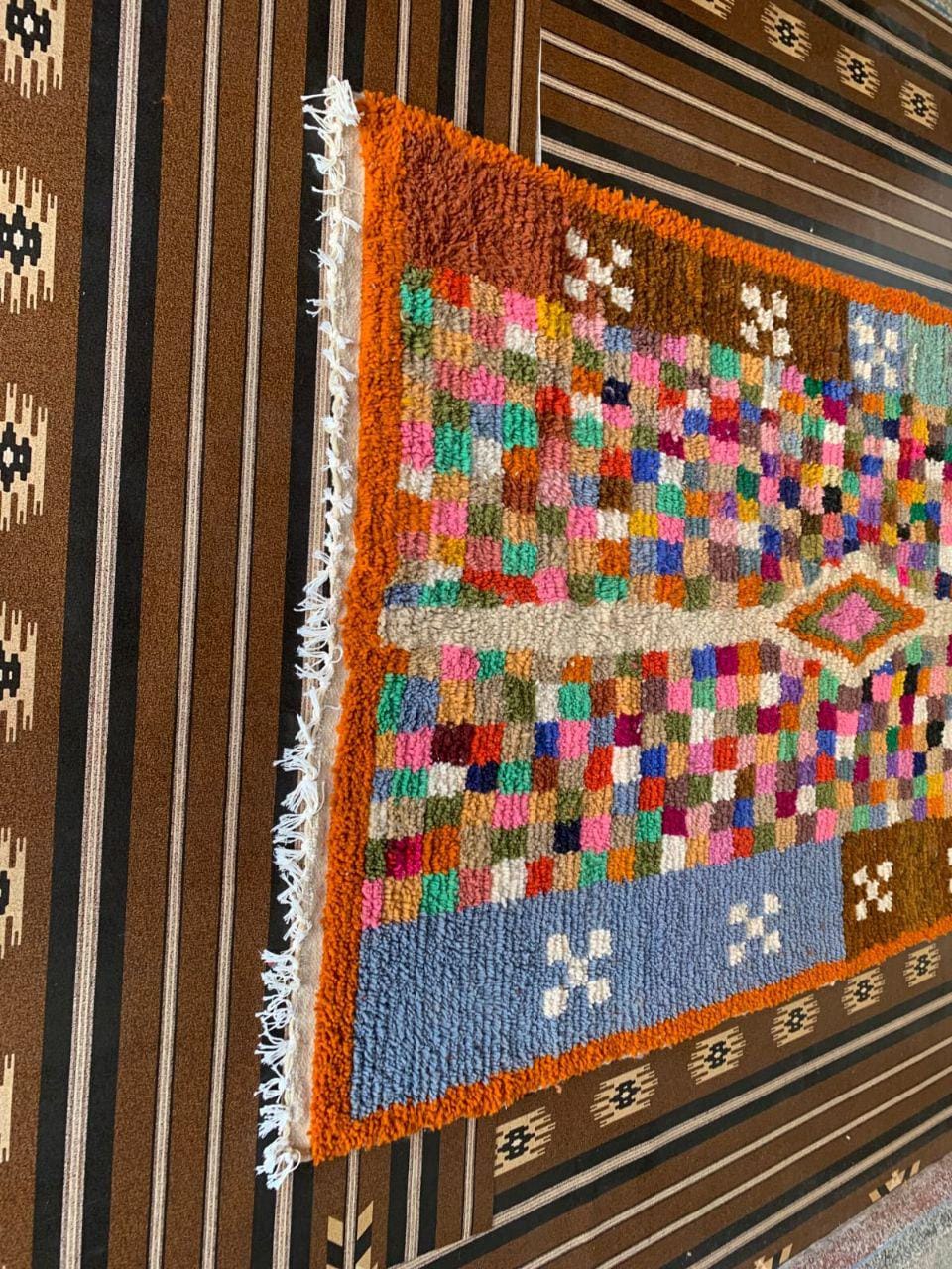 A Moroccan Berber Colorful rug is a traditional handwoven floor covering that originates from the indigenous Berber people of Morocco. These rugs are known for their intricate patterns and bold, geometric designs, which are created using a variety of natural dyes and High-quality Wool. Moroccan boujad rugs are versatile and can be used to add a touch of bohemian chic to any room, from a living room or bedroom to a home office or entryway. They are durable and easy to maintain, making them a practical choice for high-traffic areas. Whether you're looking to add a pop of color to your space or create a warm and welcoming atmosphere, a Moroccan Berber rug is a great choice. 📌 Shipping: insured, trackable, Fast, and FREE Worldwide by FedEx or DHL (2 to 5 days delivery). ❖ Cleaning: all rugs are carefully cleaned before shipping. ❖ Colors: Please take a look at the pictures. ❖ Texture: Moroccan / soft / Shag. ❖ Technique: Hand-Knotted ❖ Construction: Handmade ❖ Location: Indoor Use Only ❖ Material: Your order is made entirely by hand from natural wool, which means there will be natural (and beautiful) variations in pattern and color. Wool shrinks. ❖ Pattern: Because the product is handcrafted, the pattern and Colors may vary slightly from one piece to another. ❖ Size: While we try our best to ensure consistent sizing, it is possible for final sizes to vary by a few inches more or less. ❖ Tassels: One side is the Traditional way of making the rugs. 📌Ships tightly rolled in a protective bag. Any slight creasing will disappear within a few days. Shedding loose fibers is normal with new rugs. Shedding will diminish with regular vacuuming. If you have any questions or queries, please feel free to contact me via messages. checkred rug berber colour full rugs,berber rug moroccan for living room,bedroom rug colourful checkred