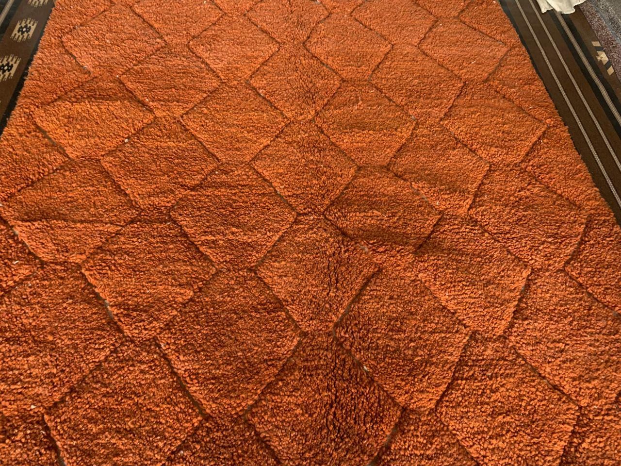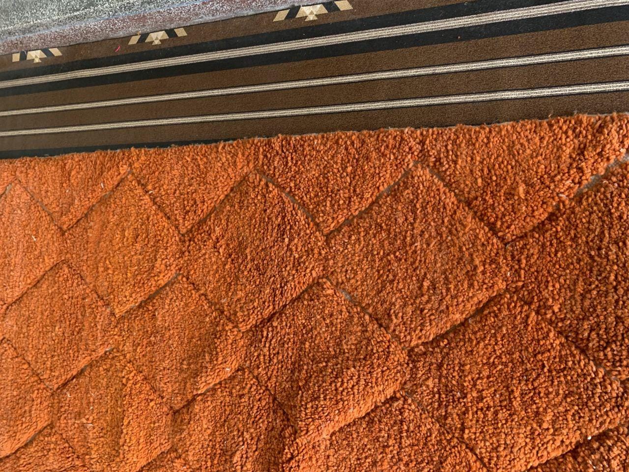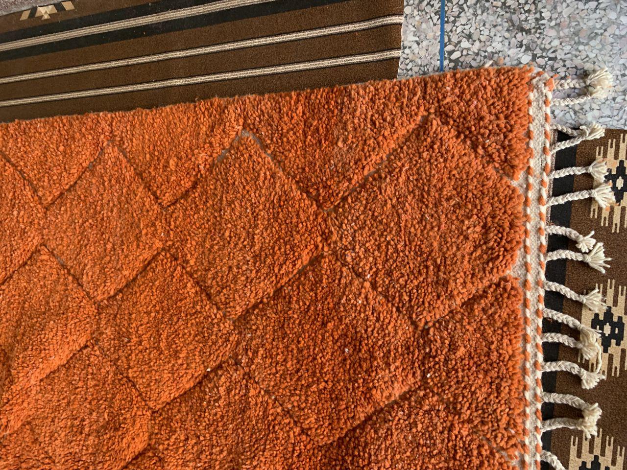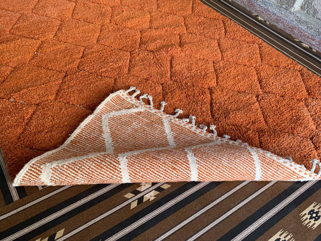 A Moroccan Berber Colorful rug is a traditional handwoven floor covering that originates from the indigenous Berber people of Morocco. These rugs are known for their intricate patterns and bold, geometric designs, which are created using a variety of natural dyes and High-quality Wool. Moroccan boujad rugs are versatile and can be used to add a touch of bohemian chic to any room, from a living room or bedroom to a home office or entryway. They are durable and easy to maintain, making them a practical choice for high-traffic areas. Whether you're looking to add a pop of color to your space or create a warm and welcoming atmosphere, a Moroccan Berber rug is a great choice. 📌 Shipping: insured, trackable, Fast, and FREE Worldwide by FedEx or DHL (2 to 5 days delivery). ❖ Cleaning: all rugs are carefully cleaned before shipping. ❖ Colors: Please take a look at the pictures. ❖ Texture: Moroccan / soft / Shag. ❖ Technique: Hand-Knotted ❖ Construction: Handmade ❖ Location: Indoor Use Only ❖ Material: Your order is made entirely by hand from natural wool, which means there will be natural (and beautiful) variations in pattern and color. Wool shrinks. ❖ Pattern: Because the product is handcrafted, the pattern and Colors may vary slightly from one piece to another. ❖ Size: While we try our best to ensure consistent sizing, it is possible for final sizes to vary by a few inches more or less. ❖ Tassels: One side is the Traditional way of making the rugs. 📌Ships tightly rolled in a protective bag. Any slight creasing will disappear within a few days. Shedding loose fibers is normal with new rugs. Shedding will diminish with regular vacuuming. If you have any questions or queries, please feel free to contact me via messages.Hand-Knotted Moroccan Berber Wool soft orange Rug, berber rug moroccan living room,small beni ourain rug orange