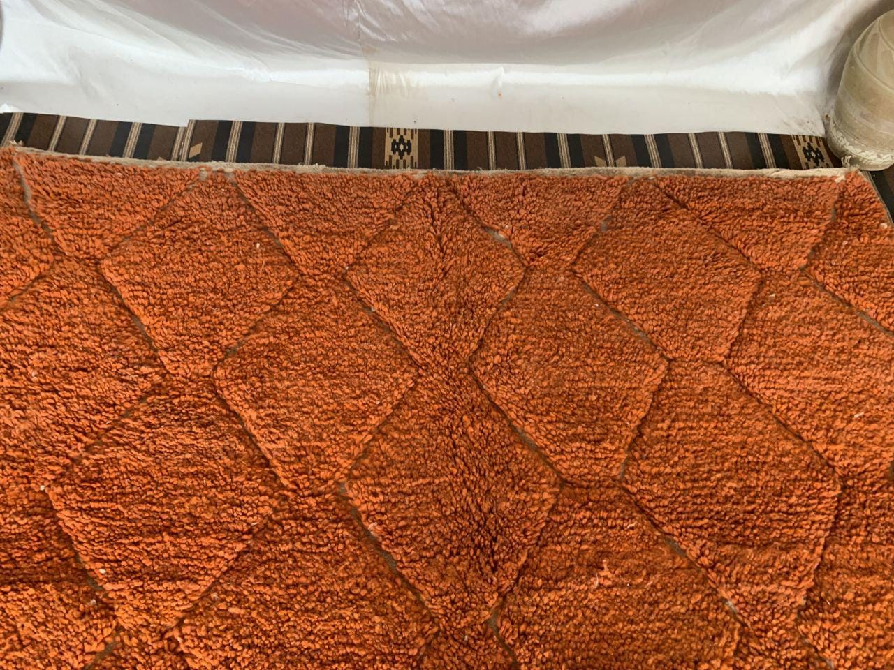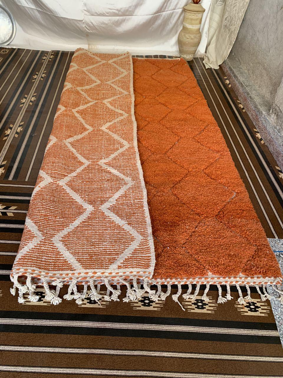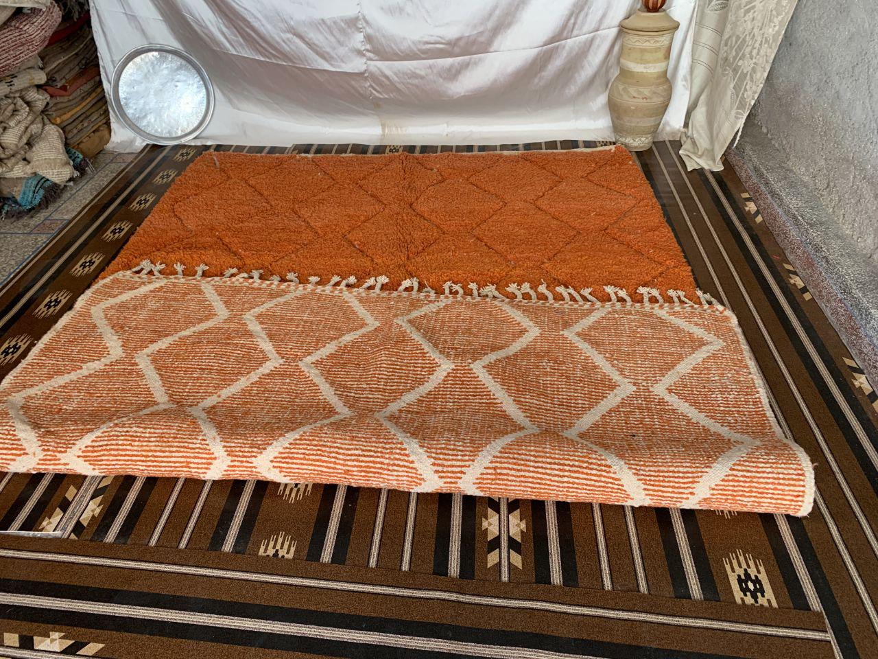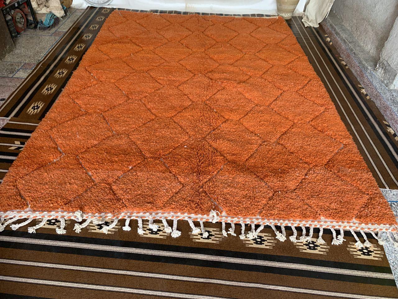 A Moroccan Berber Colorful rug is a traditional handwoven floor covering that originates from the indigenous Berber people of Morocco. These rugs are known for their intricate patterns and bold, geometric designs, which are created using a variety of natural dyes and High-quality Wool. Moroccan boujad rugs are versatile and can be used to add a touch of bohemian chic to any room, from a living room or bedroom to a home office or entryway. They are durable and easy to maintain, making them a practical choice for high-traffic areas. Whether you're looking to add a pop of color to your space or create a warm and welcoming atmosphere, a Moroccan Berber rug is a great choice. 📌 Shipping: insured, trackable, Fast, and FREE Worldwide by FedEx or DHL (2 to 5 days delivery). ❖ Cleaning: all rugs are carefully cleaned before shipping. ❖ Colors: Please take a look at the pictures. ❖ Texture: Moroccan / soft / Shag. ❖ Technique: Hand-Knotted ❖ Construction: Handmade ❖ Location: Indoor Use Only ❖ Material: Your order is made entirely by hand from natural wool, which means there will be natural (and beautiful) variations in pattern and color. Wool shrinks. ❖ Pattern: Because the product is handcrafted, the pattern and Colors may vary slightly from one piece to another. ❖ Size: While we try our best to ensure consistent sizing, it is possible for final sizes to vary by a few inches more or less. ❖ Tassels: One side is the Traditional way of making the rugs. 📌Ships tightly rolled in a protective bag. Any slight creasing will disappear within a few days. Shedding loose fibers is normal with new rugs. Shedding will diminish with regular vacuuming. If you have any questions or queries, please feel free to contact me via messages.Hand-Knotted Moroccan Berber Wool soft orange Rug, berber rug moroccan living room,small beni ourain rug orange