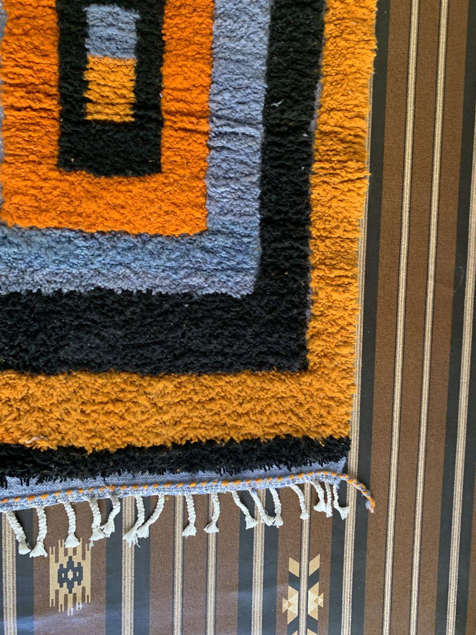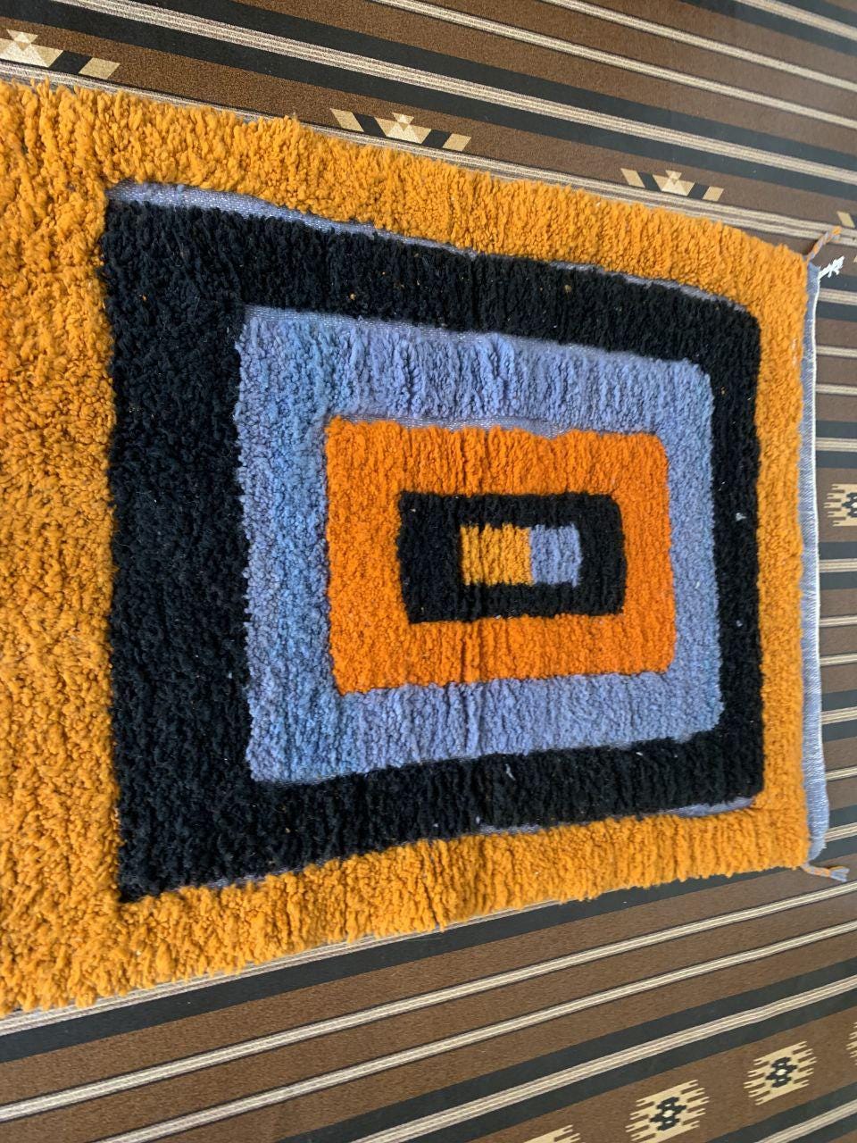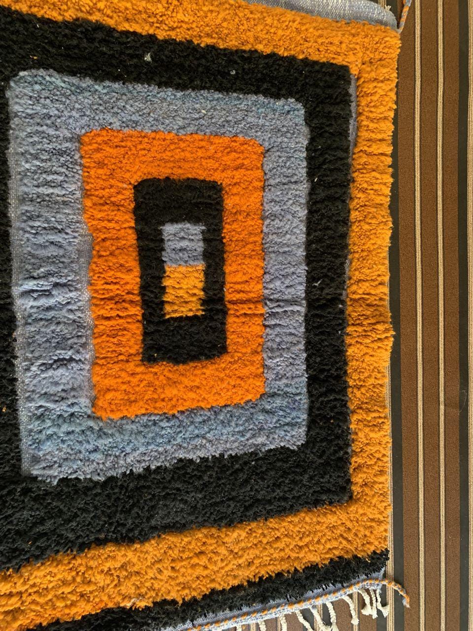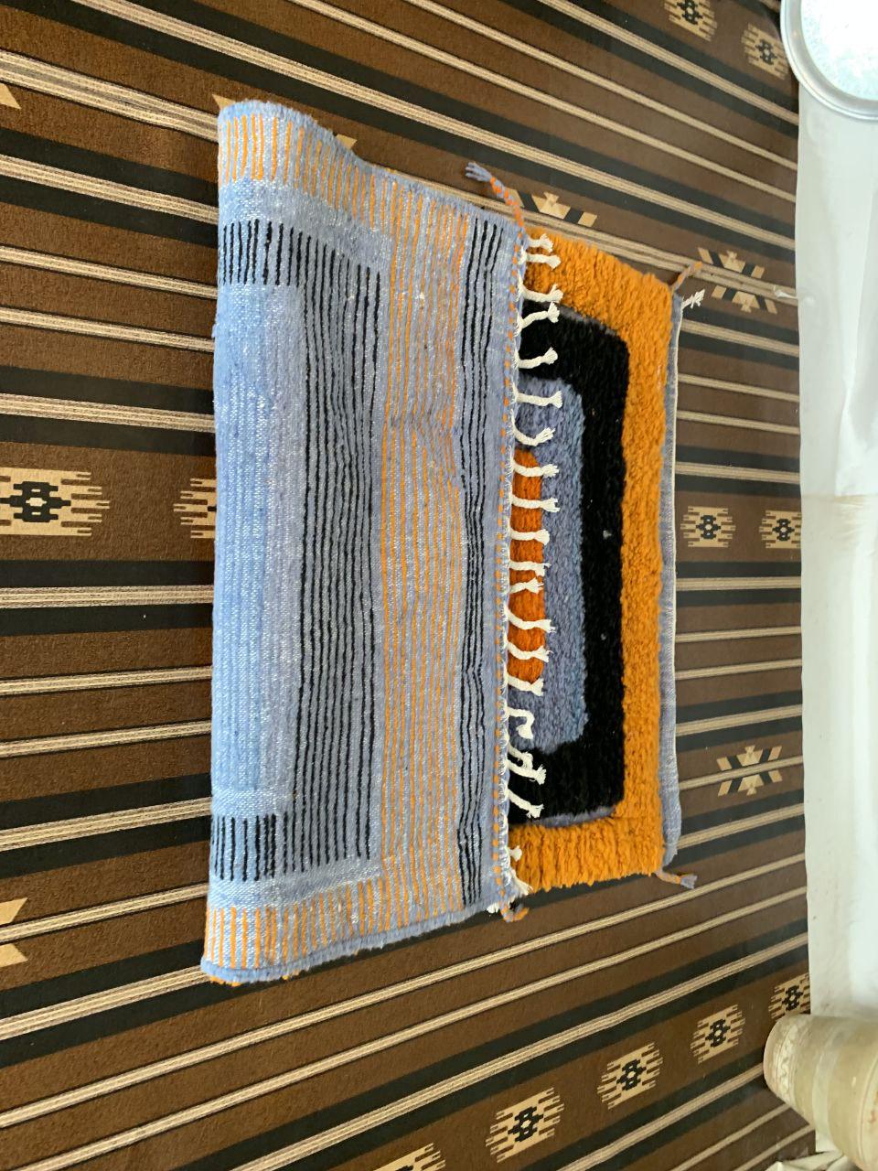 A Moroccan Berber Colorful rug is a traditional handwoven floor covering that originates from the indigenous Berber people of Morocco. These rugs are known for their intricate patterns and bold, geometric designs, which are created using a variety of natural dyes and High-quality Wool. Moroccan boujad rugs are versatile and can be used to add a touch of bohemian chic to any room, from a living room or bedroom to a home office or entryway. They are durable and easy to maintain, making them a practical choice for high-traffic areas. Whether you're looking to add a pop of color to your space or create a warm and welcoming atmosphere, a Moroccan Berber rug is a great choice. 📌 Shipping: insured, trackable, Fast, and FREE Worldwide by FedEx or DHL (2 to 5 days delivery). ❖ Cleaning: all rugs are carefully cleaned before shipping. ❖ Colors: Please take a look at the pictures. ❖ Texture: Moroccan / soft / Shag. ❖ Technique: Hand-Knotted ❖ Construction: Handmade ❖ Location: Indoor Use Only ❖ Material: Your order is made entirely by hand from natural wool, which means there will be natural (and beautiful) variations in pattern and color. Wool shrinks. ❖ Pattern: Because the product is handcrafted, the pattern and Colors may vary slightly from one piece to another. ❖ Size: While we try our best to ensure consistent sizing, it is possible for final sizes to vary by a few inches more or less. ❖ Tassels: One side is the Traditional way of making the rugs. 📌Ships tightly rolled in a protective bag. Any slight creasing will disappear within a few days. Shedding loose fibers is normal with new rugs. Shedding will diminish with regular vacuuming. If you have any questions or queries, please feel free to contact me via messages. moroccan handmade rug orange and black,rug for living room hand moroccan ,colourful boujaad berber rug