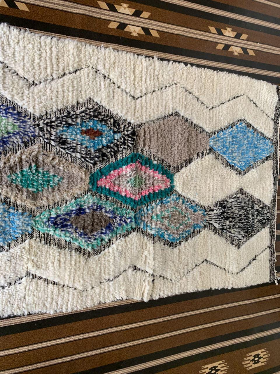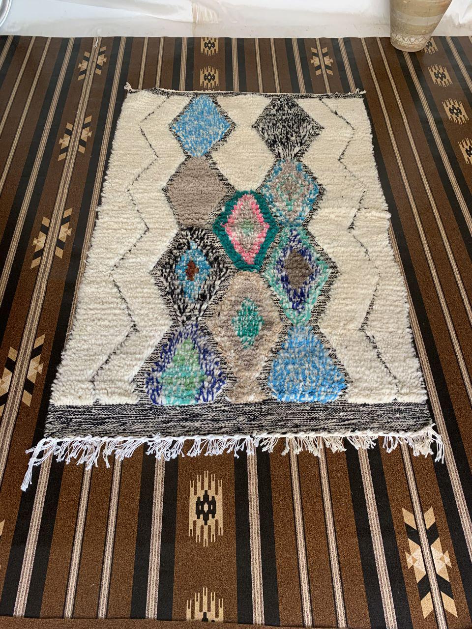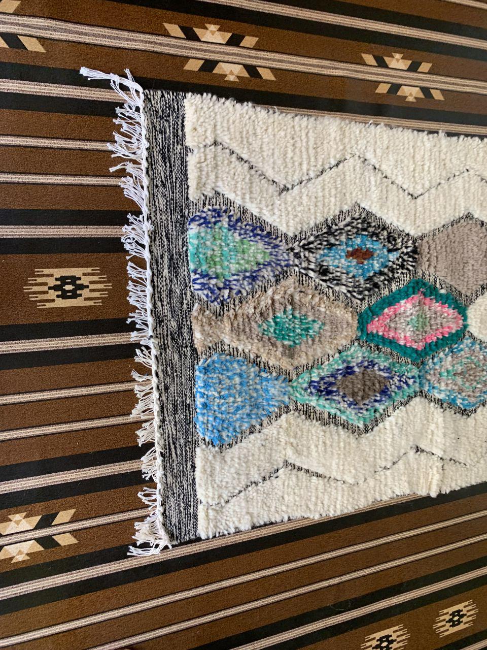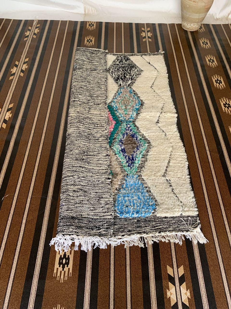 A Moroccan Berber Colorful rug is a traditional handwoven floor covering that originates from the indigenous Berber people of Morocco. These rugs are known for their intricate patterns and bold, geometric designs, which are created using a variety of natural dyes and High-quality Wool. Moroccan boujad rugs are versatile and can be used to add a touch of bohemian chic to any room, from a living room or bedroom to a home office or entryway. They are durable and easy to maintain, making them a practical choice for high-traffic areas. Whether you're looking to add a pop of color to your space or create a warm and welcoming atmosphere, a Moroccan Berber rug is a great choice. 📌 Shipping: insured, trackable, Fast, and FREE Worldwide by FedEx or DHL (2 to 5 days delivery). ❖ Cleaning: all rugs are carefully cleaned before shipping. ❖ Colors: Please take a look at the pictures. ❖ Texture: Moroccan / soft / Shag. ❖ Technique: Hand-Knotted ❖ Construction: Handmade ❖ Location: Indoor Use Only ❖ Material: Your order is made entirely by hand from natural wool, which means there will be natural (and beautiful) variations in pattern and color. Wool shrinks. ❖ Pattern: Because the product is handcrafted, the pattern and Colors may vary slightly from one piece to another. ❖ Size: While we try our best to ensure consistent sizing, it is possible for final sizes to vary by a few inches more or less. ❖ Tassels: One side is the Traditional way of making the rugs. 📌Ships tightly rolled in a protective bag. Any slight creasing will disappear within a few days. Shedding loose fibers is normal with new rugs. Shedding will diminish with regular vacuuming. If you have any questions or queries, please feel free to contact me via messages. Handmade Blue and White Rug,WONDERFUL Beni Ourain Rug boujaad,custom made rugs plain wool