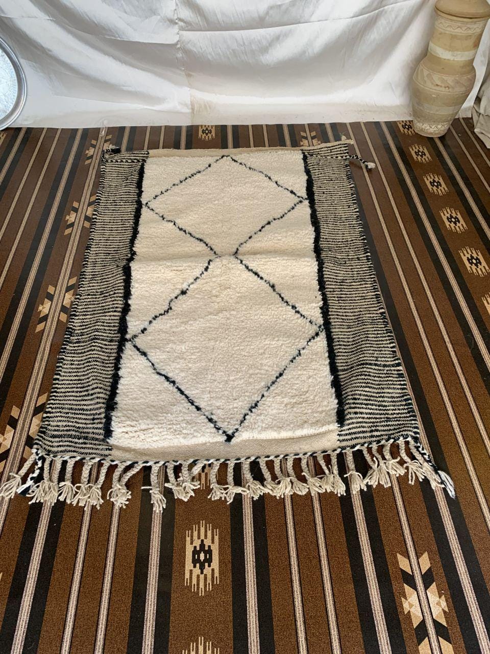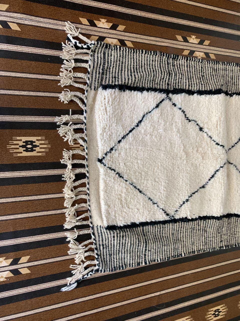 A Moroccan Berber Colorful rug is a traditional handwoven floor covering that originates from the indigenous Berber people of Morocco. These rugs are known for their intricate patterns and bold, geometric designs, which are created using a variety of natural dyes and High-quality Wool. Moroccan boujad rugs are versatile and can be used to add a touch of bohemian chic to any room, from a living room or bedroom to a home office or entryway. They are durable and easy to maintain, making them a practical choice for high-traffic areas. Whether you're looking to add a pop of color to your space or create a warm and welcoming atmosphere, a Moroccan Berber rug is a great choice. 📌 Shipping: insured, trackable, Fast, and FREE Worldwide by FedEx or DHL (2 to 5 days delivery). ❖ Cleaning: all rugs are carefully cleaned before shipping. ❖ Colors: Please take a look at the pictures. ❖ Texture: Moroccan / soft / Shag. ❖ Technique: Hand-Knotted ❖ Construction: Handmade ❖ Location: Indoor Use Only ❖ Material: Your order is made entirely by hand from natural wool, which means there will be natural (and beautiful) variations in pattern and color. Wool shrinks. ❖ Pattern: Because the product is handcrafted, the pattern and Colors may vary slightly from one piece to another. ❖ Size: While we try our best to ensure consistent sizing, it is possible for final sizes to vary by a few inches more or less. ❖ Tassels: One side is the Traditional way of making the rugs. 📌Ships tightly rolled in a protective bag. Any slight creasing will disappear within a few days. Shedding loose fibers is normal with new rugs. Shedding will diminish with regular vacuuming. If you have any questions or queries, please feel free to contact me via messages. Handmade Bohemian Sheep Wool Carpet,genuine lamb wool back rug,Custom Gorgeous Rug black