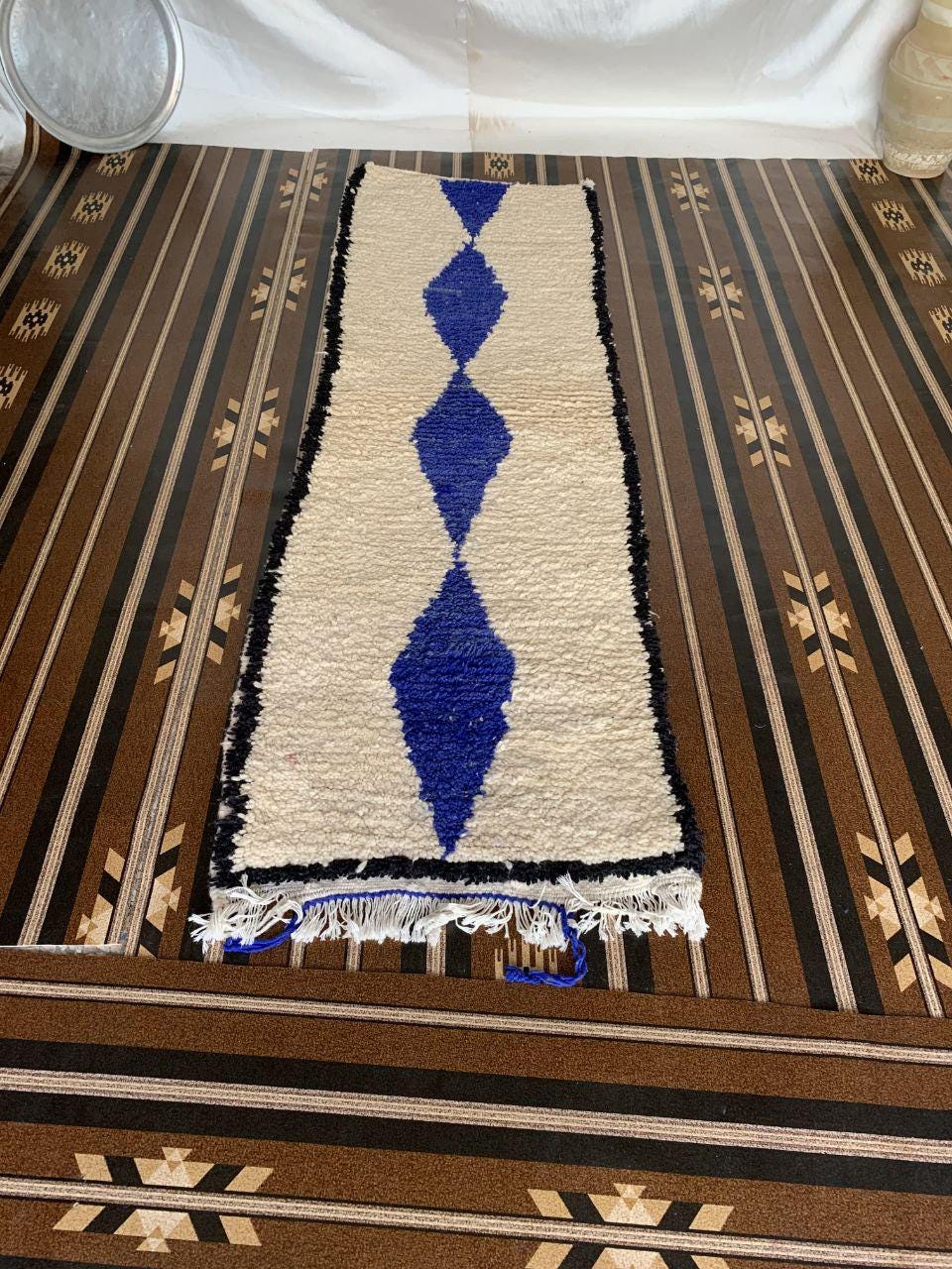 A Moroccan Berber Colorful rug is a traditional handwoven floor covering that originates from the indigenous Berber people of Morocco. These rugs are known for their intricate patterns and bold, geometric designs, which are created using a variety of natural dyes and High-quality Wool. Moroccan boujad rugs are versatile and can be used to add a touch of bohemian chic to any room, from a living room or bedroom to a home office or entryway. They are durable and easy to maintain, making them a practical choice for high-traffic areas. Whether you're looking to add a pop of color to your space or create a warm and welcoming atmosphere, a Moroccan Berber rug is a great choice. 📌 Shipping: insured, trackable, Fast, and FREE Worldwide by FedEx or DHL (2 to 5 days delivery). ❖ Cleaning: all rugs are carefully cleaned before shipping. ❖ Colors: Please take a look at the pictures. ❖ Texture: Moroccan / soft / Shag. ❖ Technique: Hand-Knotted ❖ Construction: Handmade ❖ Location: Indoor Use Only ❖ Material: Your order is made entirely by hand from natural wool, which means there will be natural (and beautiful) variations in pattern and color. Wool shrinks. ❖ Pattern: Because the product is handcrafted, the pattern and Colors may vary slightly from one piece to another. ❖ Size: While we try our best to ensure consistent sizing, it is possible for final sizes to vary by a few inches more or less. ❖ Tassels: One side is the Traditional way of making the rugs. 📌Ships tightly rolled in a protective bag. Any slight creasing will disappear within a few days. Shedding loose fibers is normal with new rugs. Shedding will diminish with regular vacuuming. If you have any questions or queries, please feel free to contact me via messages. Handmade runner roter Teppich rug,hall runner rug for stairs moroccan ,hall runner,rug for stairs hande boujaad runner