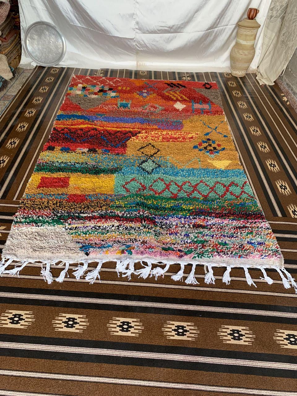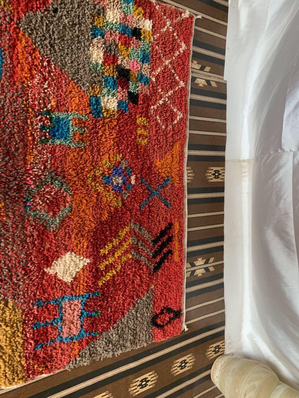 A Moroccan Berber Colorful rug is a traditional handwoven floor covering that originates from the indigenous Berber people of Morocco. These rugs are known for their intricate patterns and bold, geometric designs, which are created using a variety of natural dyes and High-quality Wool. Moroccan boujad rugs are versatile and can be used to add a touch of bohemian chic to any room, from a living room or bedroom to a home office or entryway. They are durable and easy to maintain, making them a practical choice for high-traffic areas. Whether you're looking to add a pop of color to your space or create a warm and welcoming atmosphere, a Moroccan Berber rug is a great choice. 📌 Shipping: insured, trackable, Fast, and FREE Worldwide by FedEx or DHL (2 to 5 days delivery). ❖ Cleaning: all rugs are carefully cleaned before shipping. ❖ Colors: Please take a look at the pictures. ❖ Texture: Moroccan / soft / Shag. ❖ Technique: Hand-Knotted ❖ Construction: Handmade ❖ Location: Indoor Use Only ❖ Material: Your order is made entirely by hand from natural wool, which means there will be natural (and beautiful) variations in pattern and color. Wool shrinks. ❖ Pattern: Because the product is handcrafted, the pattern and Colors may vary slightly from one piece to another. ❖ Size: While we try our best to ensure consistent sizing, it is possible for final sizes to vary by a few inches more or less. ❖ Tassels: One side is the Traditional way of making the rugs. 📌Ships tightly rolled in a protective bag. Any slight creasing will disappear within a few days. Shedding loose fibers is normal with new rugs. Shedding will diminish with regular vacuuming. If you have any questions or queries, please feel free to contact me via messages. Amizing Moroccan Boujaad Rug: Colorful Wool Hallway Decor Moroccan rug 10x14;8x10 orange rug orange moroccan 5x7