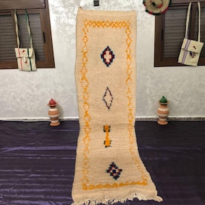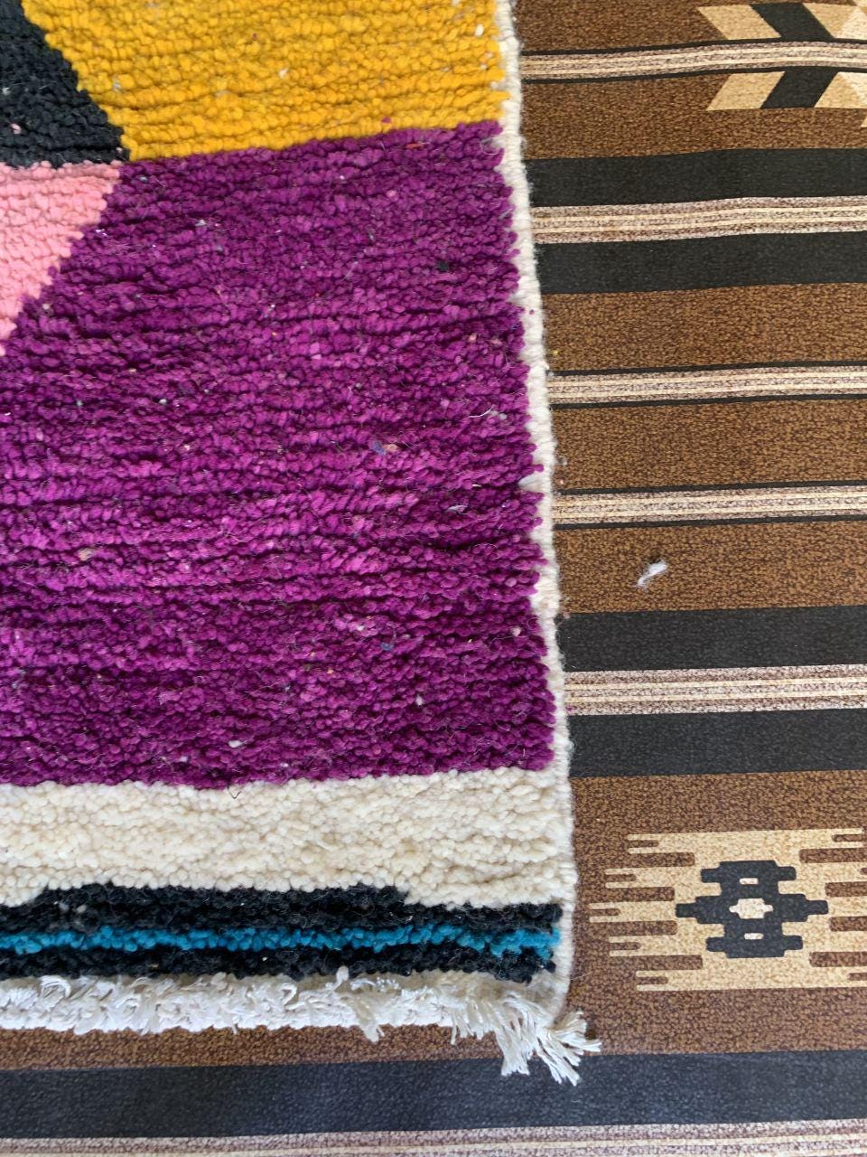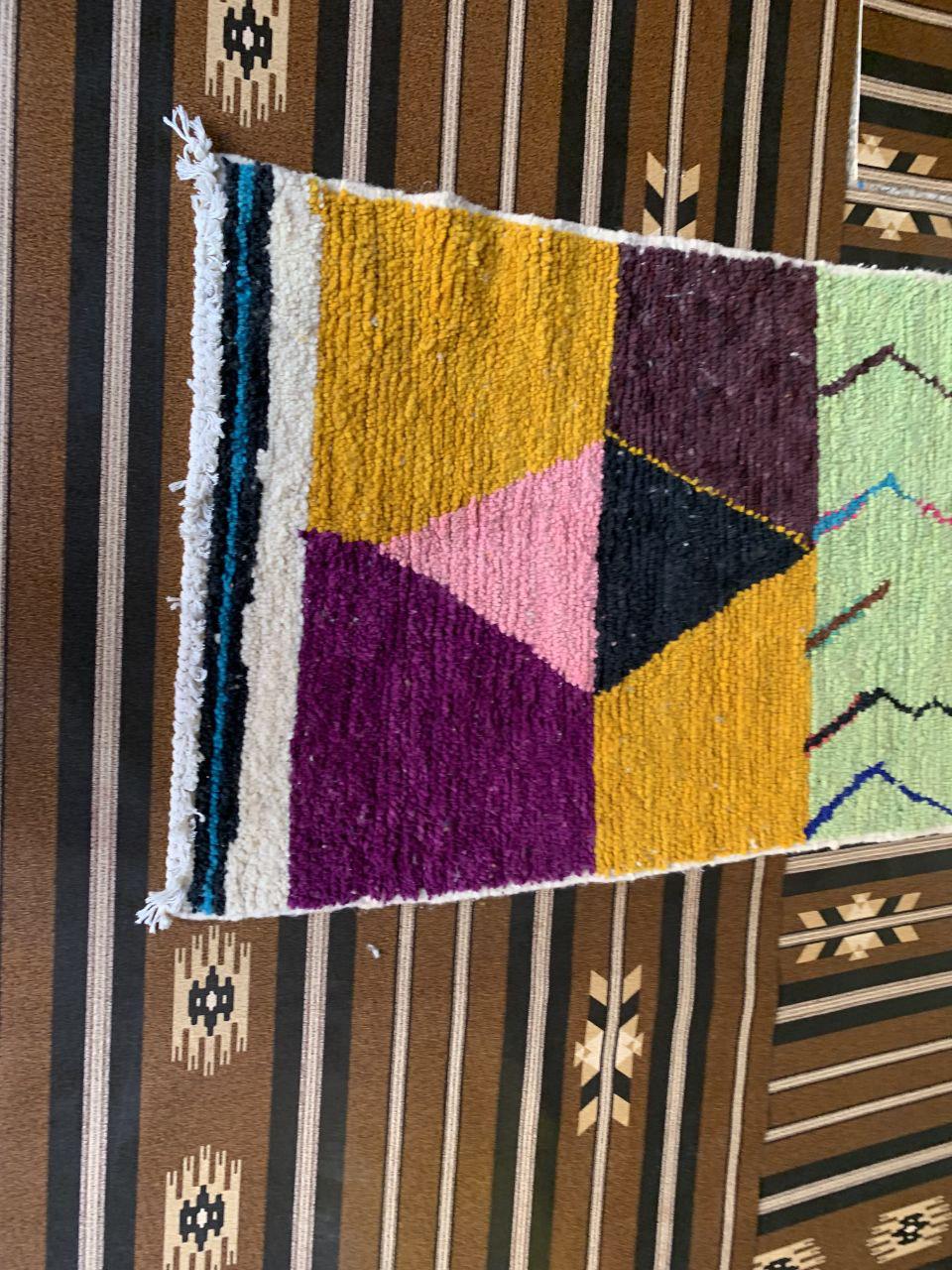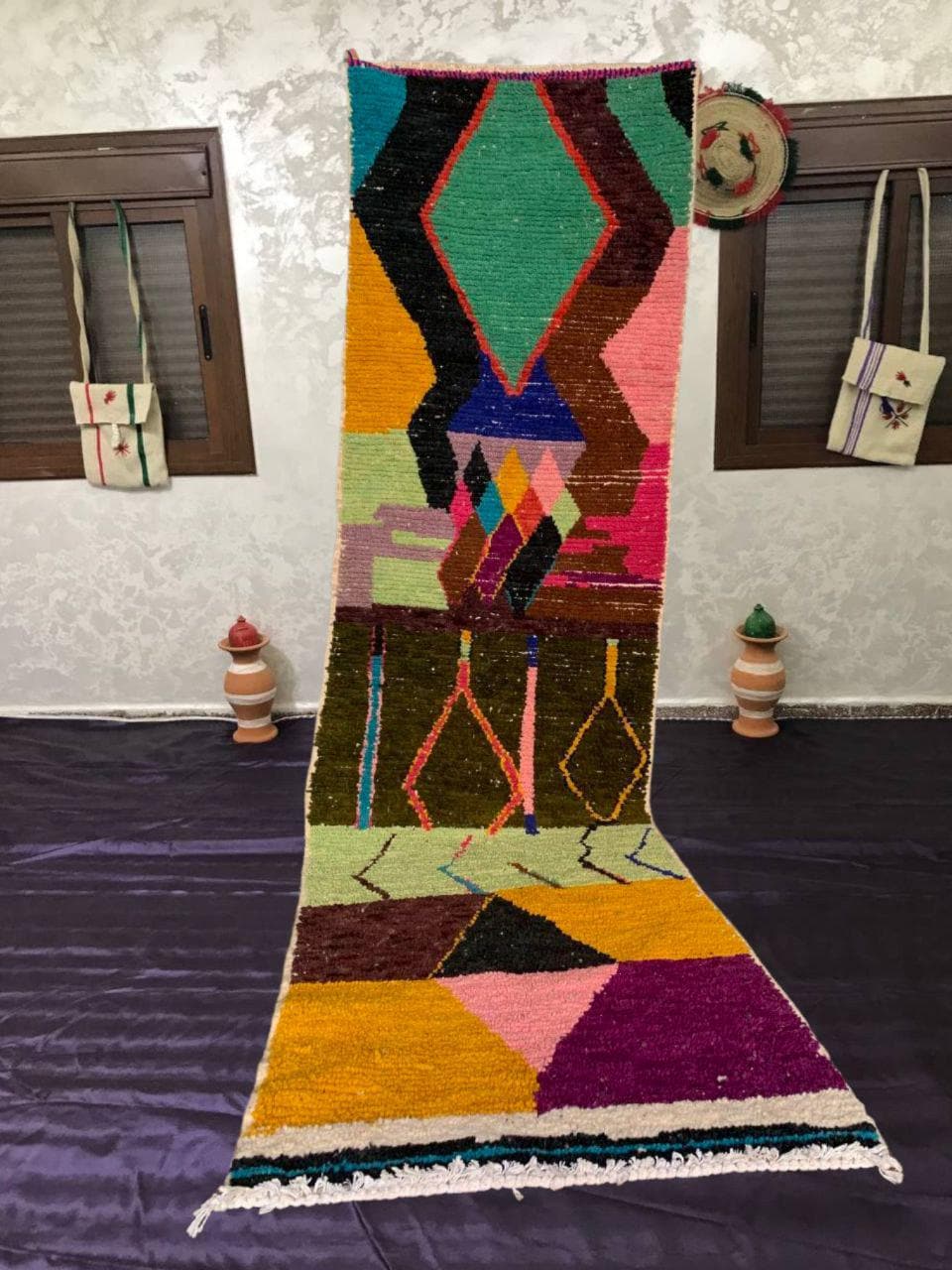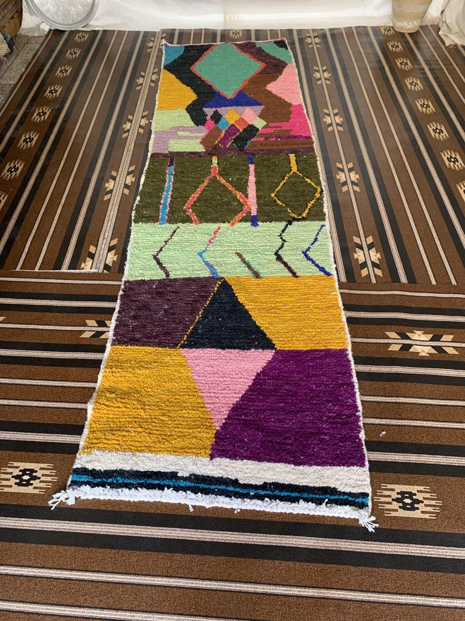 A Moroccan Berber Colorful rug is a traditional handwoven floor covering that originates from the indigenous Berber people of Morocco. These rugs are known for their intricate patterns and bold, geometric designs, which are created using a variety of natural dyes and High-quality Wool. Moroccan boujad rugs are versatile and can be used to add a touch of bohemian chic to any room, from a living room or bedroom to a home office or entryway. They are durable and easy to maintain, making them a practical choice for high-traffic areas. Whether you're looking to add a pop of color to your space or create a warm and welcoming atmosphere, a Moroccan Berber rug is a great choice. 📌 Shipping: insured, trackable, Fast, and FREE Worldwide by FedEx or DHL (2 to 5 days delivery). ❖ Cleaning: all rugs are carefully cleaned before shipping. ❖ Colors: Please take a look at the pictures. ❖ Texture: Moroccan / soft / Shag. ❖ Technique: Hand-Knotted ❖ Construction: Handmade ❖ Location: Indoor Use Only ❖ Material: Your order is made entirely by hand from natural wool, which means there will be natural (and beautiful) variations in pattern and color. Wool shrinks. ❖ Pattern: Because the product is handcrafted, the pattern and Colors may vary slightly from one piece to another. ❖ Size: While we try our best to ensure consistent sizing, it is possible for final sizes to vary by a few inches more or less. ❖ Tassels: One side is the Traditional way of making the rugs. 📌Ships tightly rolled in a protective bag. Any slight creasing will disappear within a few days. Shedding loose fibers is normal with new rugs. Shedding will diminish with regular vacuuming. If you have any questions or queries, please feel free to contact me via messages. moroccan rug handmade berber colourful runner wool,berber rug runner for living room,runner boujaad rug moroccan green