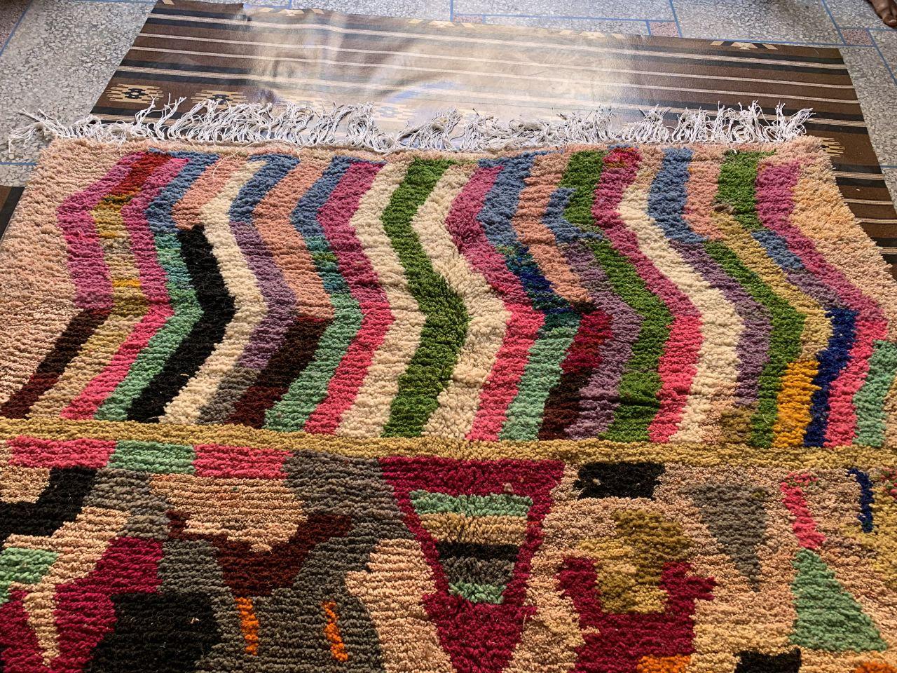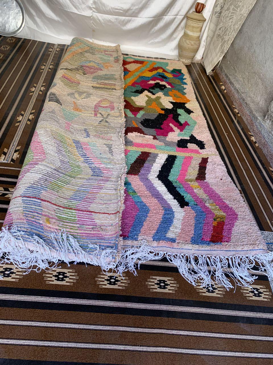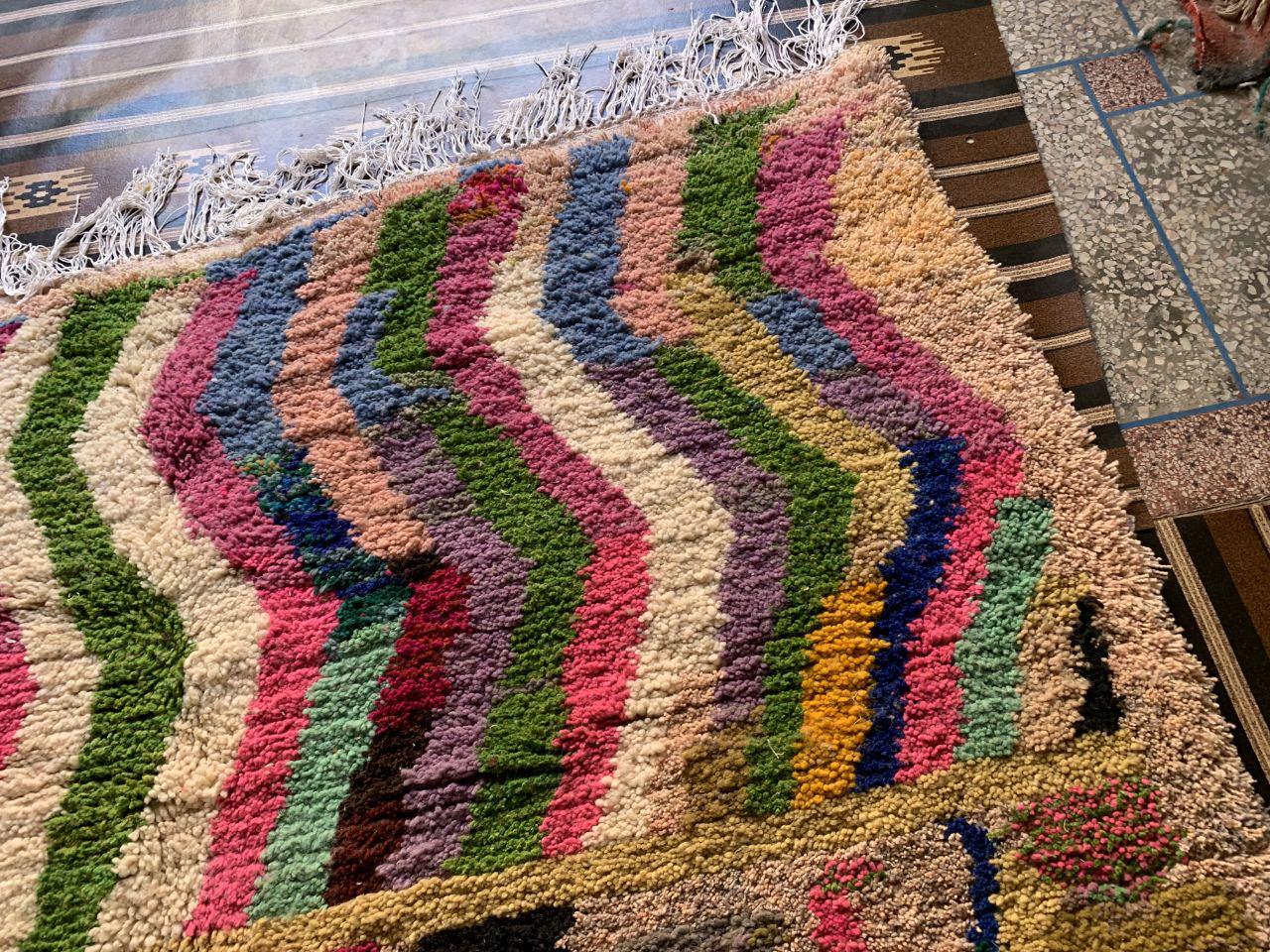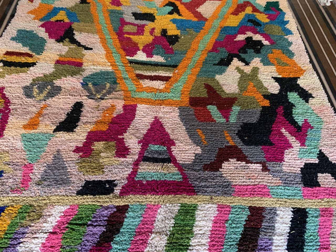 A Moroccan Berber Colorful rug is a traditional handwoven floor covering that originates from the indigenous Berber people of Morocco. These rugs are known for their intricate patterns and bold, geometric designs, which are created using a variety of natural dyes and High-quality Wool. Moroccan boujad rugs are versatile and can be used to add a touch of bohemian chic to any room, from a living room or bedroom to a home office or entryway. They are durable and easy to maintain, making them a practical choice for high-traffic areas. Whether you're looking to add a pop of color to your space or create a warm and welcoming atmosphere, a Moroccan Berber rug is a great choice. 📌 Shipping: insured, trackable, Fast, and FREE Worldwide by FedEx or DHL (2 to 5 days delivery). ❖ Cleaning: all rugs are carefully cleaned before shipping. ❖ Colors: Please take a look at the pictures. ❖ Texture: Moroccan / soft / Shag. ❖ Technique: Hand-Knotted ❖ Construction: Handmade ❖ Location: Indoor Use Only ❖ Material: Your order is made entirely by hand from natural wool, which means there will be natural (and beautiful) variations in pattern and color. Wool shrinks. ❖ Pattern: Because the product is handcrafted, the pattern and Colors may vary slightly from one piece to another. ❖ Size: While we try our best to ensure consistent sizing, it is possible for final sizes to vary by a few inches more or less. ❖ Tassels: One side is the Traditional way of making the rugs. 📌Ships tightly rolled in a protective bag. Any slight creasing will disappear within a few days. Shedding loose fibers is normal with new rugs. Shedding will diminish with regular vacuuming. If you have any questions or queries, please feel free to contact me via messages. Handmade Moroccan Wool Boujad Rug: Colorful Hallway Decor,boho decor rug,hand made rug boho,rug boho moroccan rug