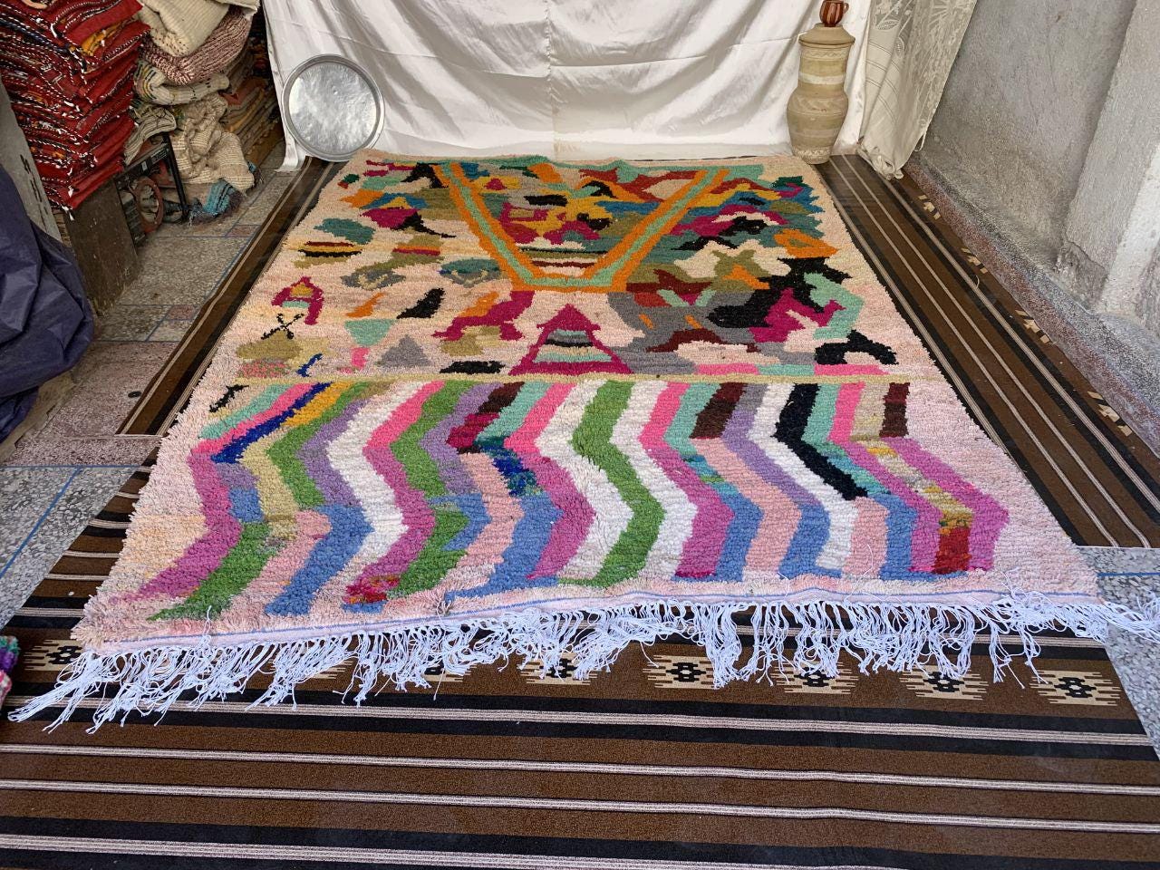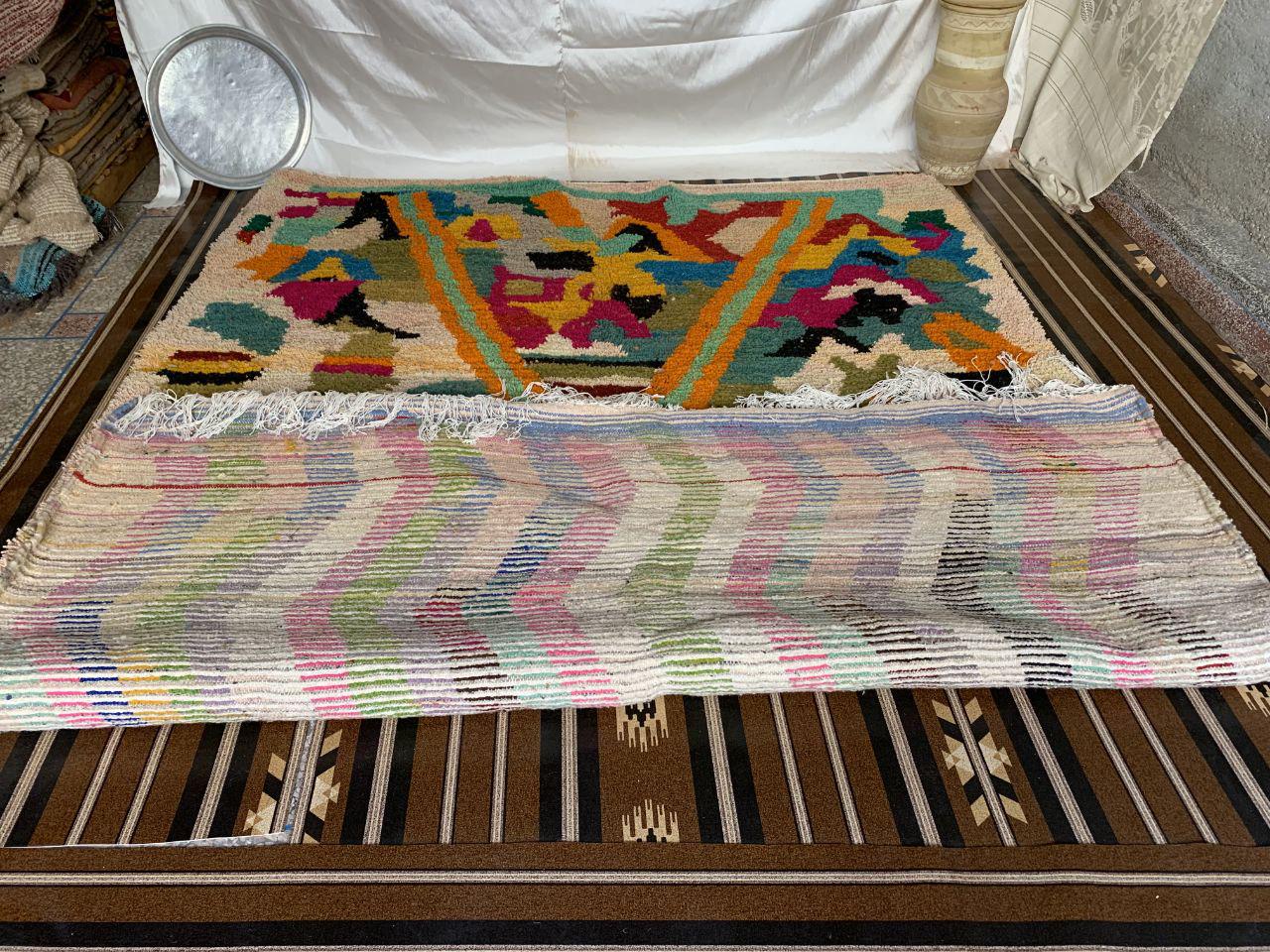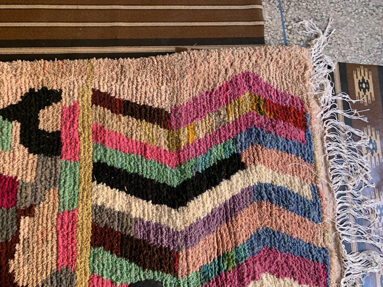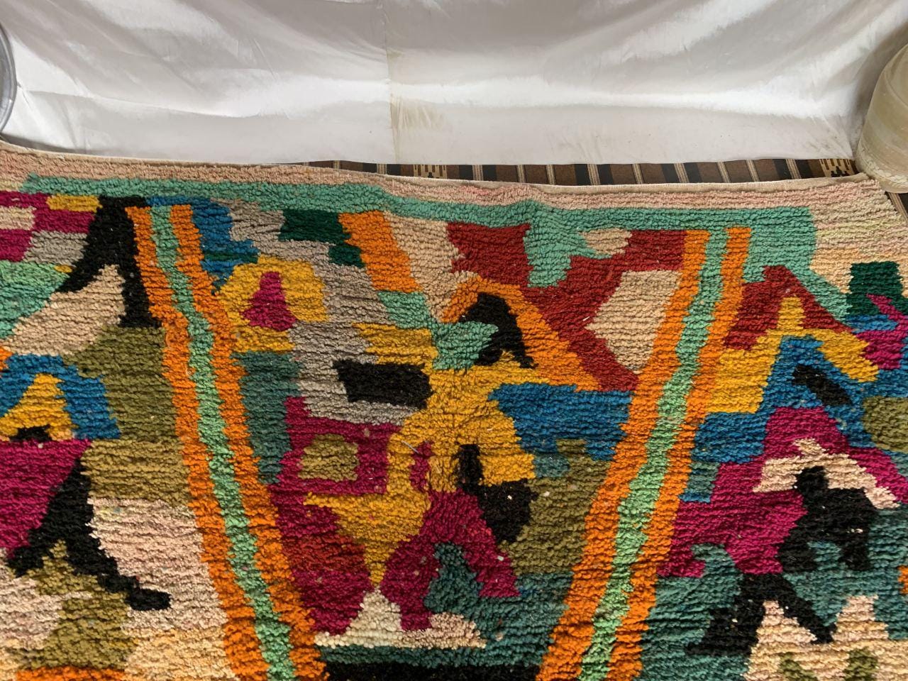 A Moroccan Berber Colorful rug is a traditional handwoven floor covering that originates from the indigenous Berber people of Morocco. These rugs are known for their intricate patterns and bold, geometric designs, which are created using a variety of natural dyes and High-quality Wool. Moroccan boujad rugs are versatile and can be used to add a touch of bohemian chic to any room, from a living room or bedroom to a home office or entryway. They are durable and easy to maintain, making them a practical choice for high-traffic areas. Whether you're looking to add a pop of color to your space or create a warm and welcoming atmosphere, a Moroccan Berber rug is a great choice. 📌 Shipping: insured, trackable, Fast, and FREE Worldwide by FedEx or DHL (2 to 5 days delivery). ❖ Cleaning: all rugs are carefully cleaned before shipping. ❖ Colors: Please take a look at the pictures. ❖ Texture: Moroccan / soft / Shag. ❖ Technique: Hand-Knotted ❖ Construction: Handmade ❖ Location: Indoor Use Only ❖ Material: Your order is made entirely by hand from natural wool, which means there will be natural (and beautiful) variations in pattern and color. Wool shrinks. ❖ Pattern: Because the product is handcrafted, the pattern and Colors may vary slightly from one piece to another. ❖ Size: While we try our best to ensure consistent sizing, it is possible for final sizes to vary by a few inches more or less. ❖ Tassels: One side is the Traditional way of making the rugs. 📌Ships tightly rolled in a protective bag. Any slight creasing will disappear within a few days. Shedding loose fibers is normal with new rugs. Shedding will diminish with regular vacuuming. If you have any questions or queries, please feel free to contact me via messages. Handmade Moroccan Wool Boujad Rug: Colorful Hallway Decor,boho decor rug,hand made rug boho,rug boho moroccan rug