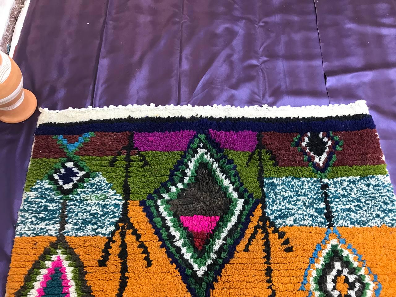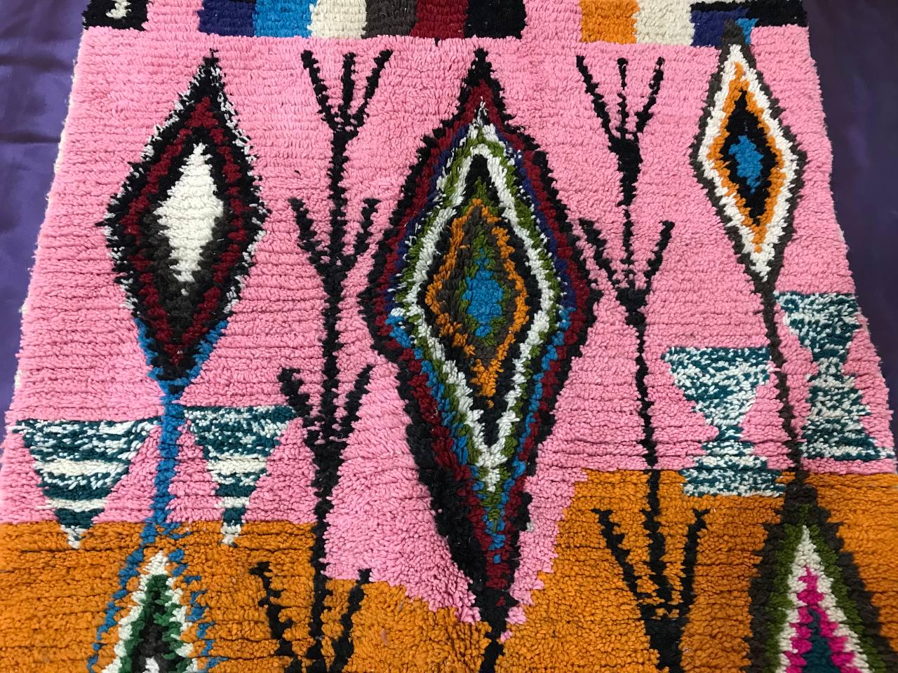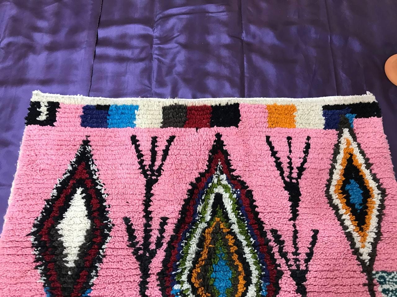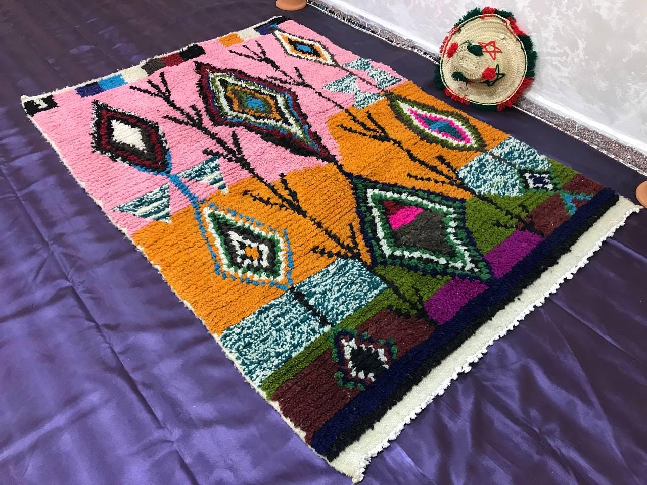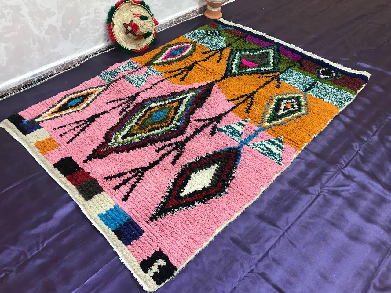 A Moroccan Berber Colorful rug is a traditional handwoven floor covering that originates from the indigenous Berber people of Morocco. These rugs are known for their intricate patterns and bold, geometric designs, which are created using a variety of natural dyes and High-quality Wool. Moroccan boujad rugs are versatile and can be used to add a touch of bohemian chic to any room, from a living room or bedroom to a home office or entryway. They are durable and easy to maintain, making them a practical choice for high-traffic areas. Whether you're looking to add a pop of color to your space or create a warm and welcoming atmosphere, a Moroccan Berber rug is a great choice.